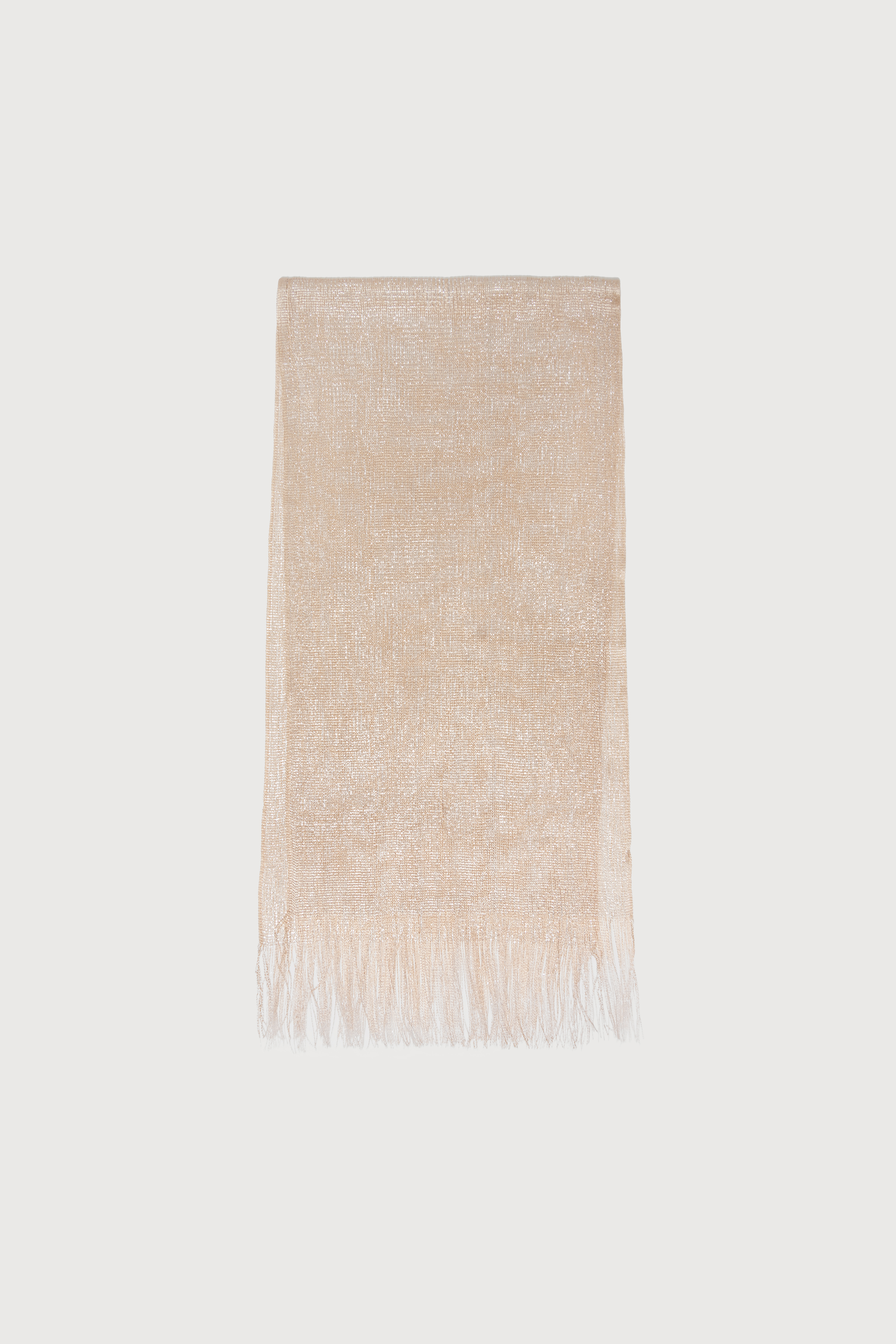 Chalina tejida con hilado metalizado, el complemento perfecto para elevar tus looks de noche con un brillo sutil y sofisticado. Ligera y versátil, ideal para sumar estilo en cualquier ocasión especial. Medidas: 45 x 190 cm