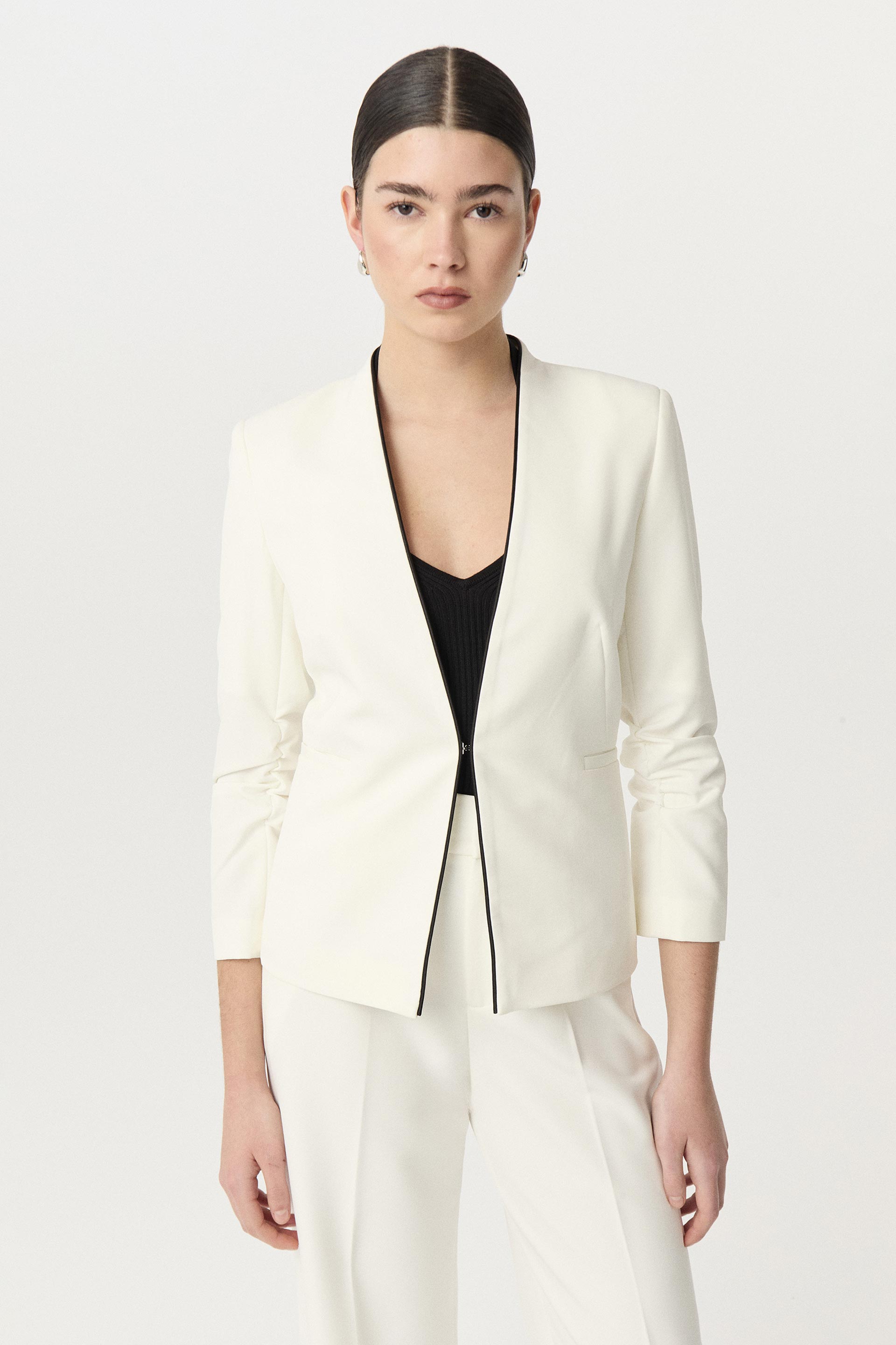 Pantalón de sastrería elastizada, de tiro alto y pierna ancha. Posee bolsillos diagonales con detalle de vivos a contratono. Su diseño, calce y color aportan elegancia y modernidad. Combinalo con el blazer Tigris y armá un total look sobrio y sofisticado ideal para la oficina.