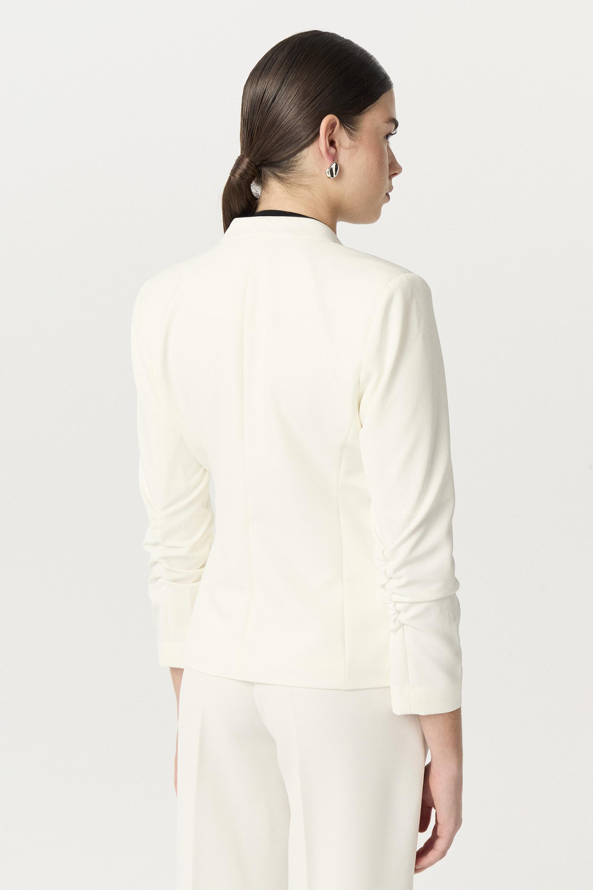Blazer corto de sastrería elastizada, silueta entallada y mangas 3/4. Su interior está forrado en satén elastizado generando extra confort. Posee vivo a contratono en el delantero. Su largo modular y su calce hacen de esta prenda un ítem sofisticado y elegante. Combinalo con el pantalón Tigris y armá un total look ideal para la oficina o eventos.