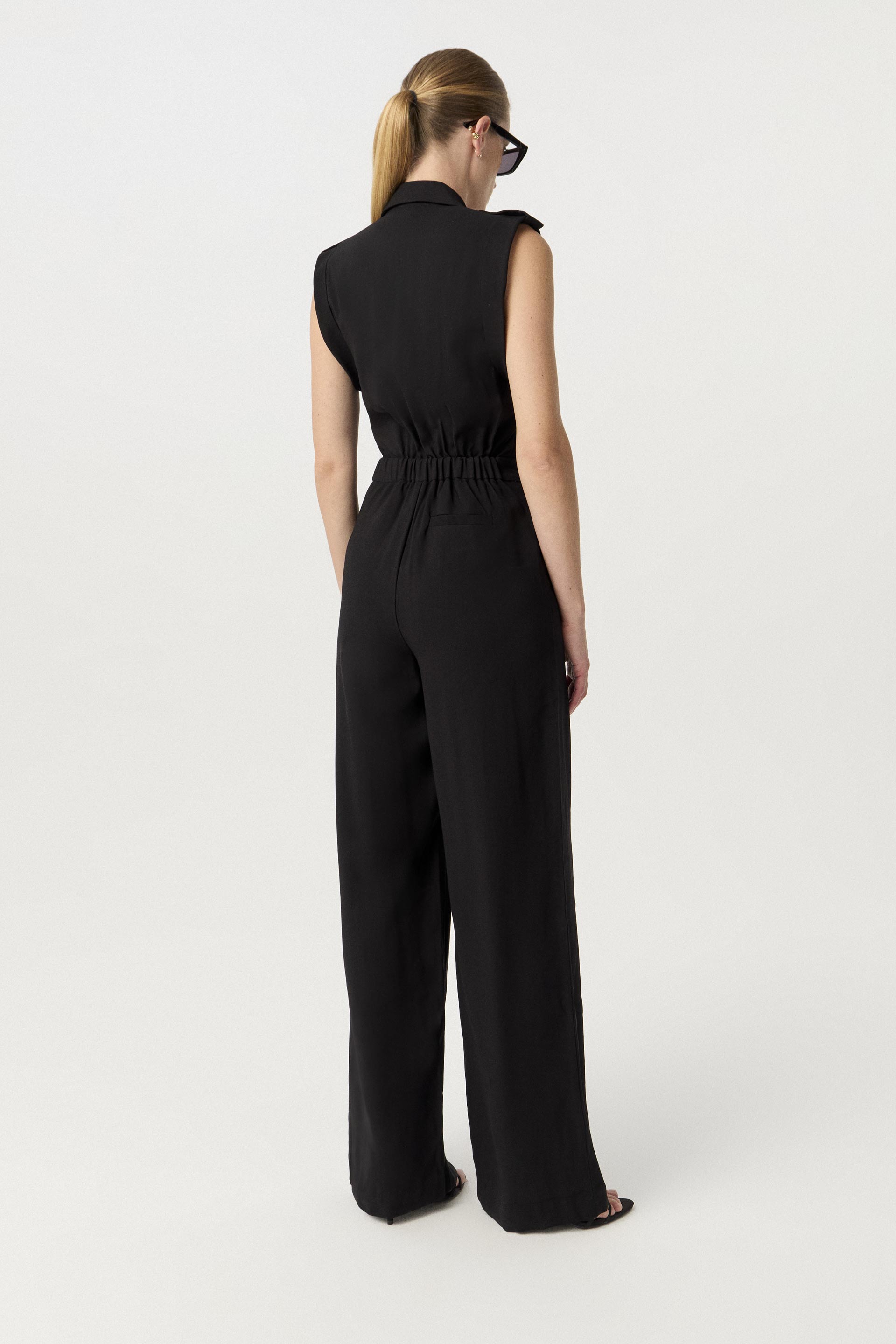Mono de twill wash, de silueta relajada y pierna ancha. Posee cuello con solapa, acceso y charreteras con broches metálicos y elástico en la cintura trasera. Su género y diseño lo convierten en un ítem de tendencia, ideal para componer un look moderno tanto para la oficina como para una salida.