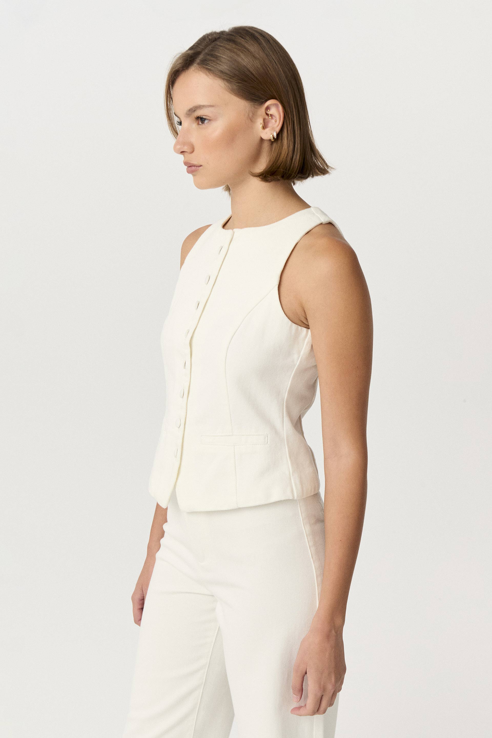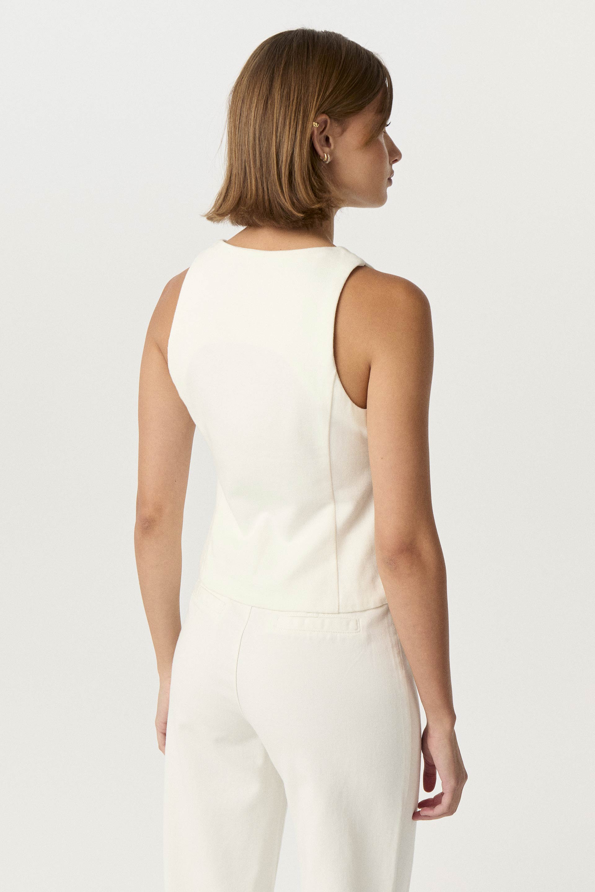Chaleco de jean confeccionado con tejido 100% algodón, con escote a la base y tipo de confección sastrera. Posee recortes de entalle, bolsillos ojal y acceso delantero con botones forrados en la misma tela. Combinalo con el jean Gutz y armá un total look urbano y relajado.