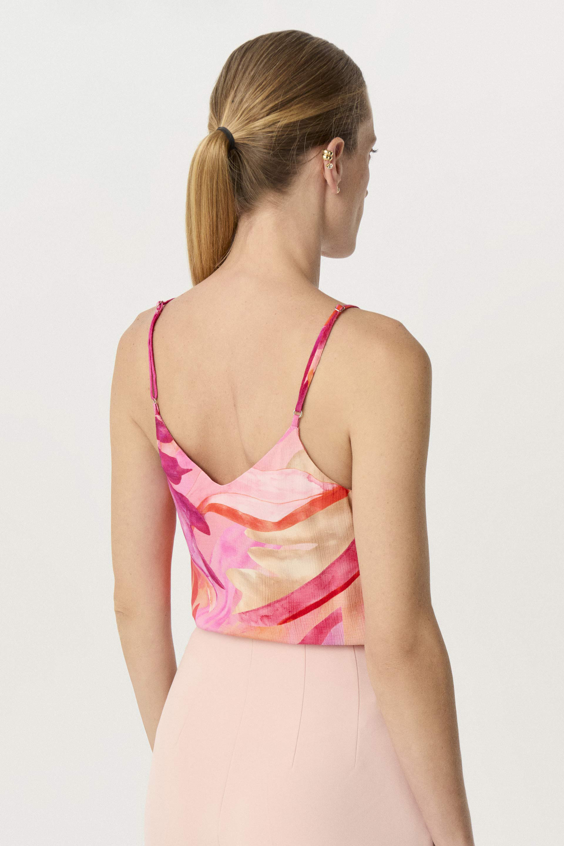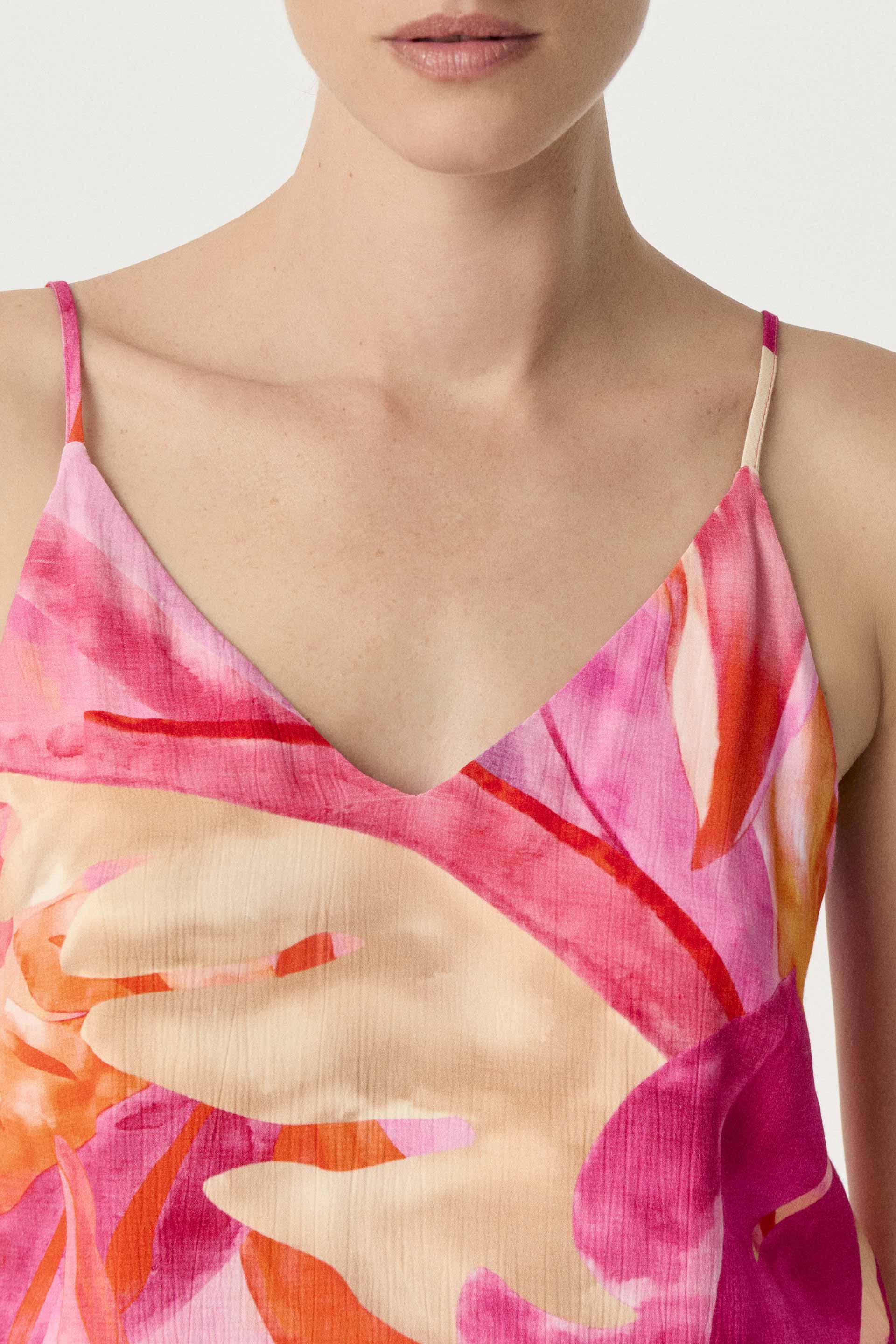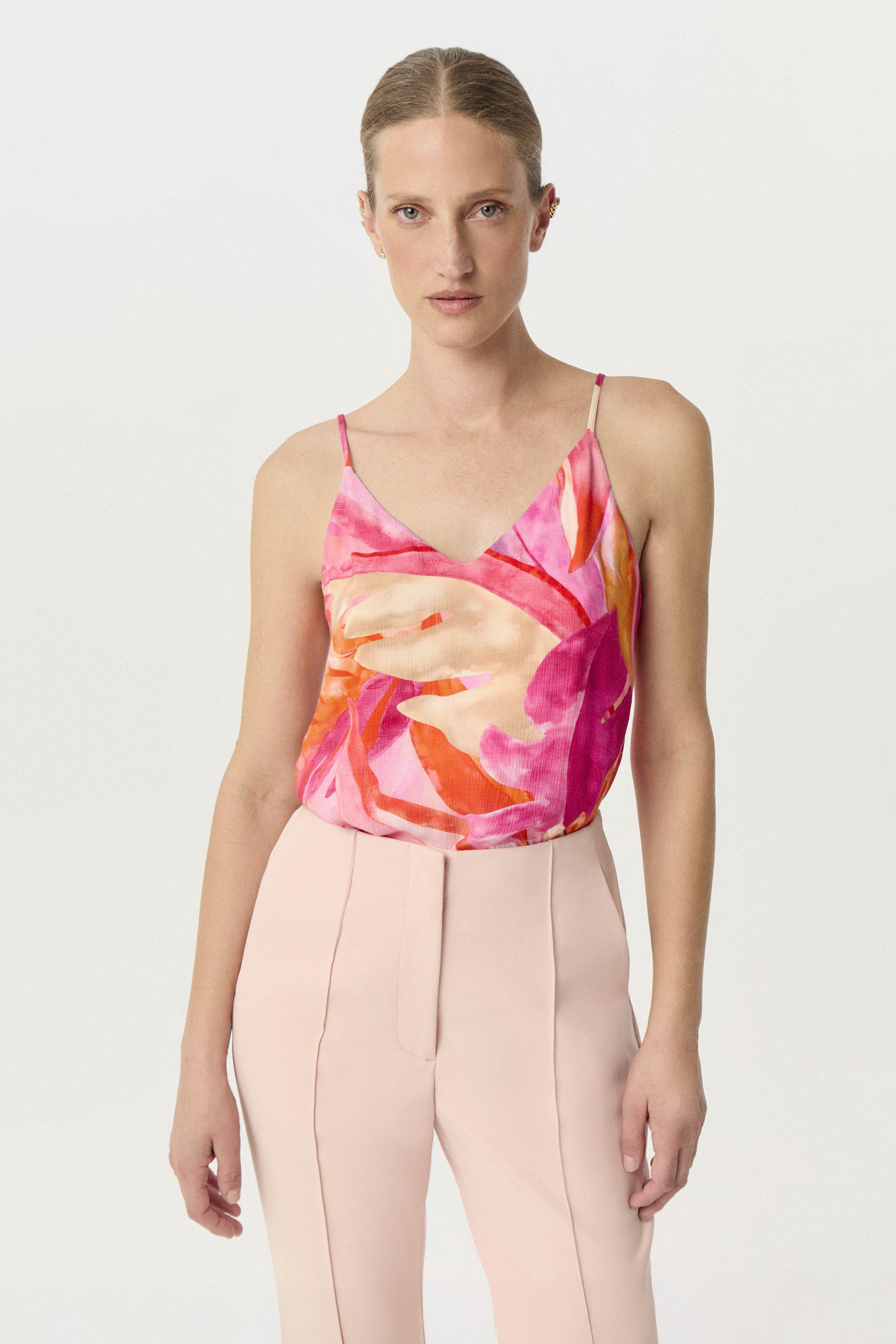 Top en sastrería wash estampada de calce relajado, con estampado exclusivo MKV. Escote en V y breteles finos regulables para un ajuste cómodo. Acompañalo con el traje Tucana y lográ un outfit fresco y elegante, perfecto para cualquier plan de verano.