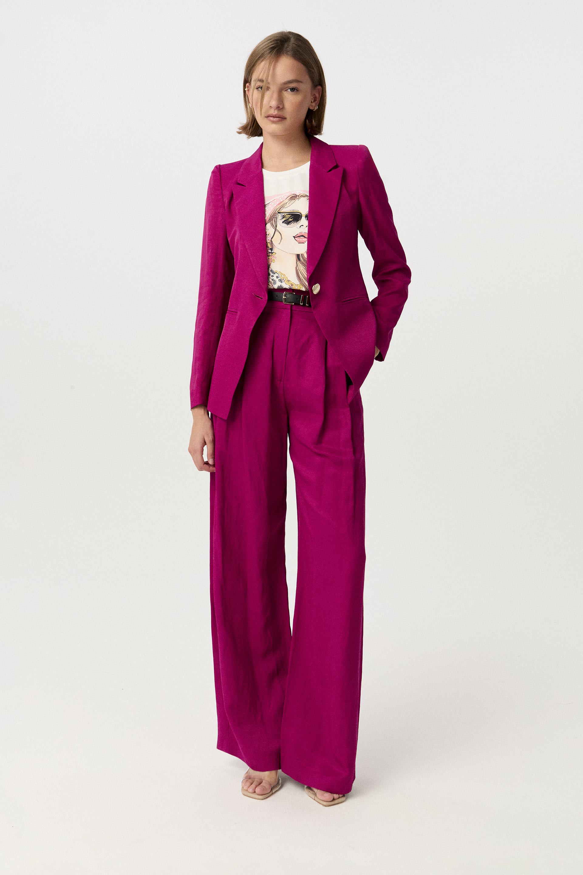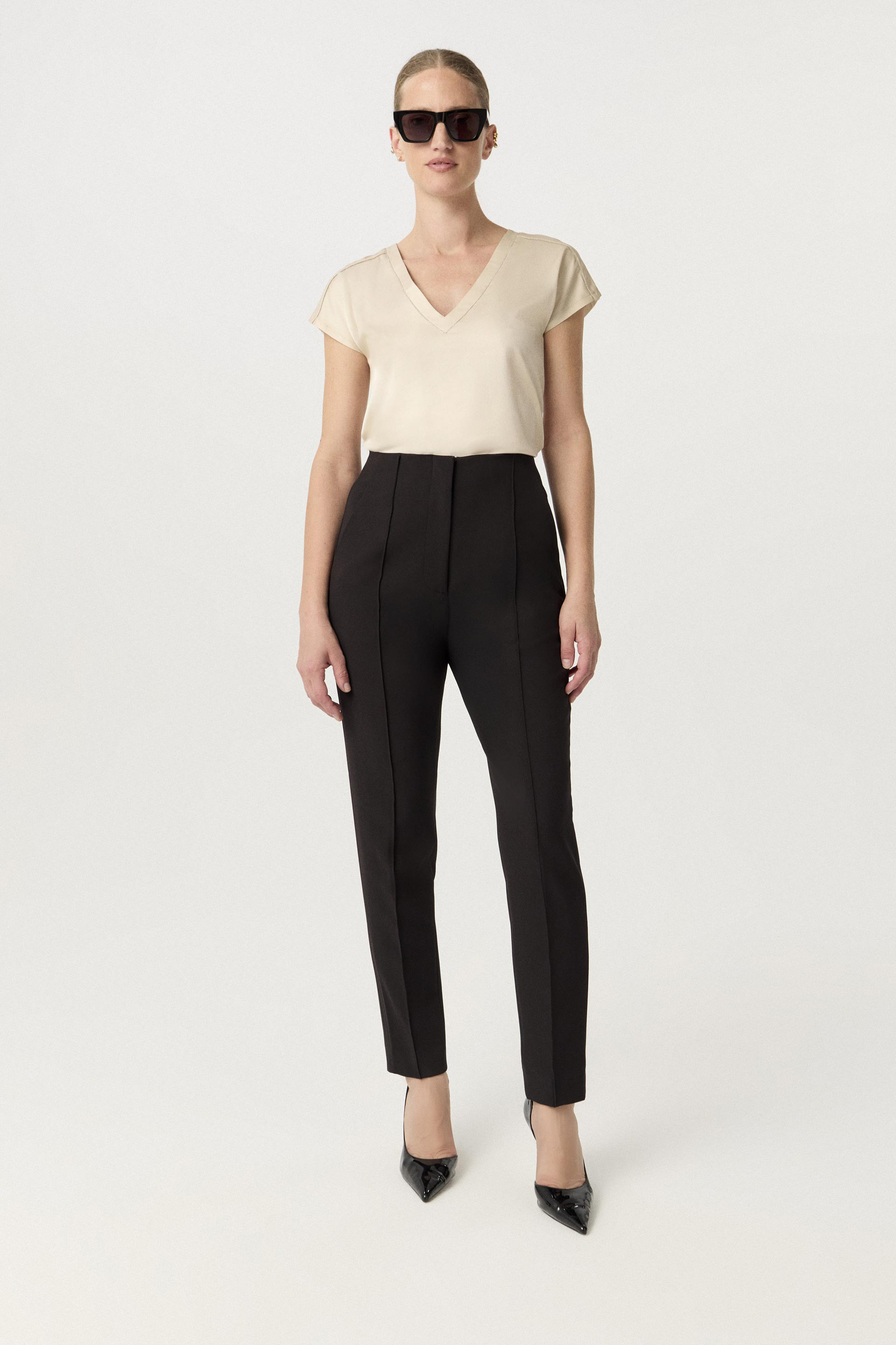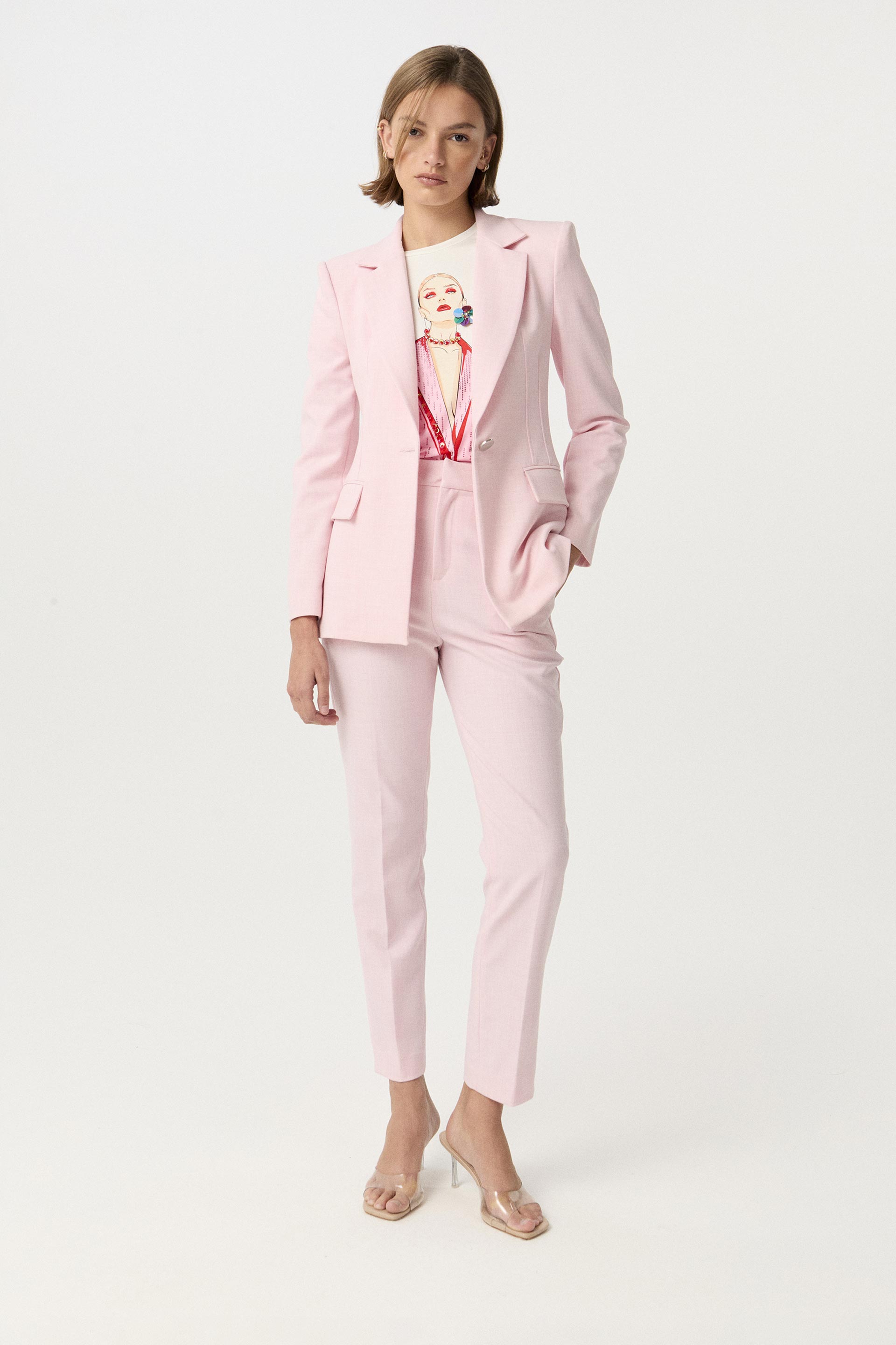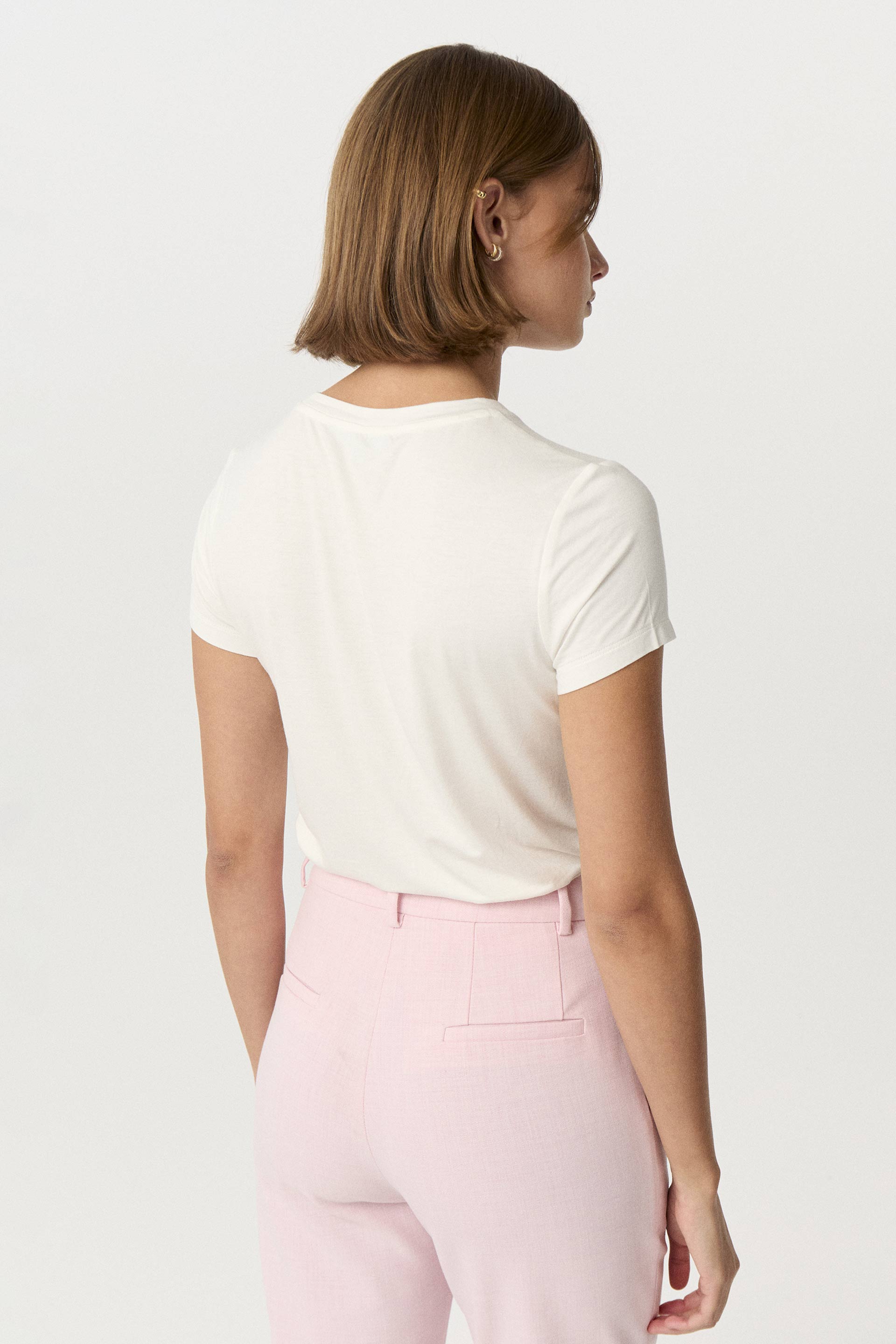 La modelo tiene contorno de busto 82 y usa talle XS.