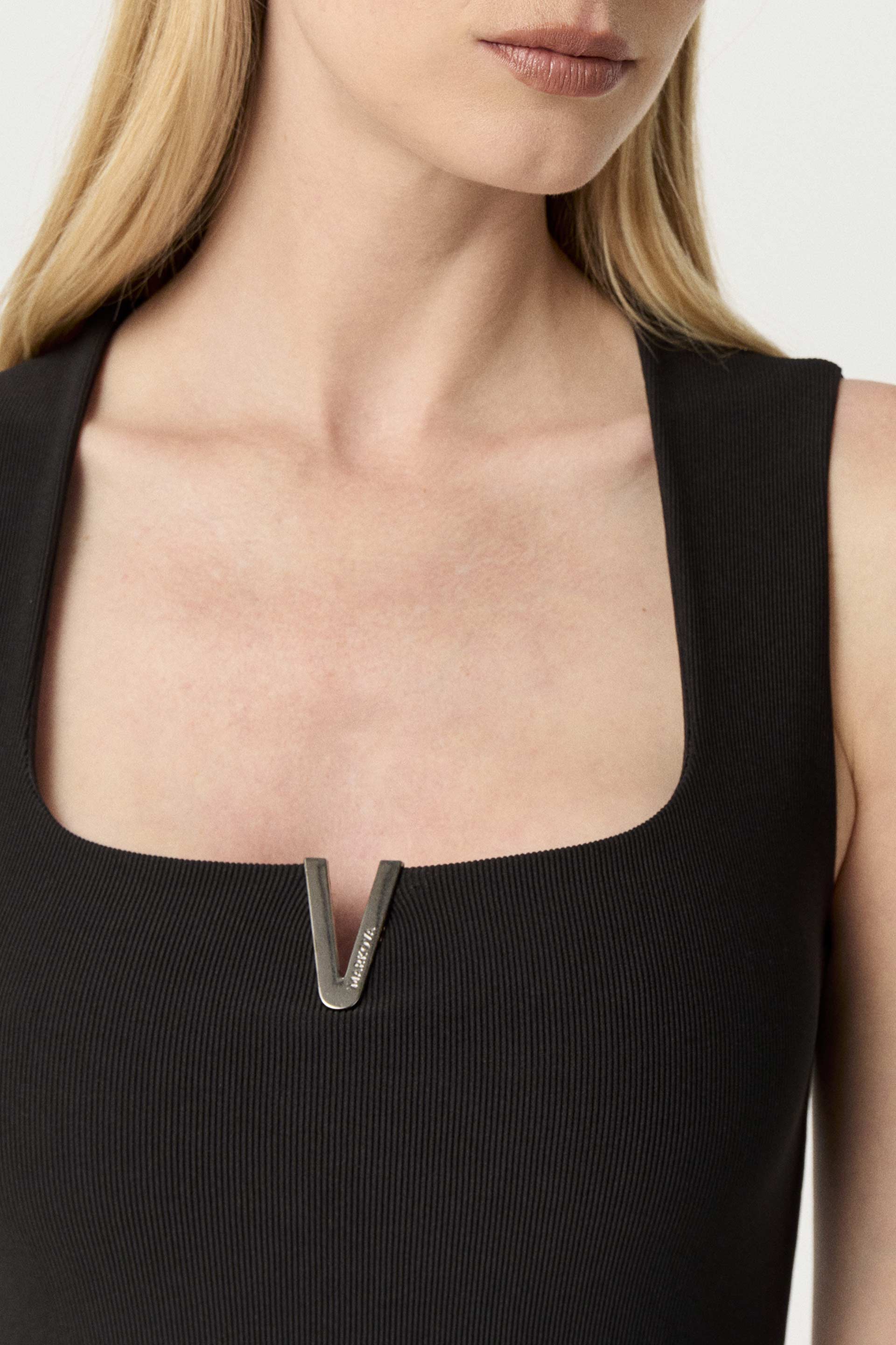 Musculosa de ribb compacto con calce anatómico. Escote cuadrado y chapón metálico personalizado con logo, hombros anchos con guiños a los 90. Un clásico MKV que combina con todo y viste por sí solo. Imprescindible en tu fondo de armario.