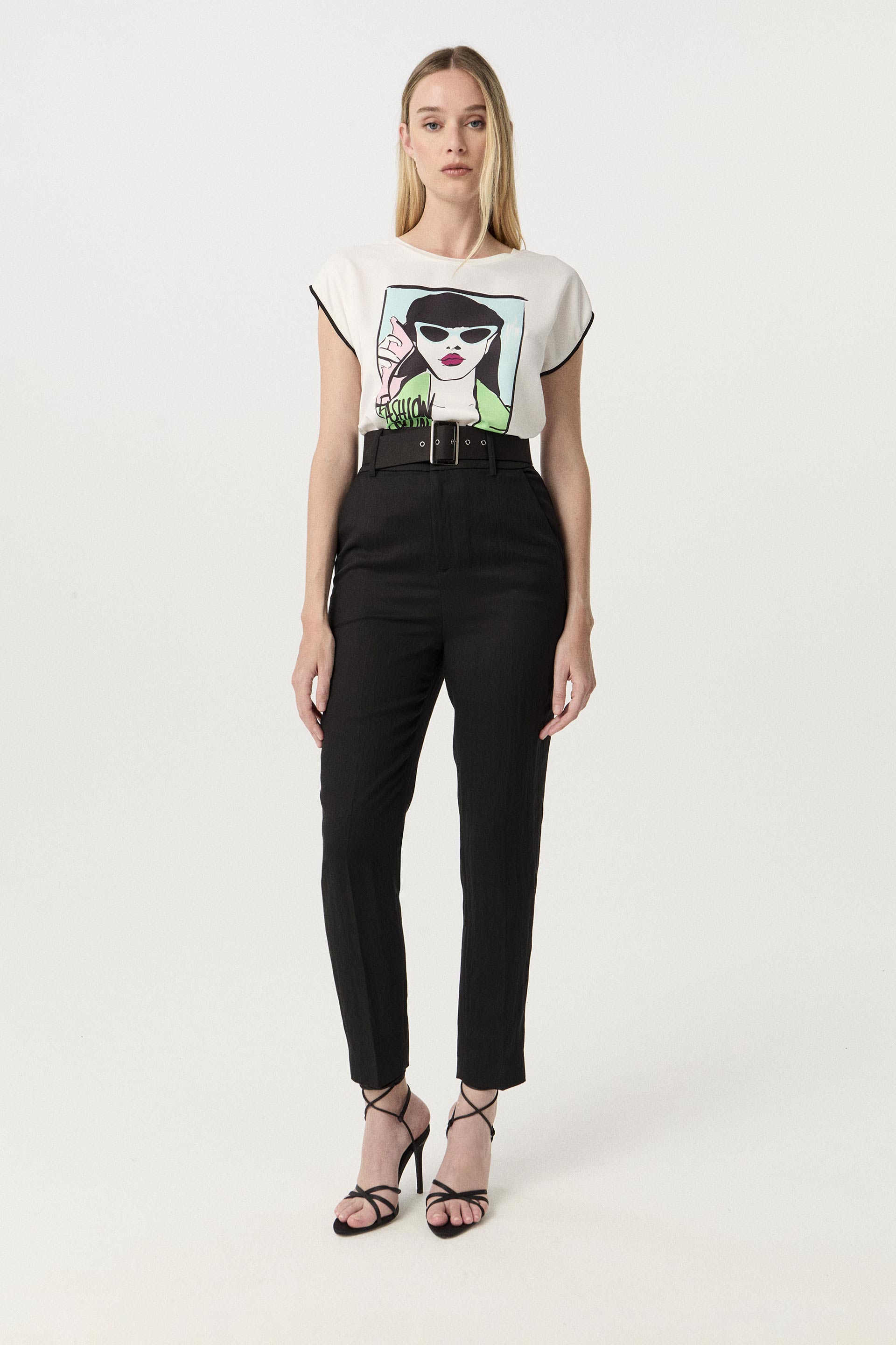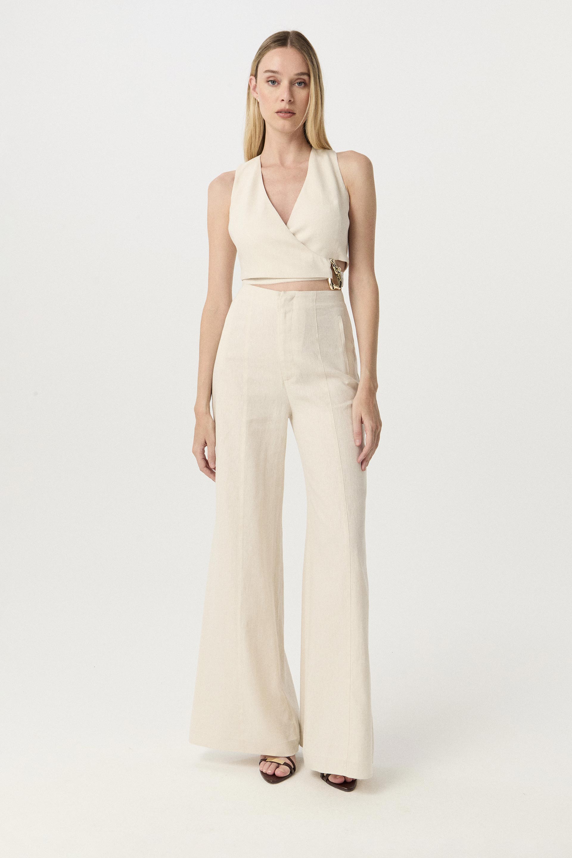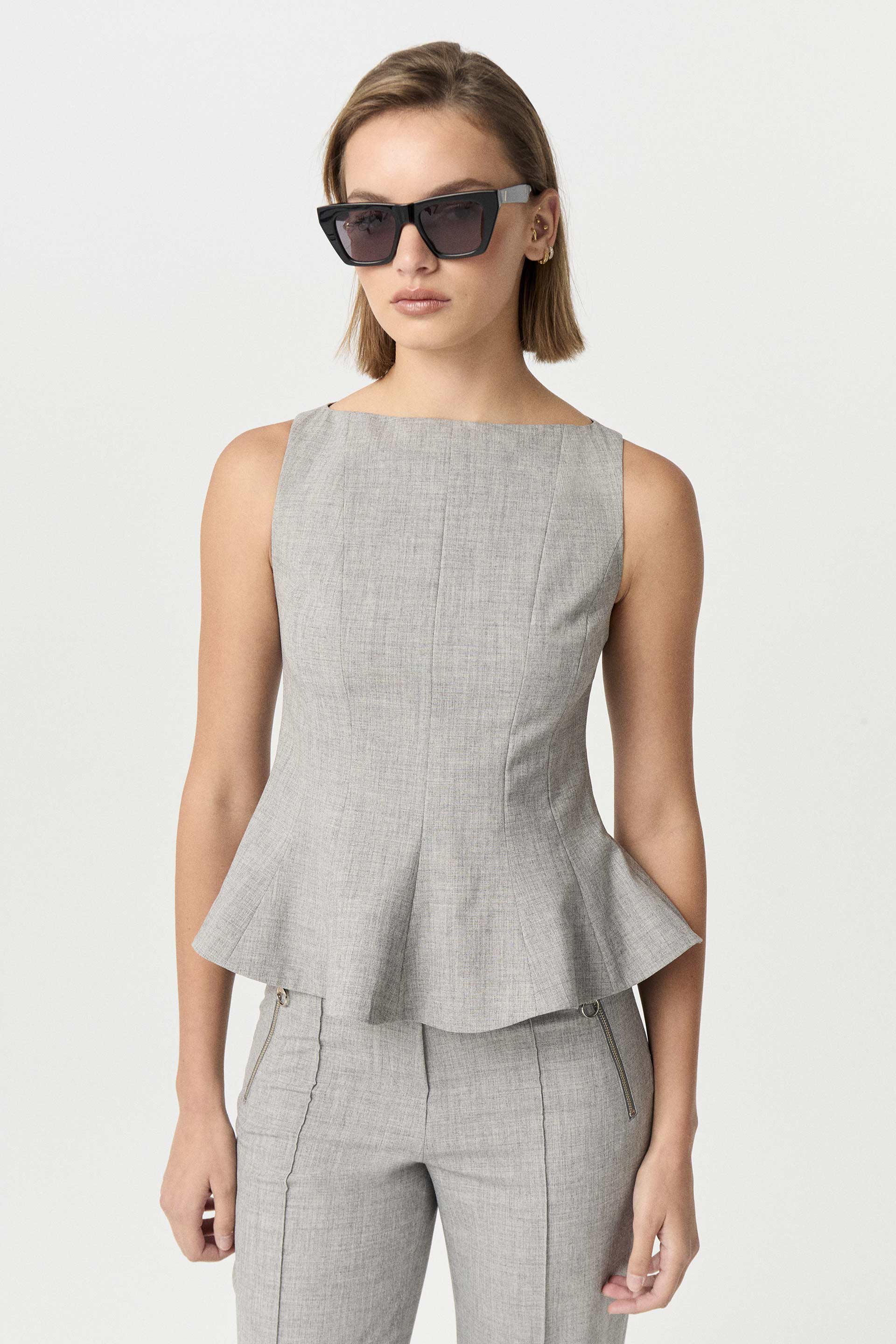 Top tejido en punto liso con lúrex, de calce al cuerpo. Doble escote en V con breteles finos. Liviano, suave y con un brillo sutil, un comodín infaltable para el verano.