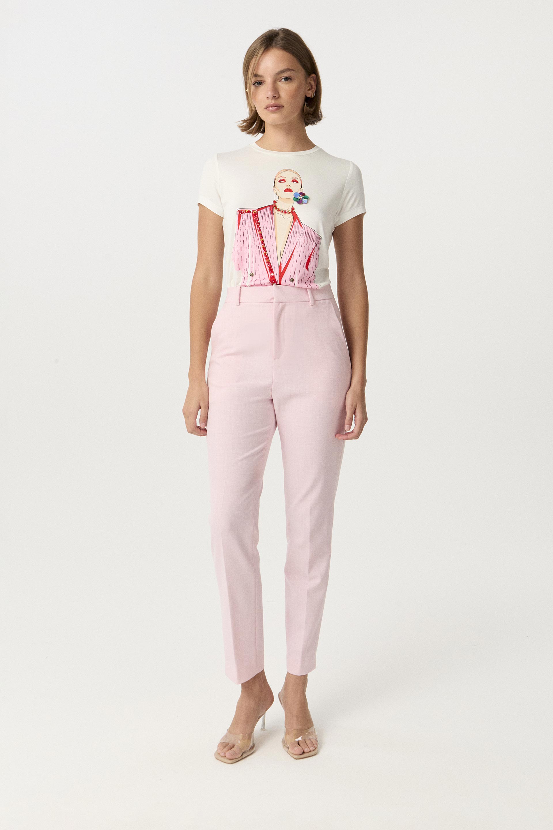 La modelo tiene contorno de busto 84 y usa talle 1.