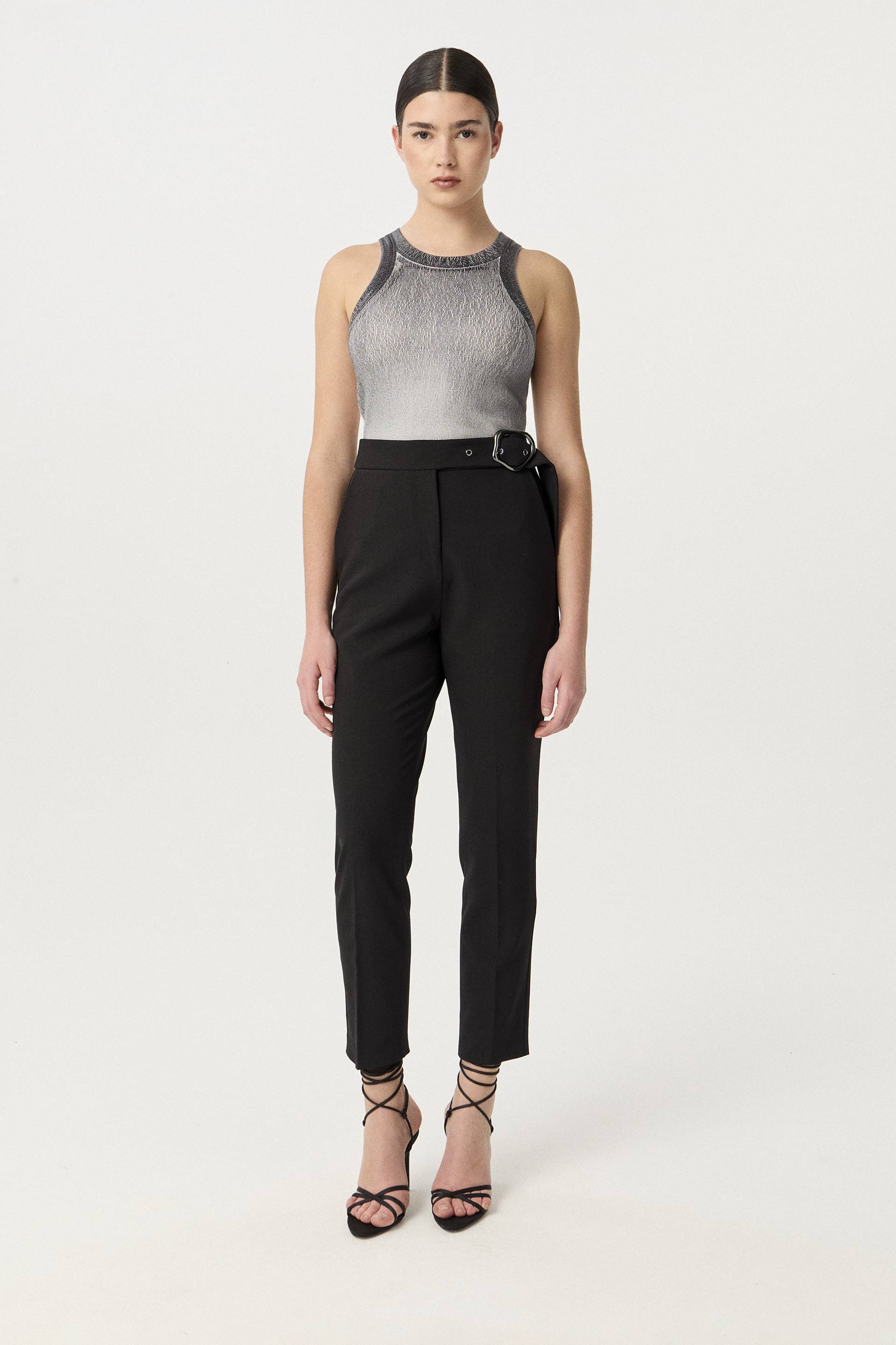 La modelo tiene contorno de busto 86 y usa talle S.