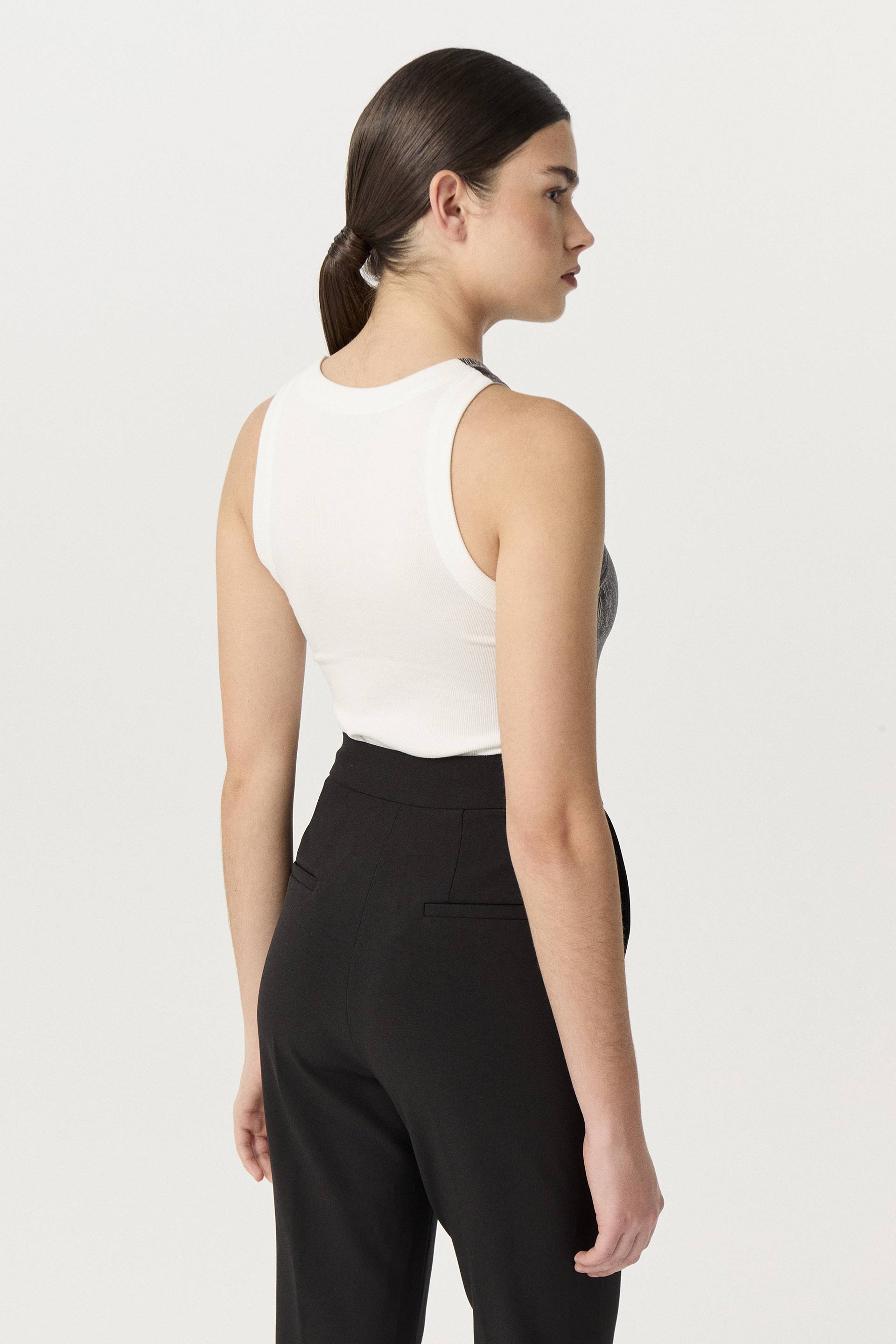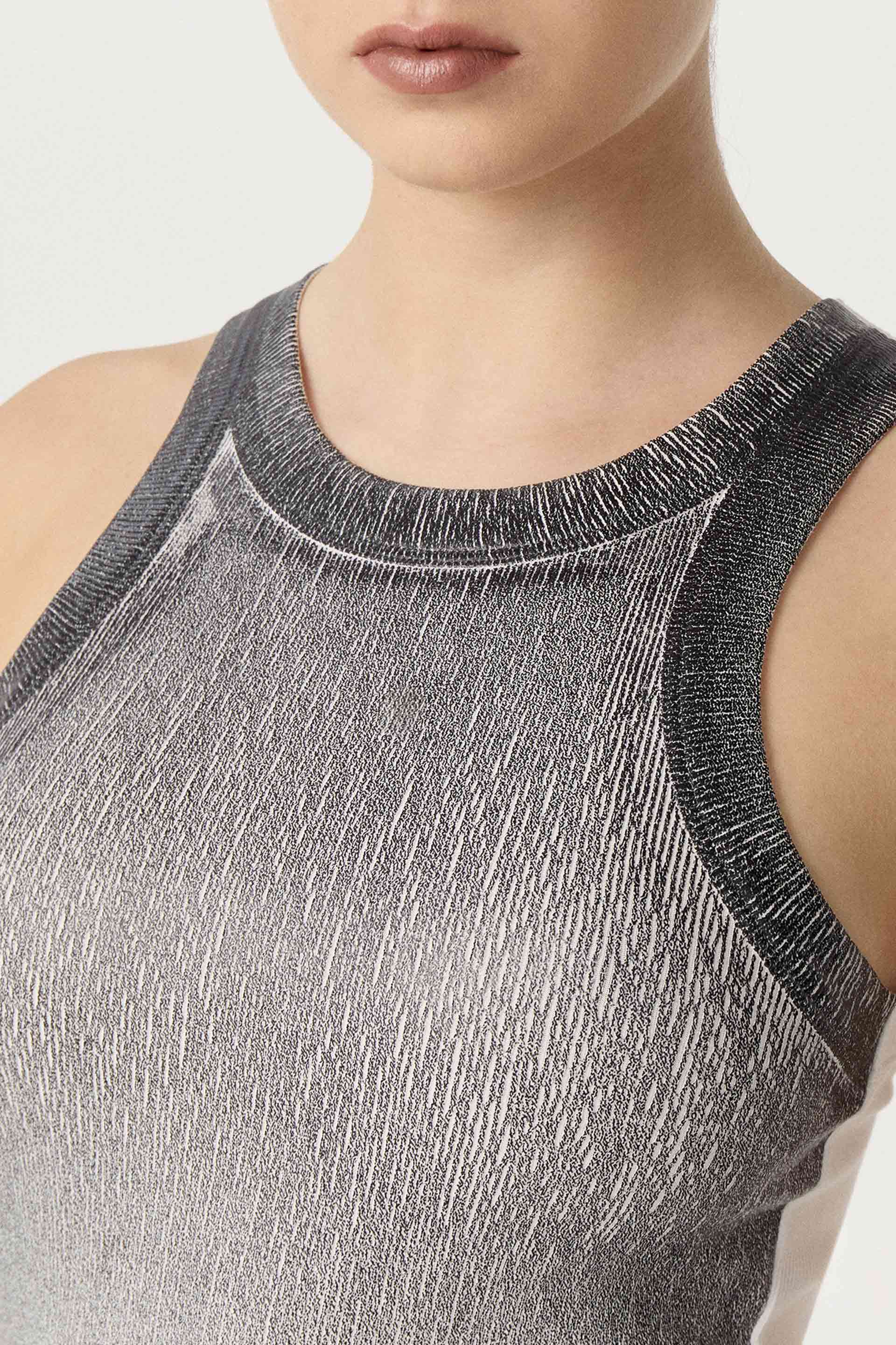 Musculosa de algodón peruano con estampa foil en delantero. De calce anatómico, corte americano y envivado ancho en cuello y sisas. Un ítem ideal para armar looks modernos y descontracturados.
