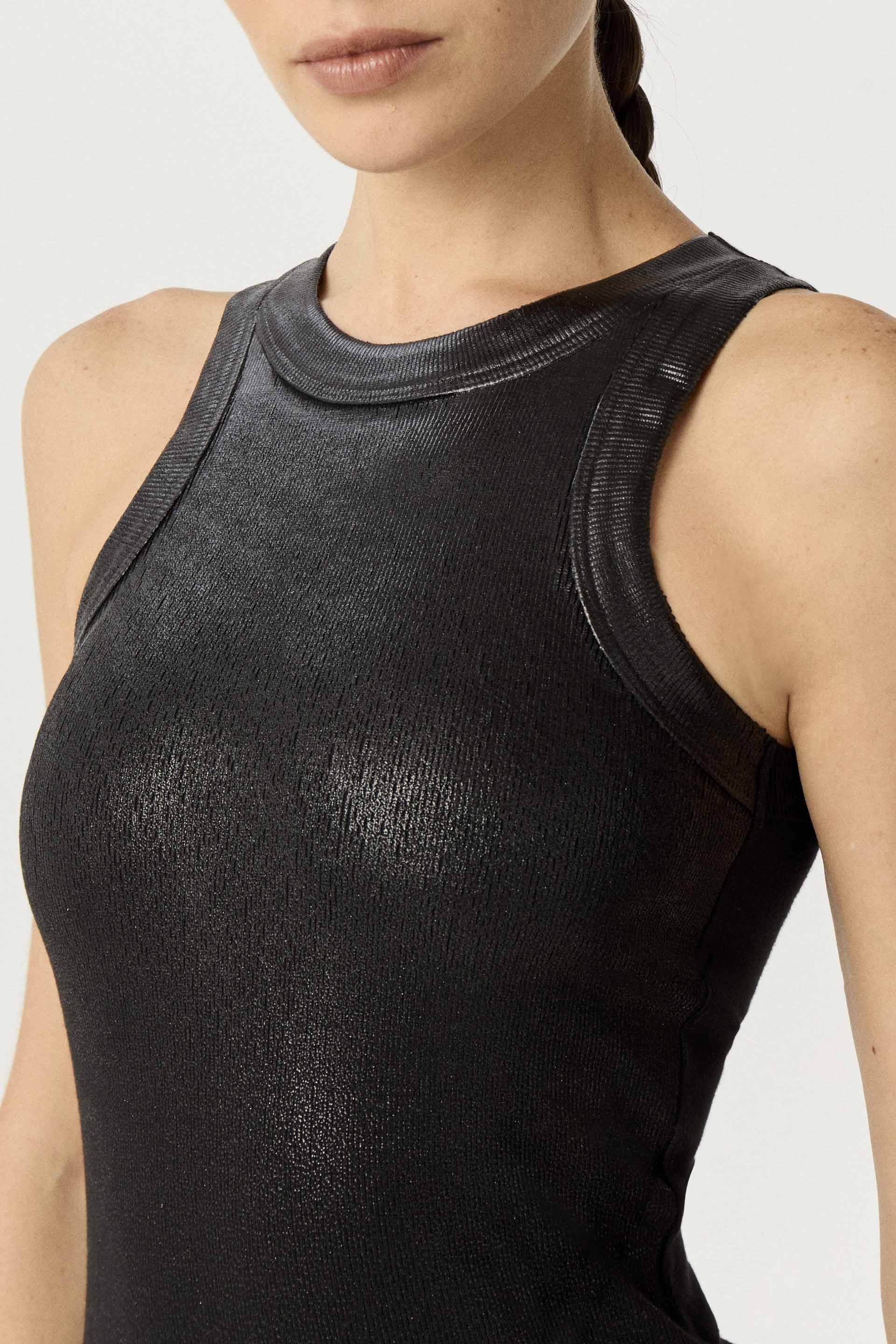 Musculosa de algodón peruano con estampa foil en delantero. De calce anatómico, corte americano y envivado ancho en cuello y sisas. Un ítem ideal para armar looks modernos y descontracturados.