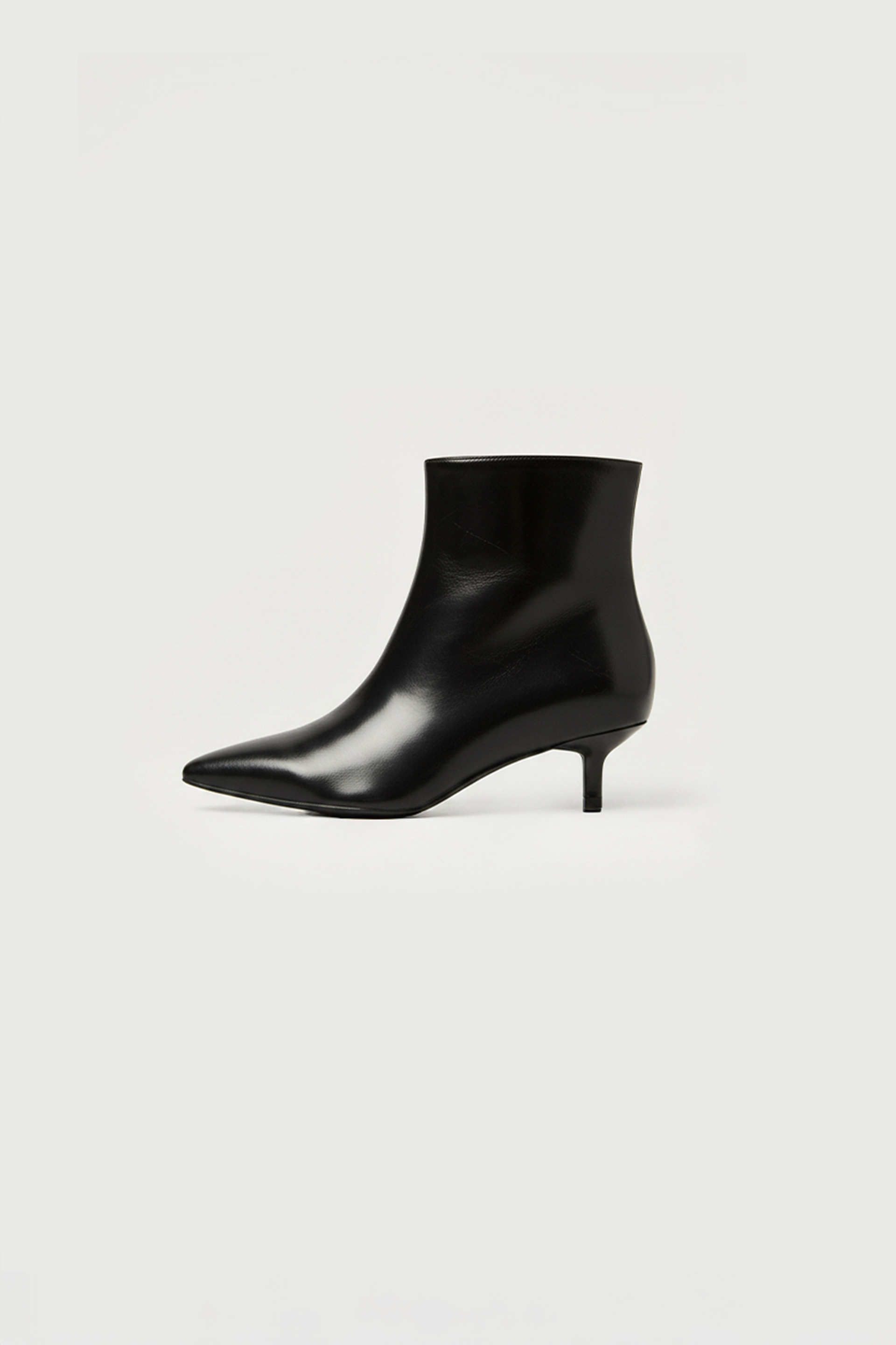 Bota caña baja efecto cuero brilloso. Con recorte central, taco bajo y punta estilizada para un look moderno y elegante. Altura taco: 5,5 cm