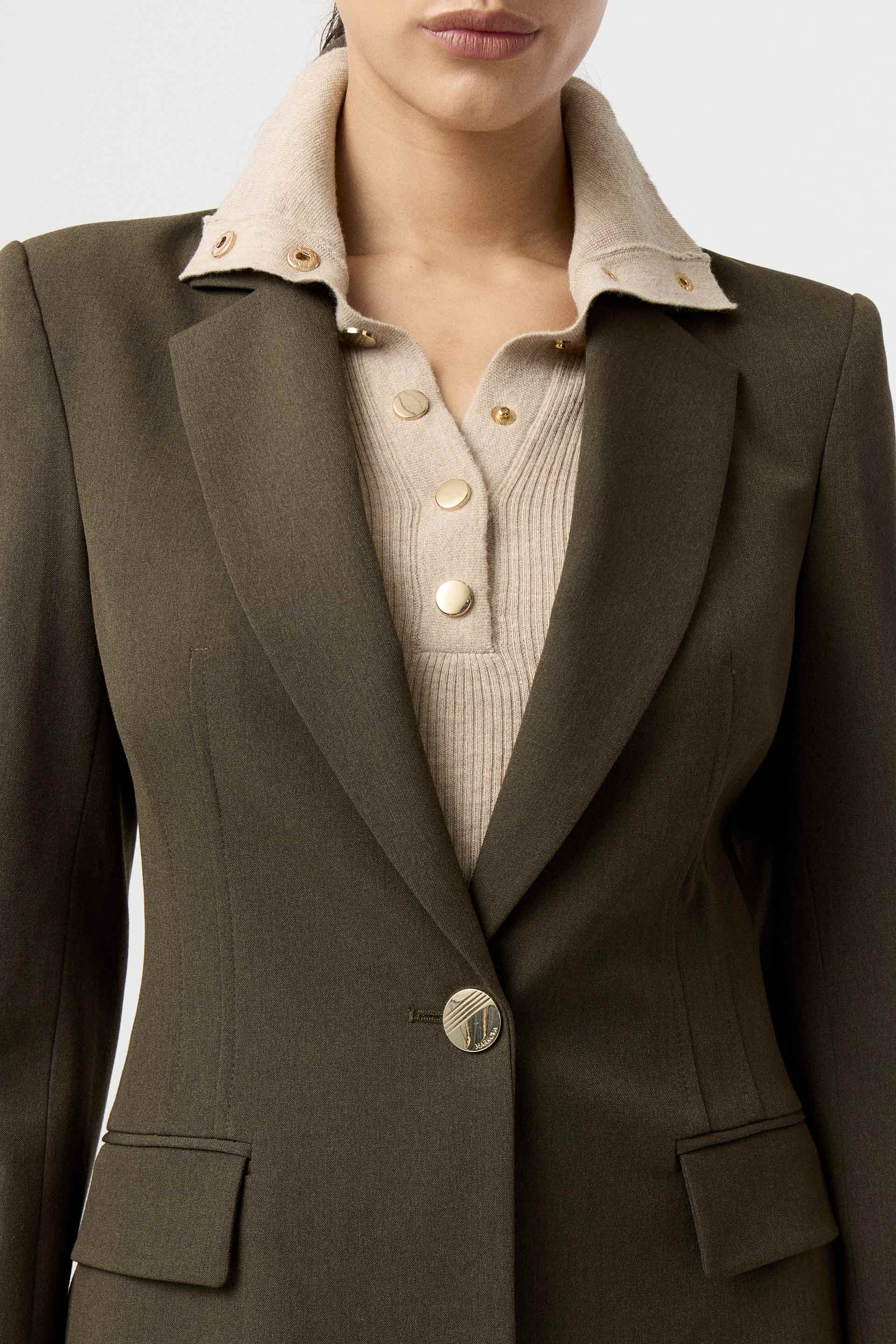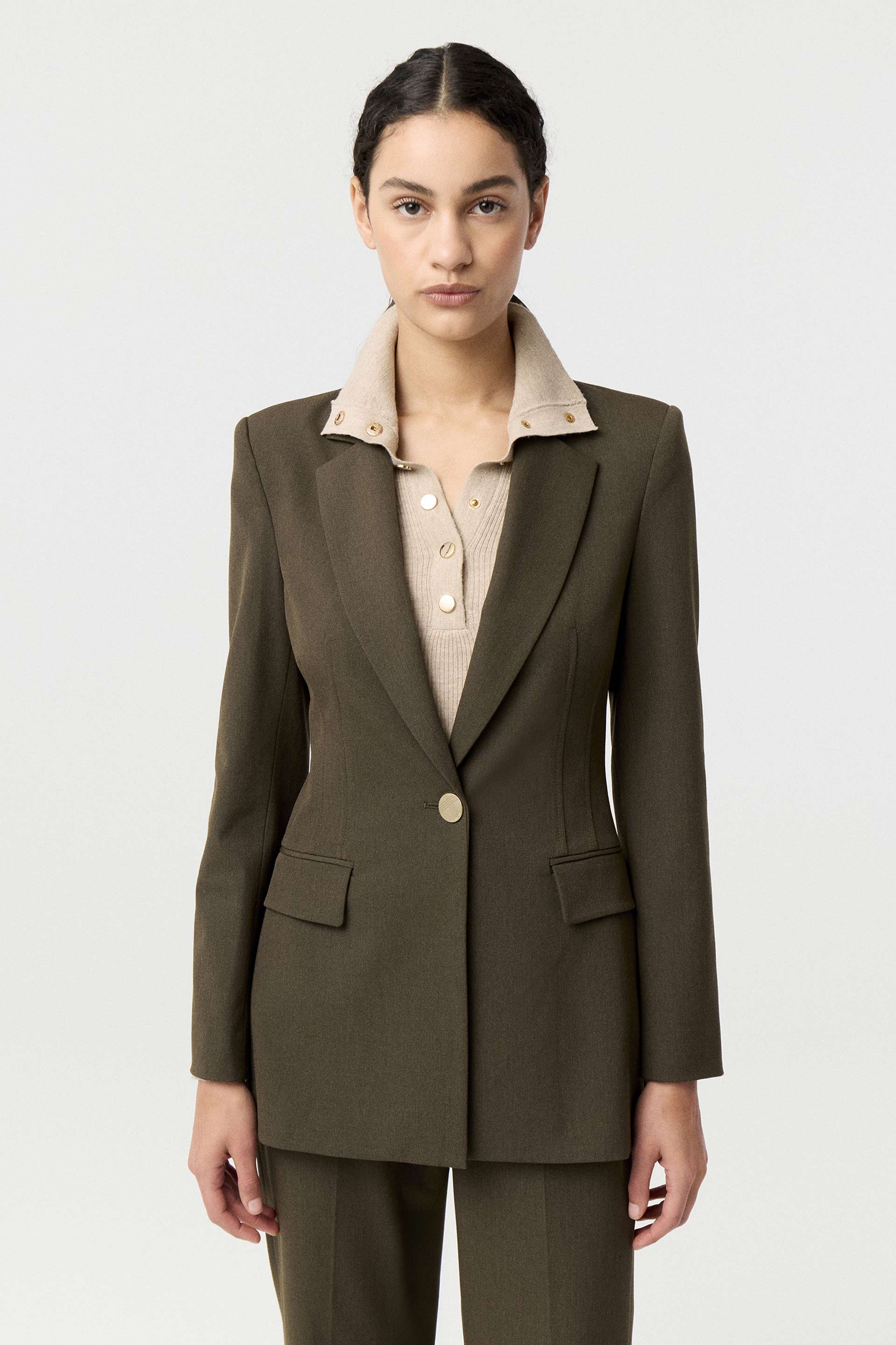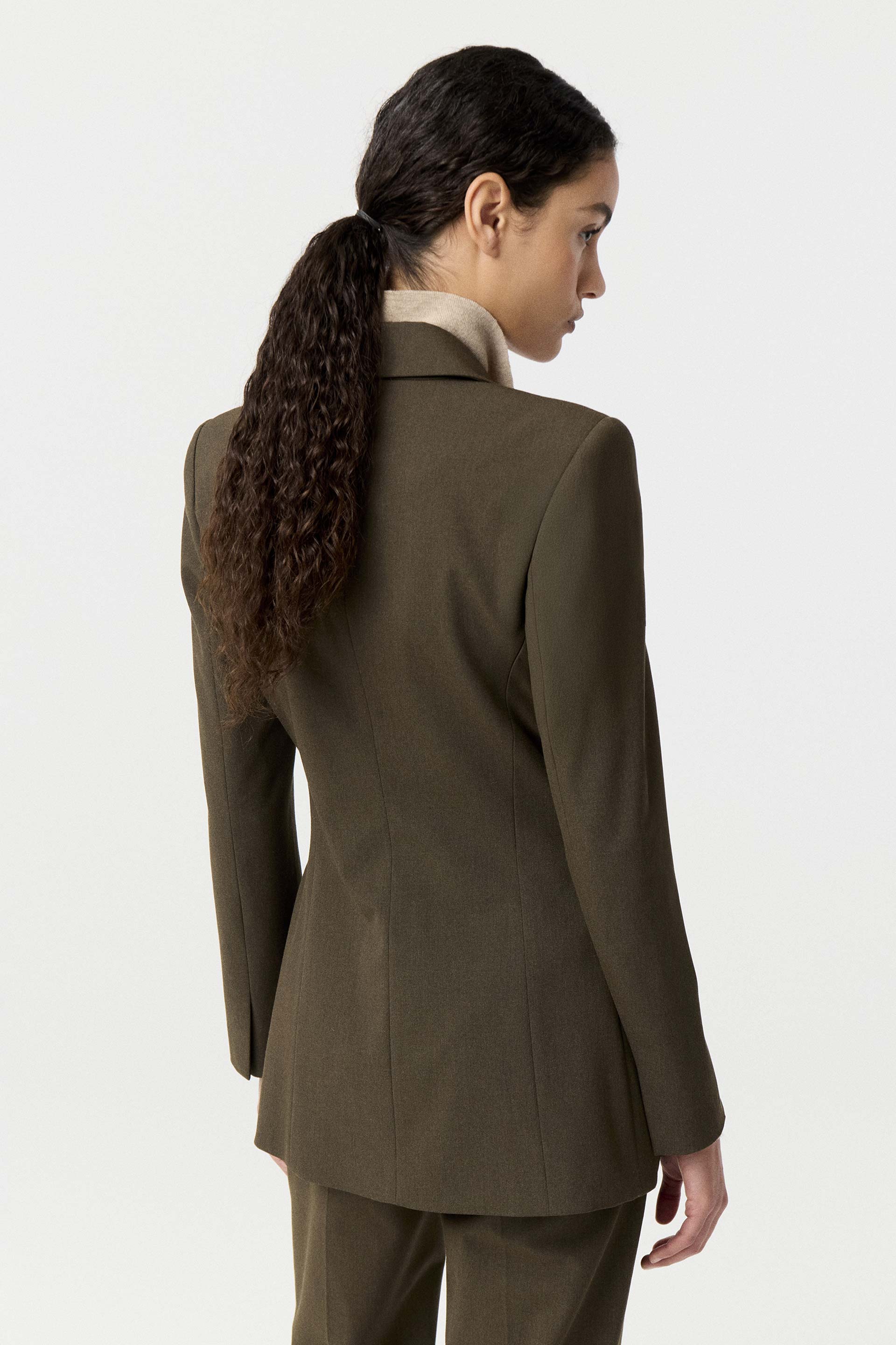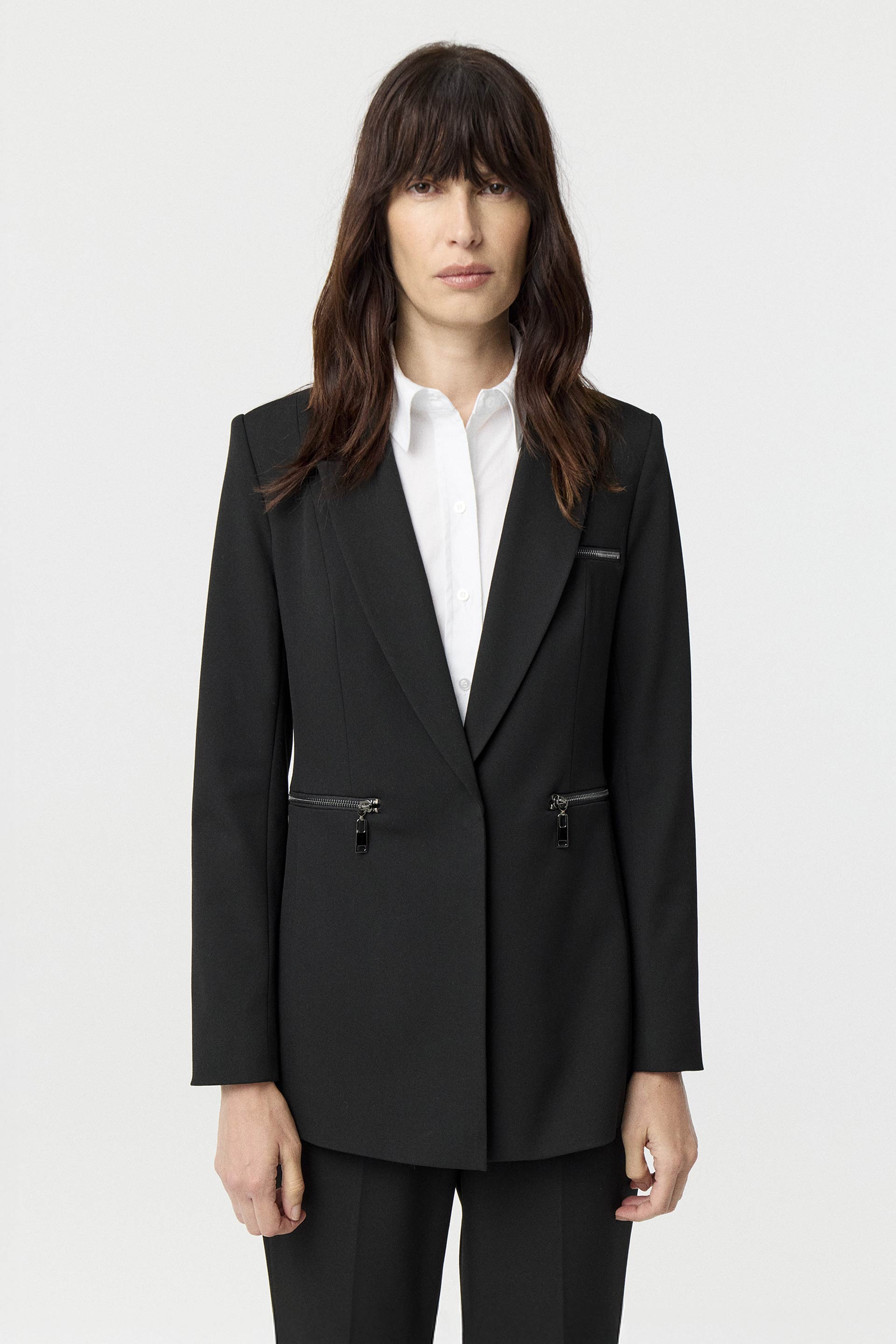 Blazer largo de sastrería viscosa, de silueta entallada y mangas largas. Su interior está forrado con satén elastizado generando extra confort. Posee acceso central con botón metálico personalizado MKV. Combinalo con el pantalón Fitz y armá un total look clásico y moderno ideal para la oficina.