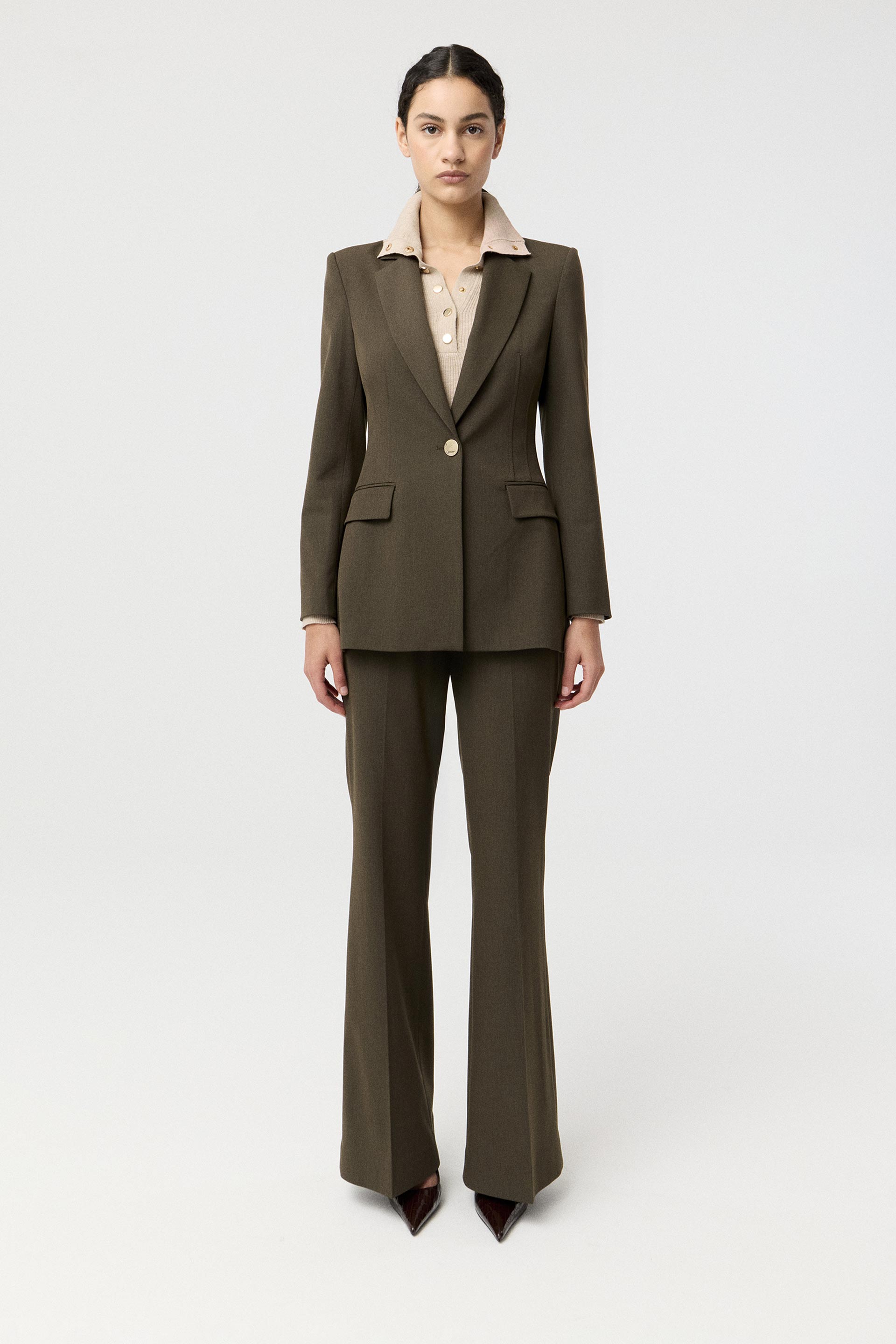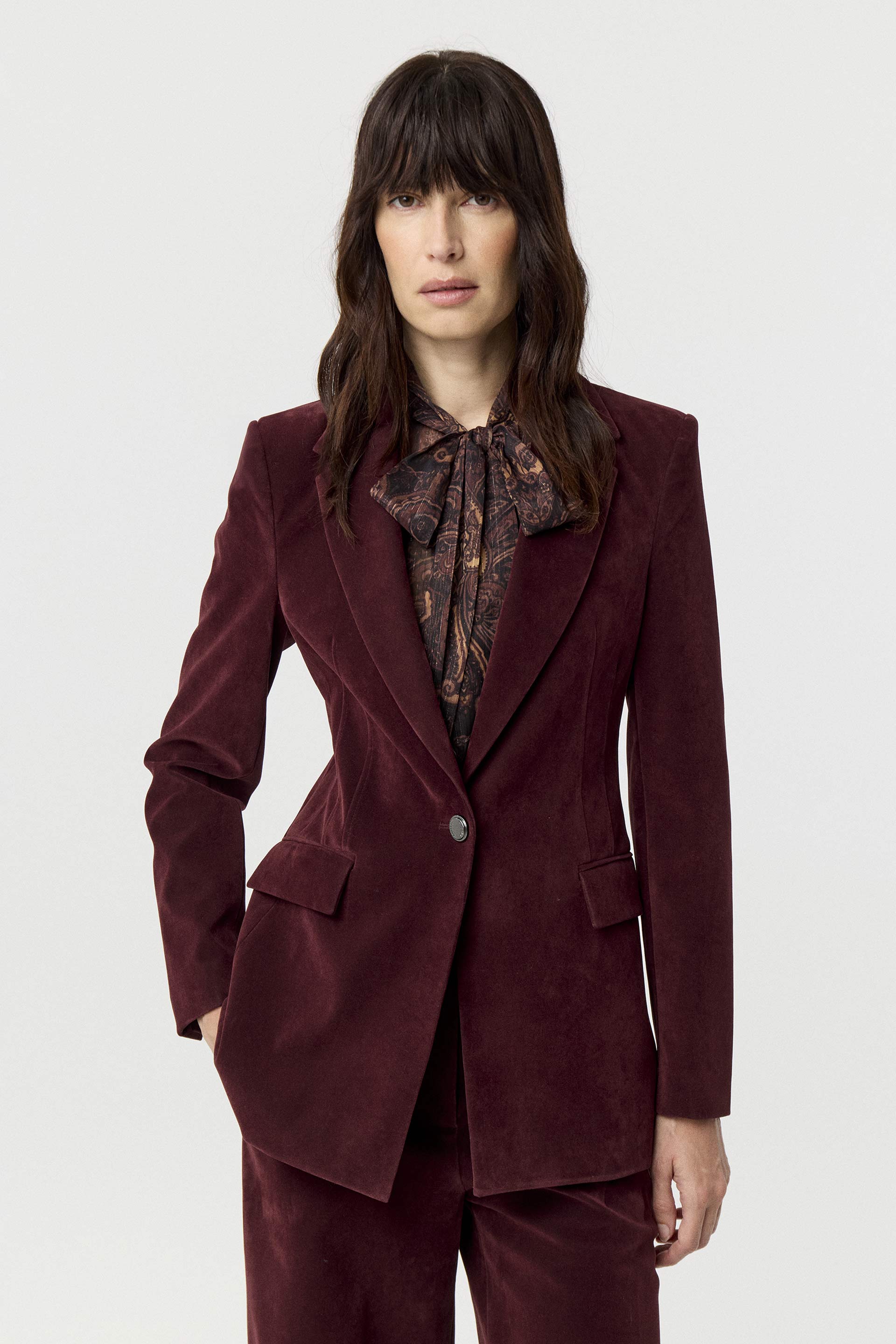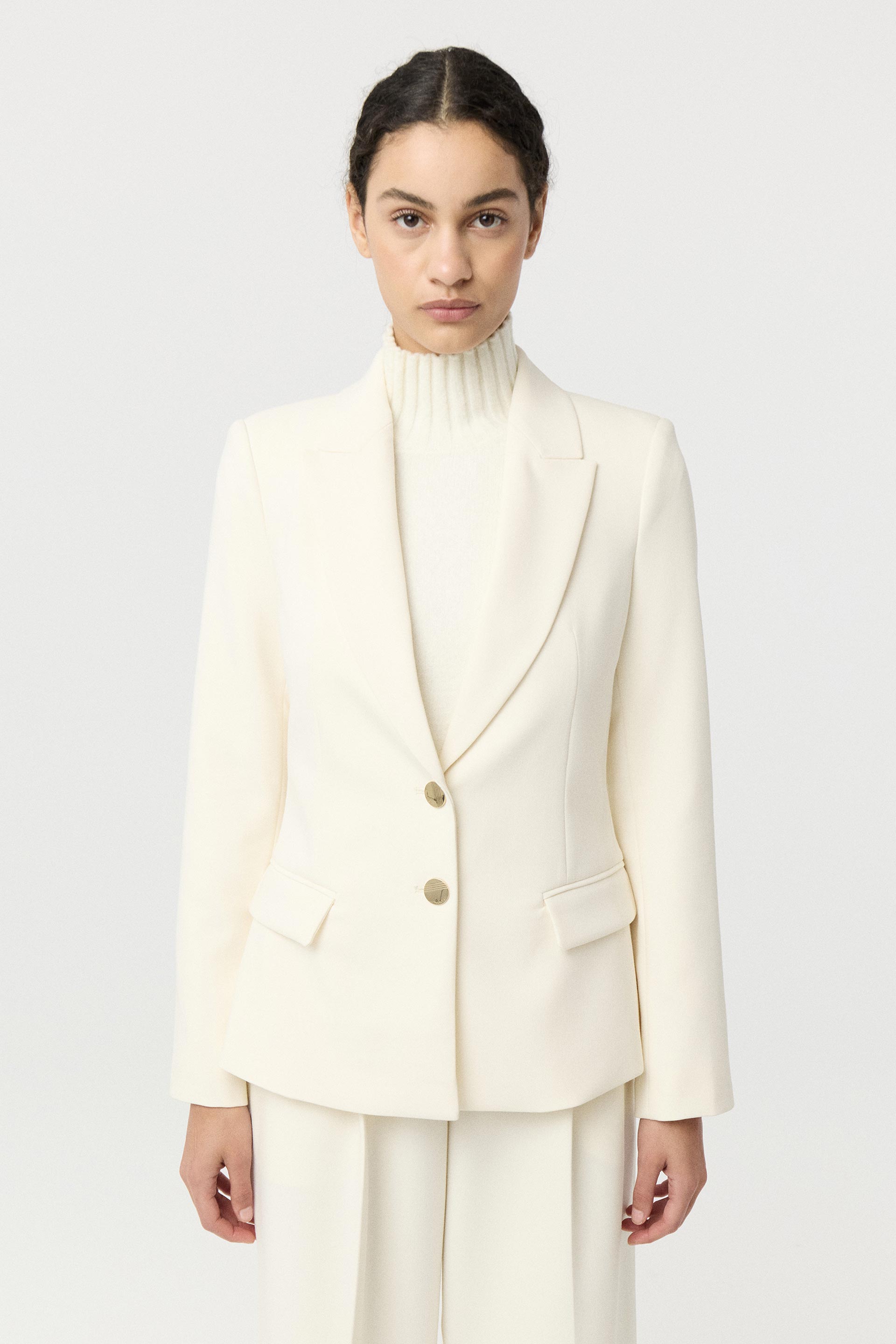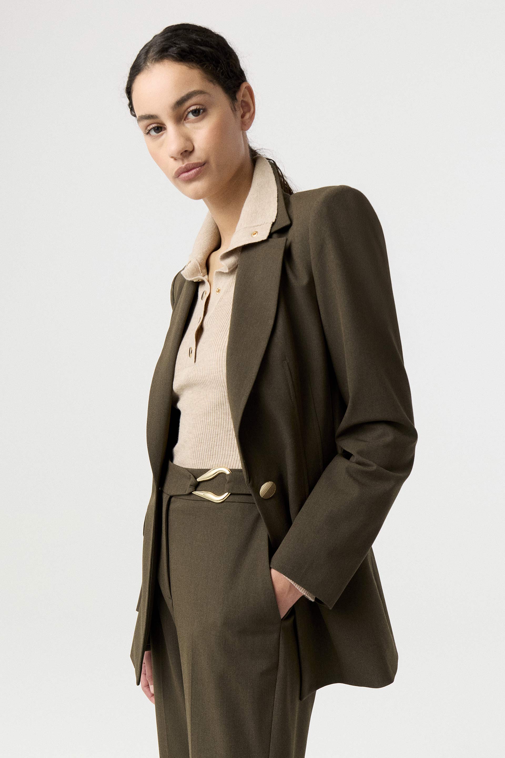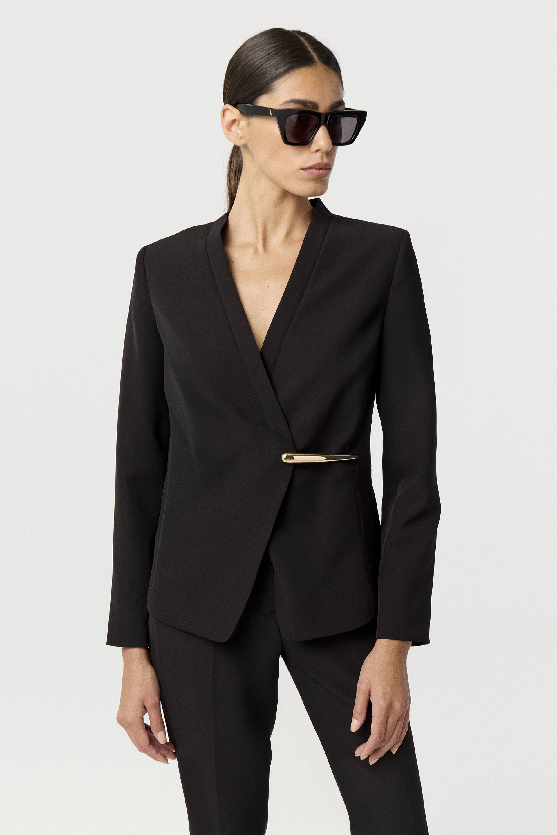 Blazer largo de sastrería viscosa, de silueta entallada y mangas largas. Su interior está forrado con satén elastizado generando extra confort. Posee acceso central con botón metálico personalizado MKV. Combinalo con el pantalón Fitz y armá un total look clásico y moderno ideal para la oficina.