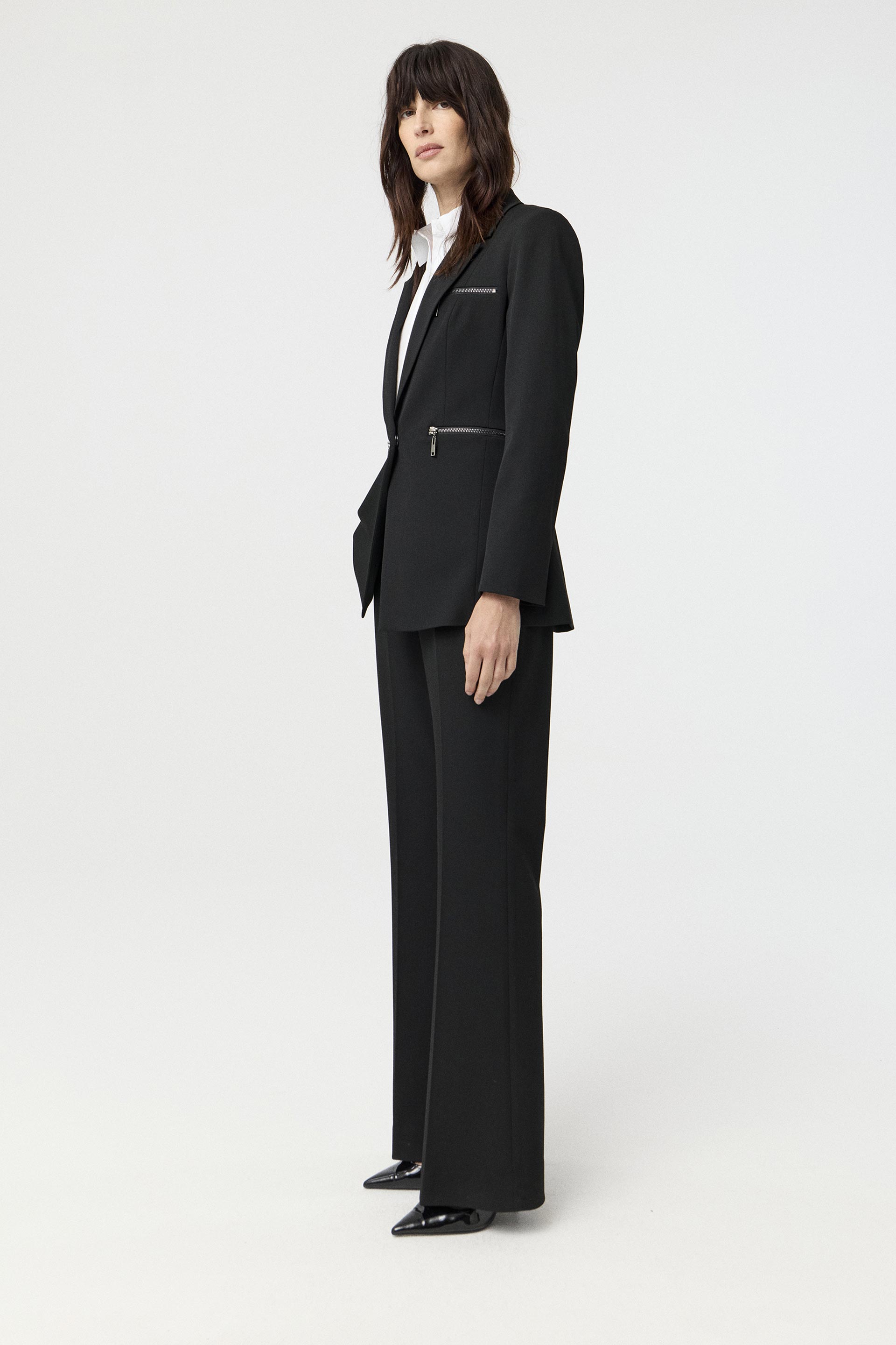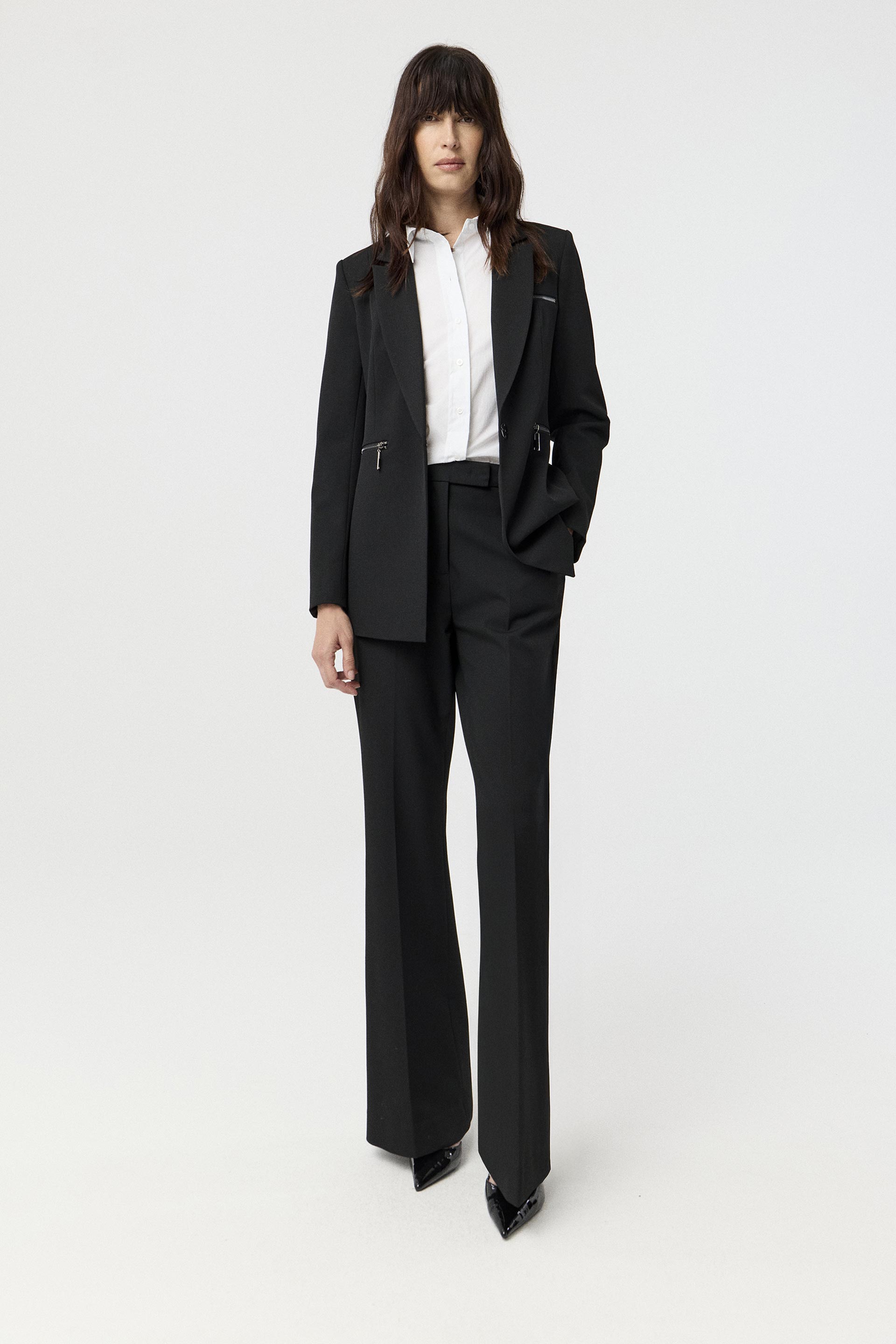 Blazer largo de sastrería viscosa, de silueta entallada y mangas largas. Su interior está forrado con satén elastizado generando extra confort. Posee acceso central con broche interno y cierres metálicos en bolsillos. Combinalo con el pantalón Mauna y armá un total look moderno y canchero, ideal tanto para la oficina como para una salida.