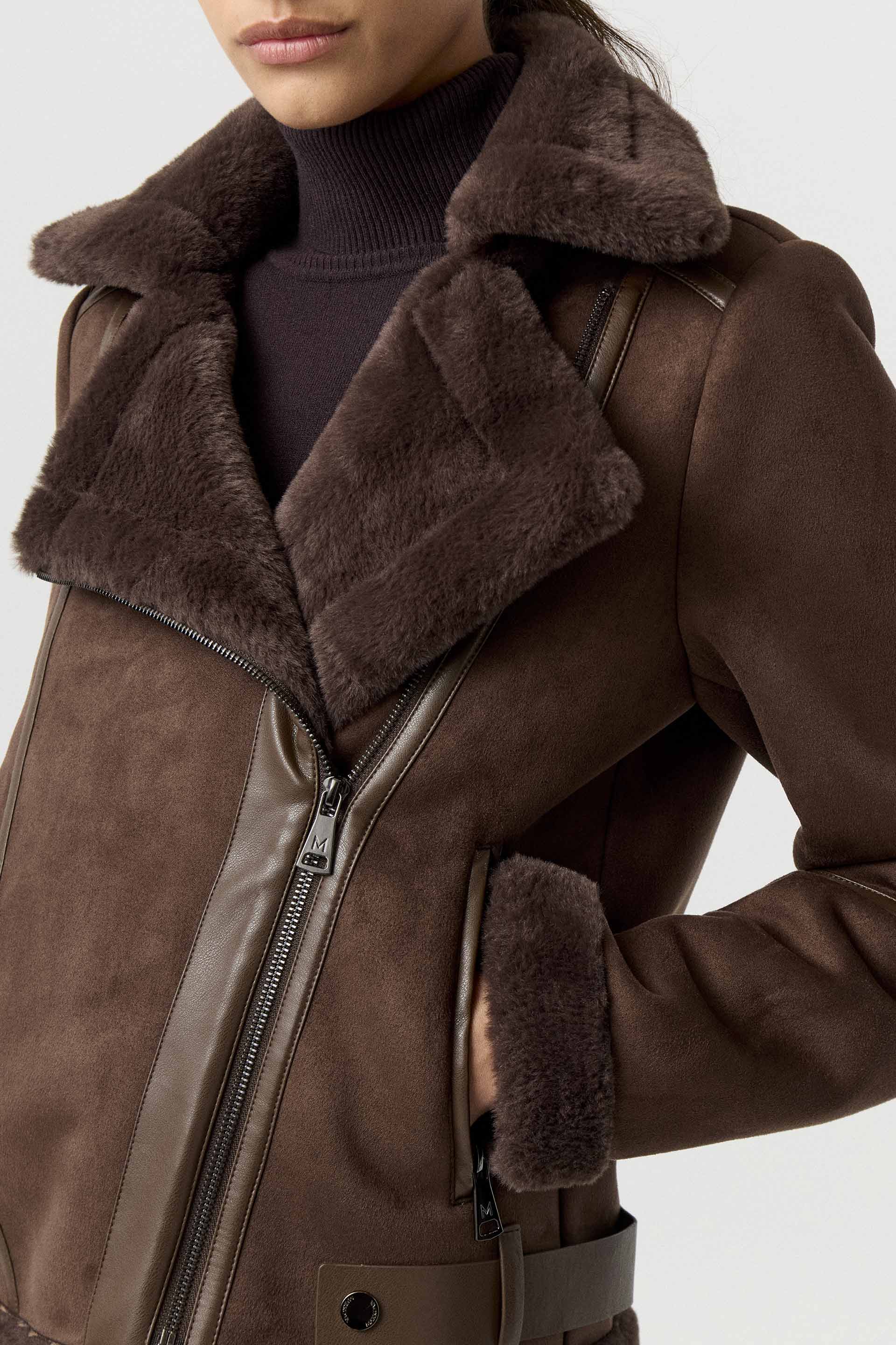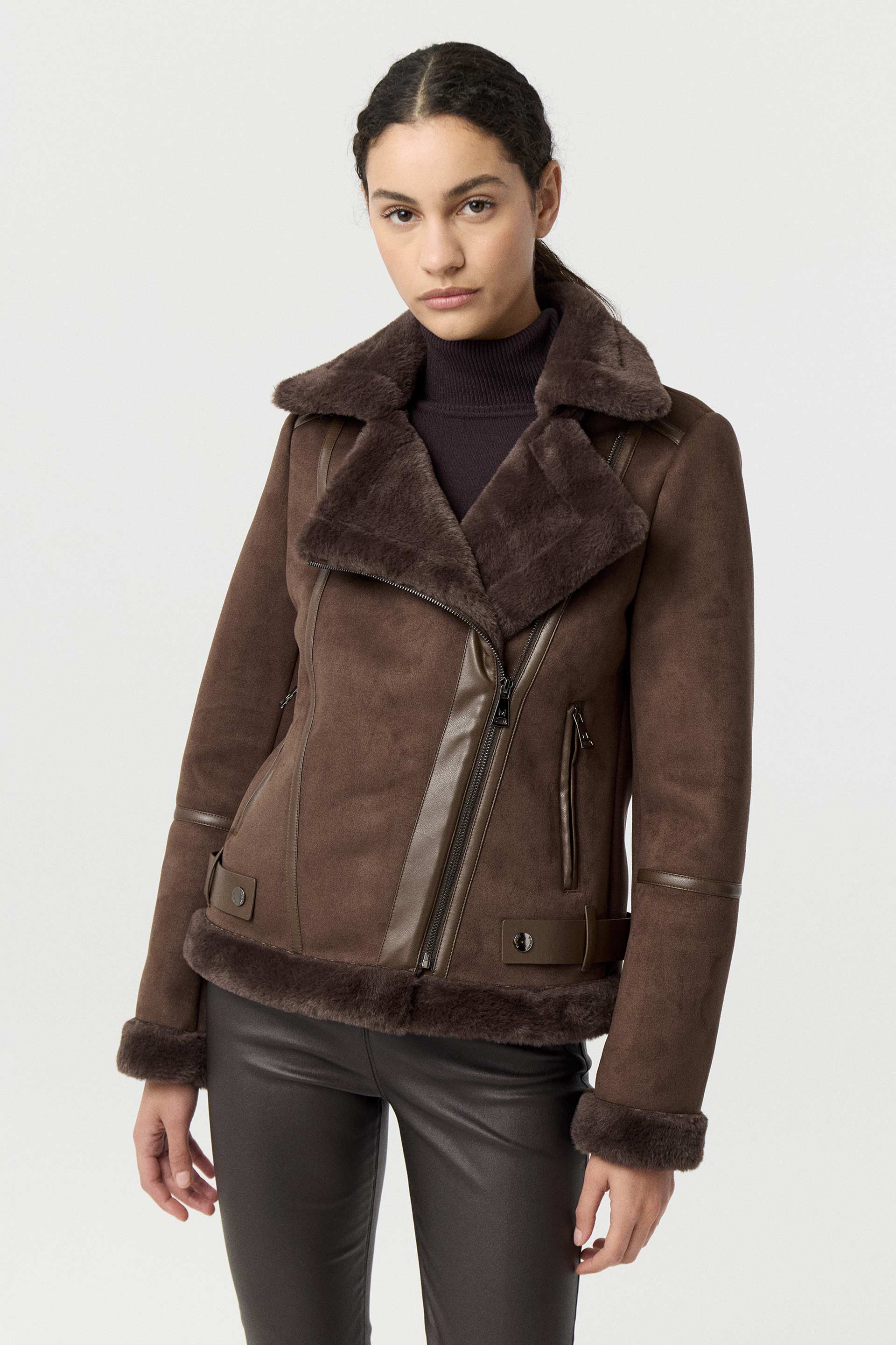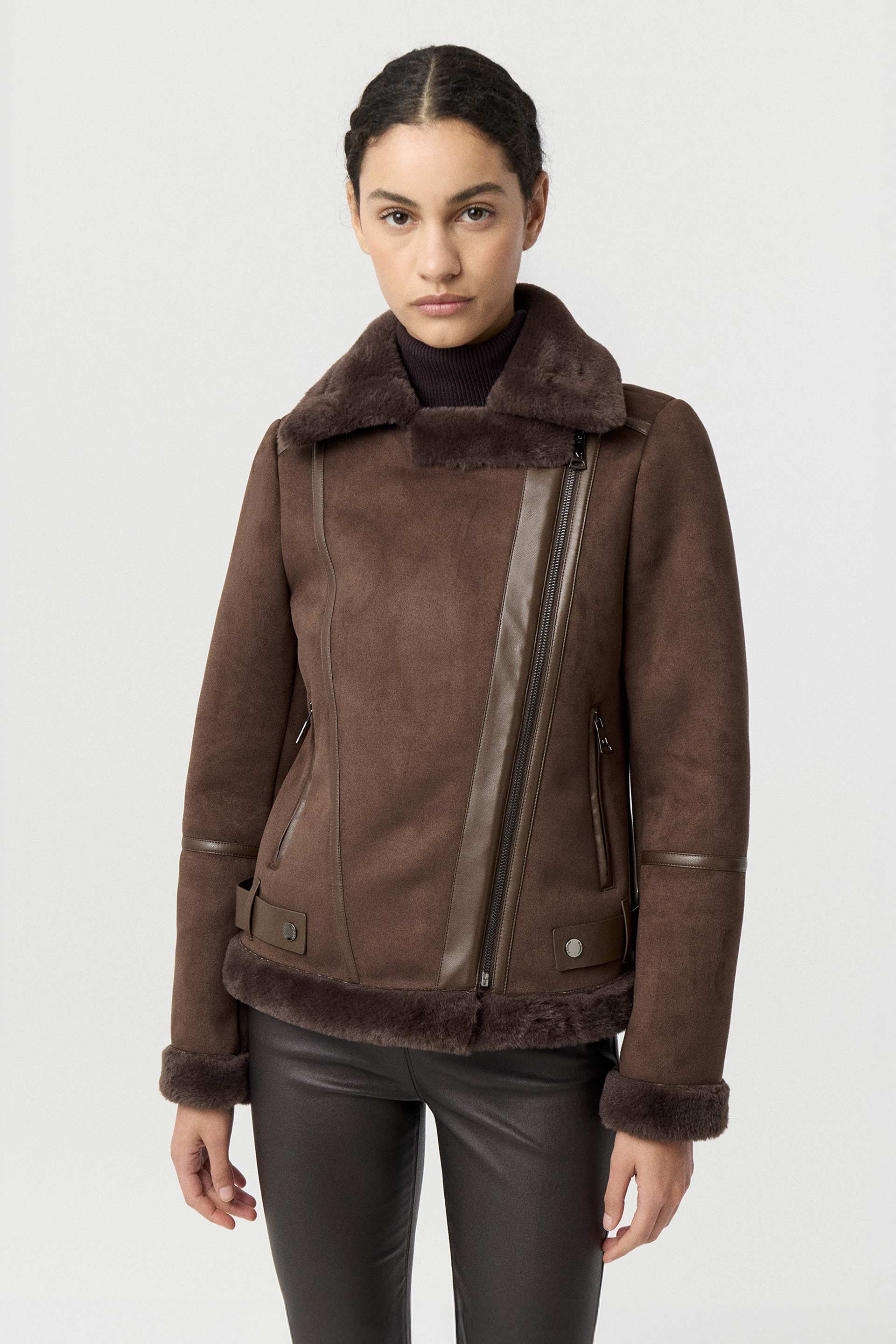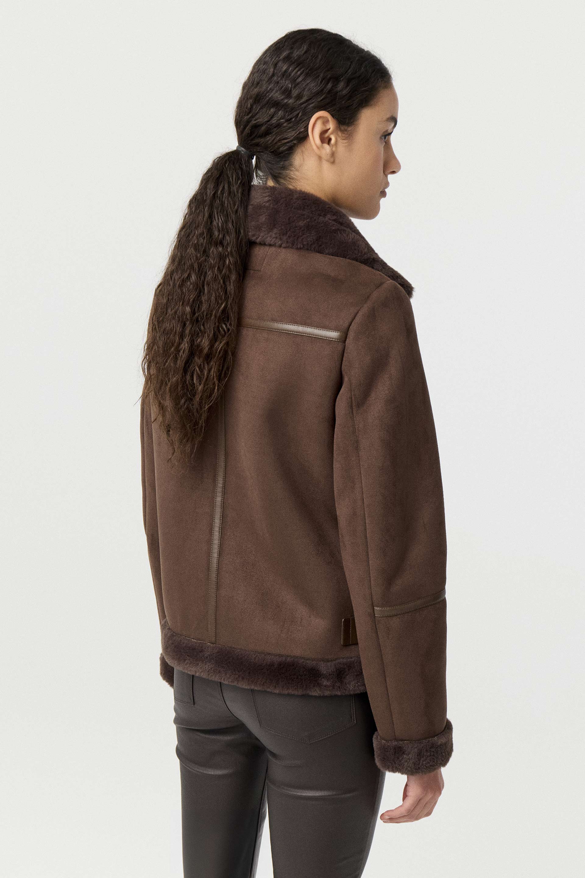 Campera de gamuza bondeada, de silueta relajada y manga larga. Posee broches y cierres metálicos personalizados con logo MKV en acceso y bolsillos. Su interior está forrado con piel sintética al tono que le aporta tanto calidez como confort. Un abrigo de tendencia, fácil de combinar tanto para el día como para la noche.