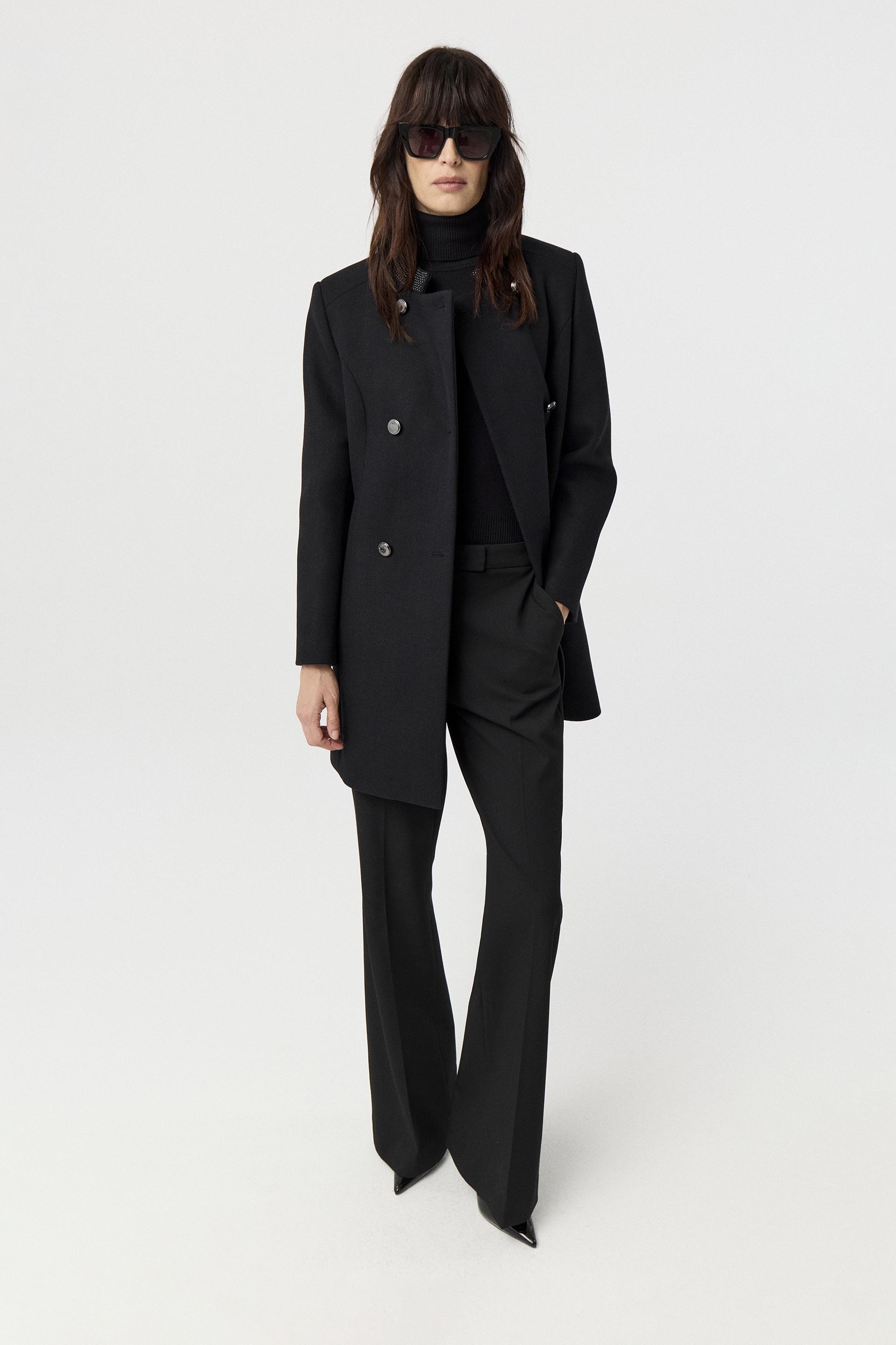 Tapado de paño de lana, de silueta entallada, cruzado y manga larga. Posee botones metálicos personalizados MKV y detalle de hotfix en el cuello. Su interior está forrado en acetato diagonal, lo que aporta mayor estructura a la prenda. Un tapado clásico, pero con un twist que lo hace especial. Ideal para componer looks elegantes.