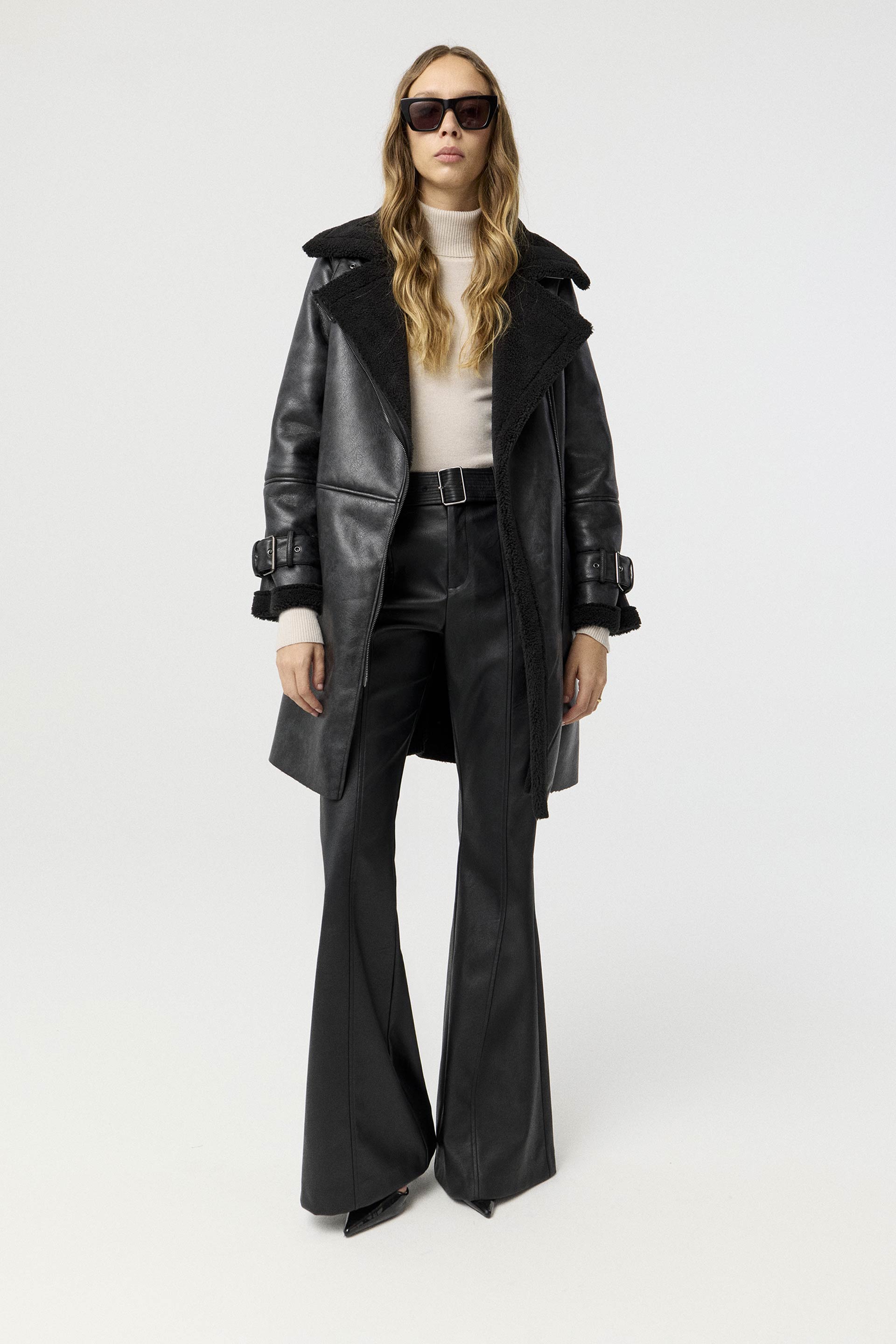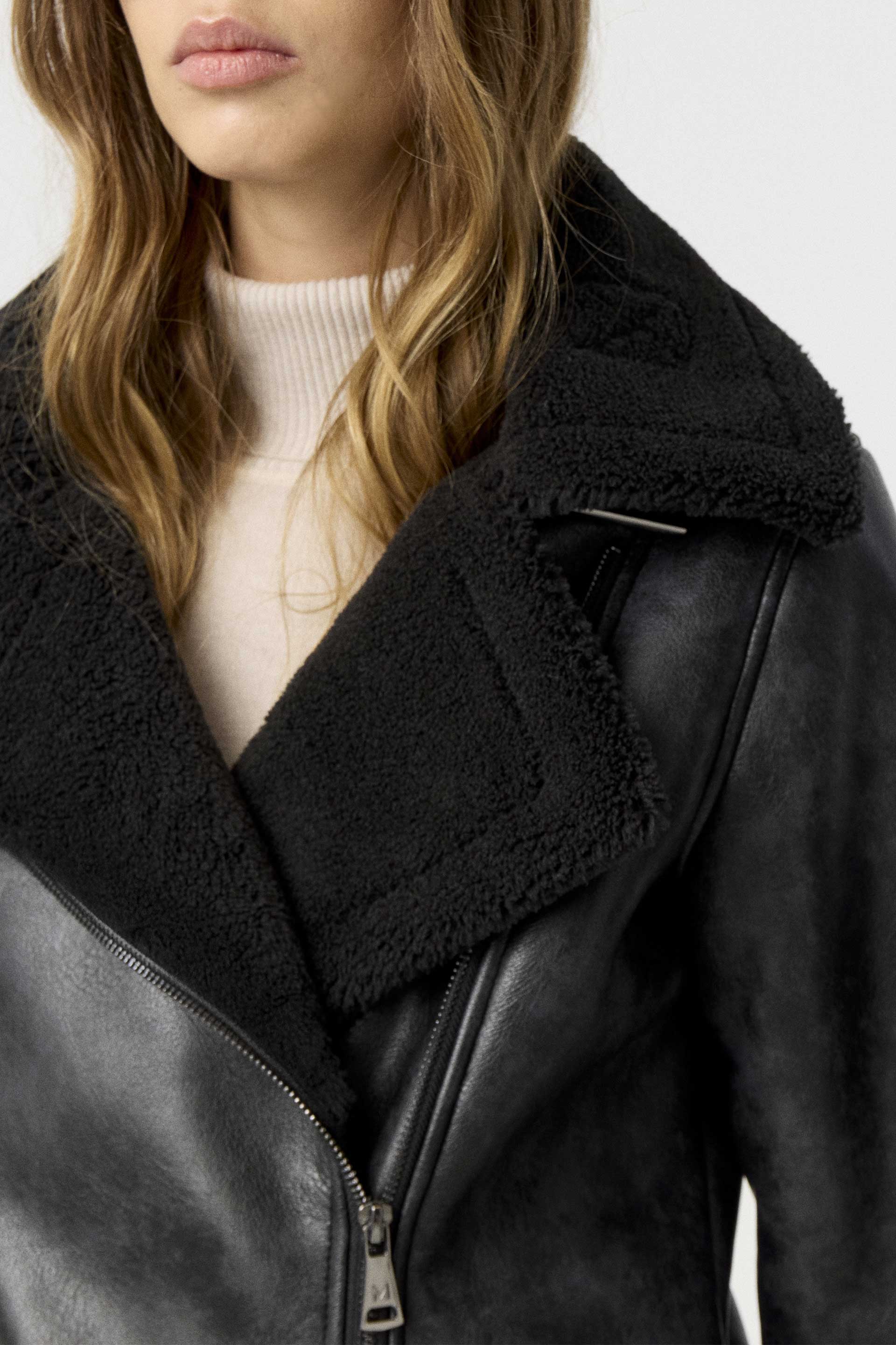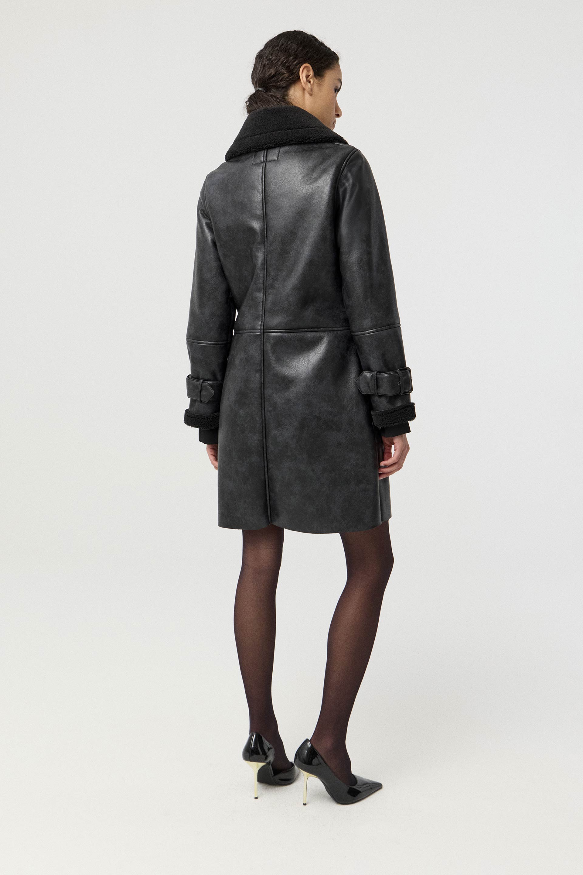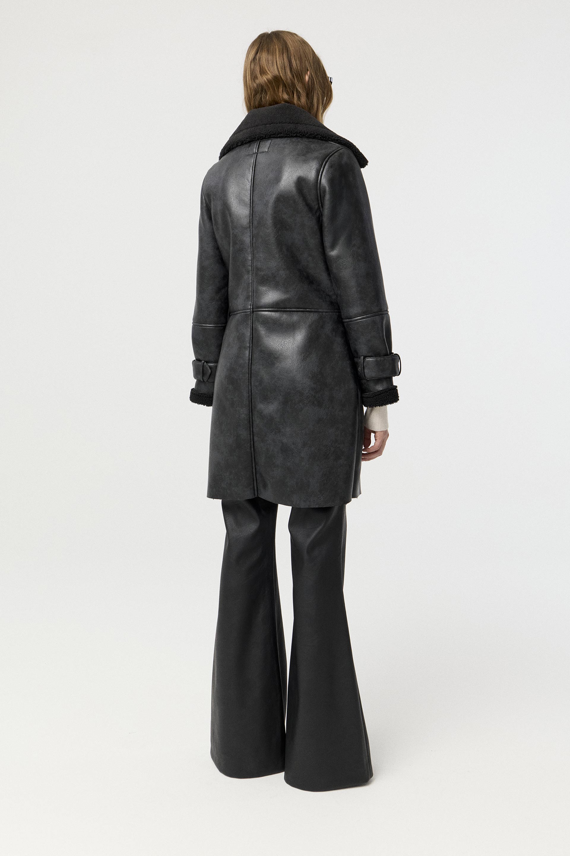 Tapado biker efecto cuero bondeado gastado, de silueta entallada y manga larga. Posee acceso y bolsillos delanteros con cierres metálicos personalizados MKV. Su género le aporta una dosis extra de abrigo, ideal para los días más fríos, y su acabado gastado lo convierte en una prenda moderna y versátil, perfecta tanto para salidas nocturnas como para looks de oficina.