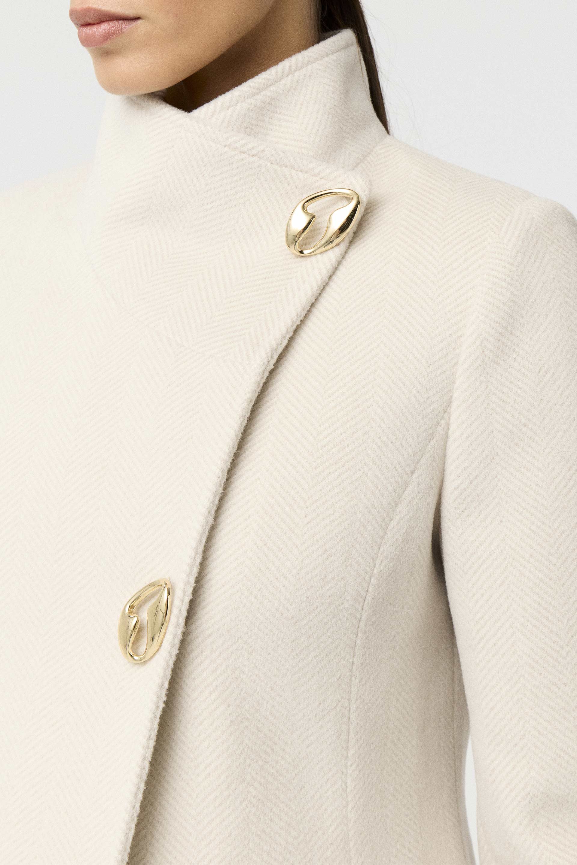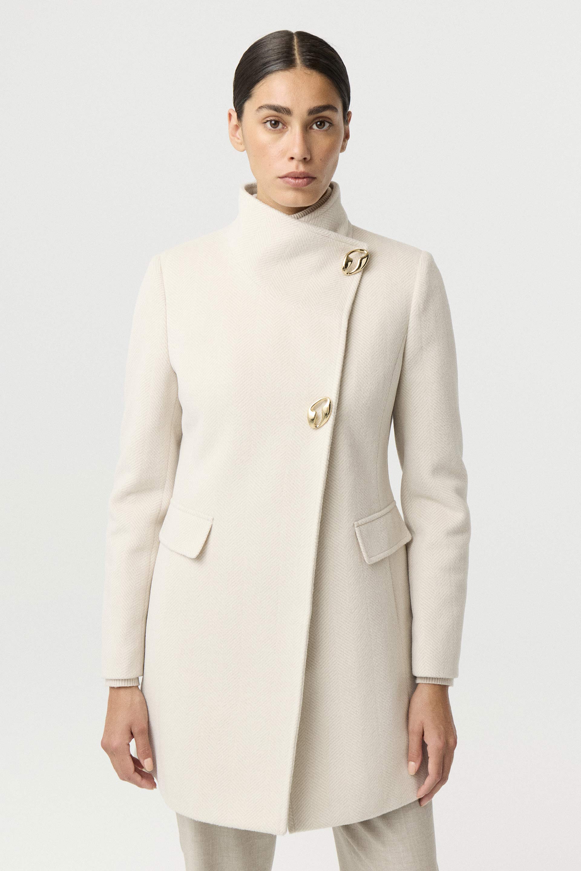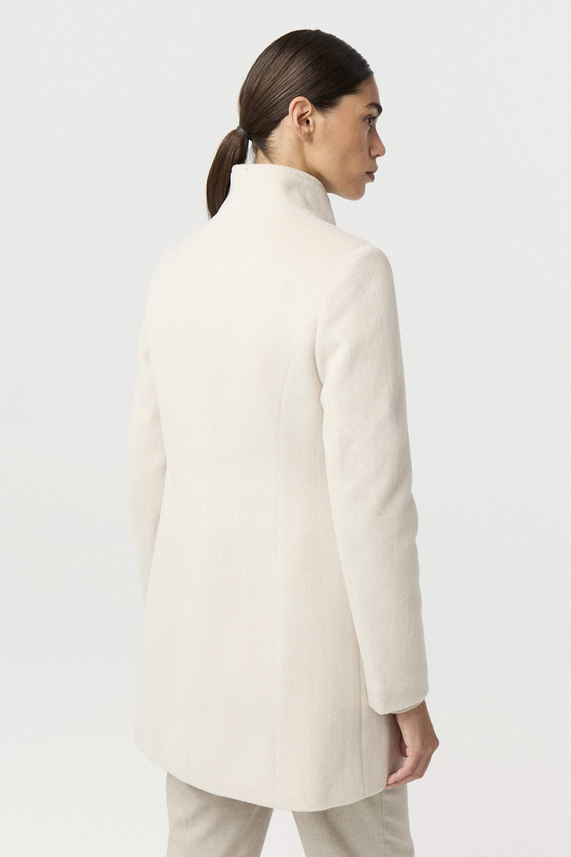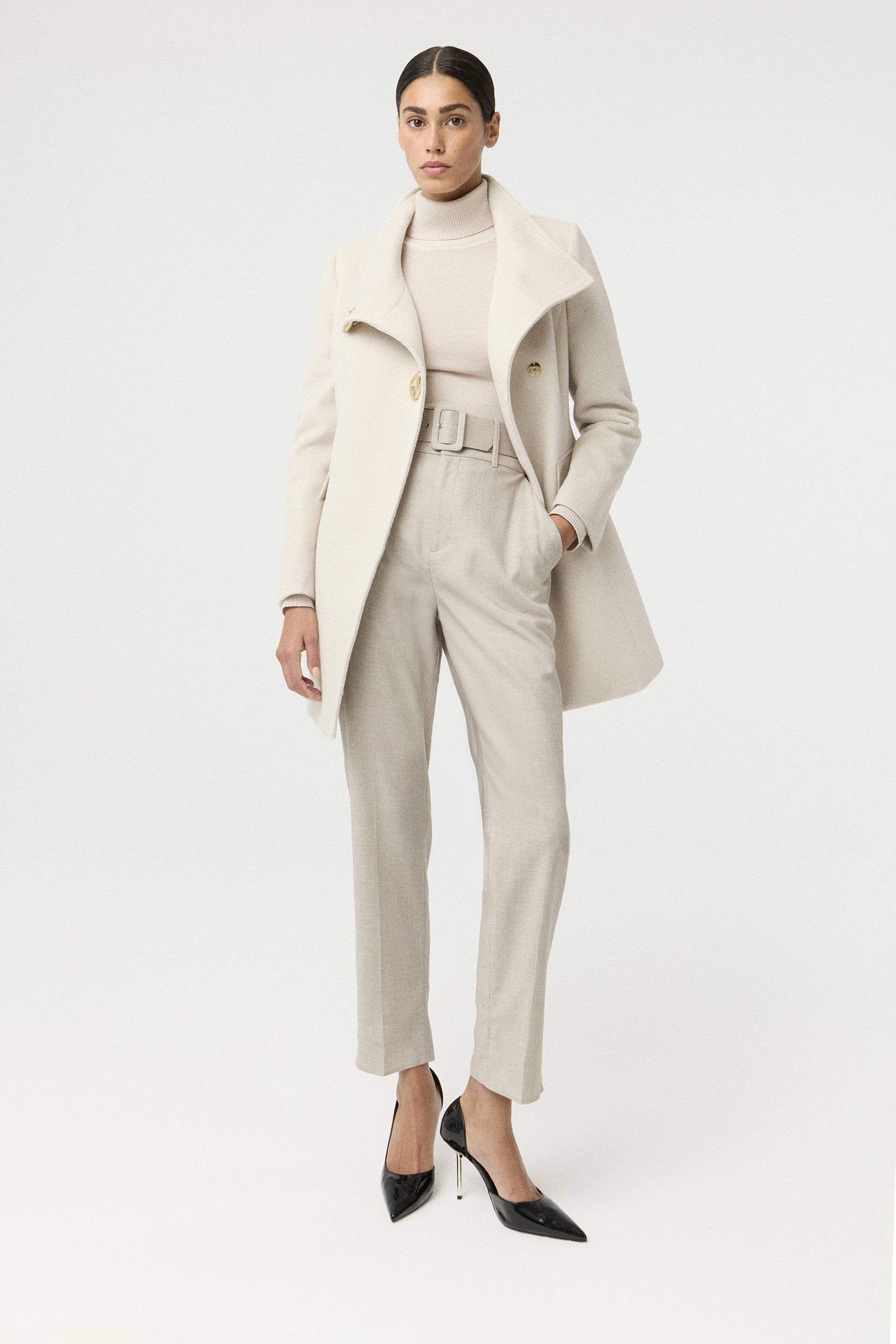 Tapado de paño melange, de silueta entallada y manga larga. Posee acceso con broches internos, detalle de avíos metálicos en el delantero y bolsillos laterales. Su interior matelaseado otorga una dosis extra de abrigo. Un tapado fácil de combinar, ideal para la oficina.