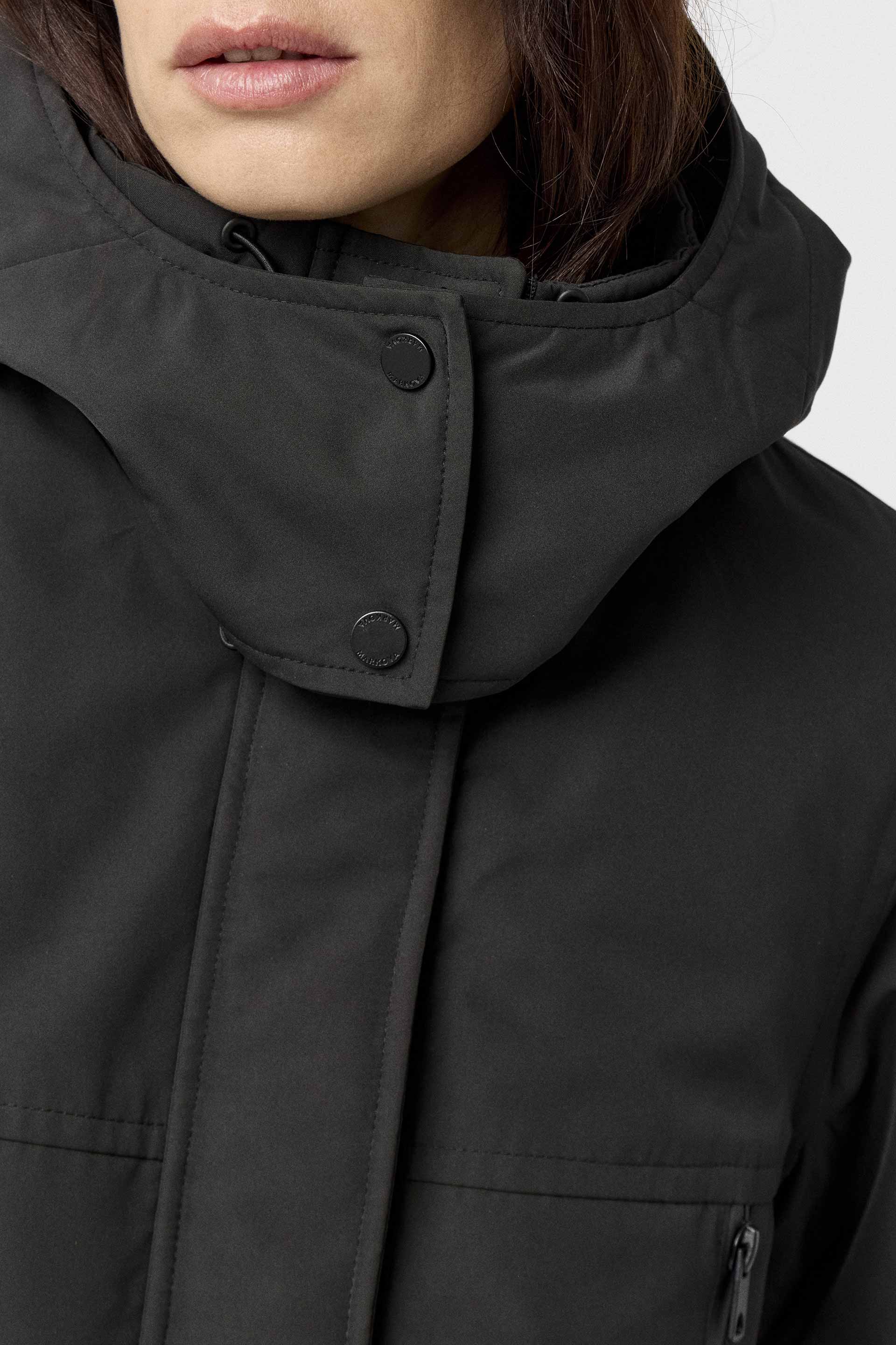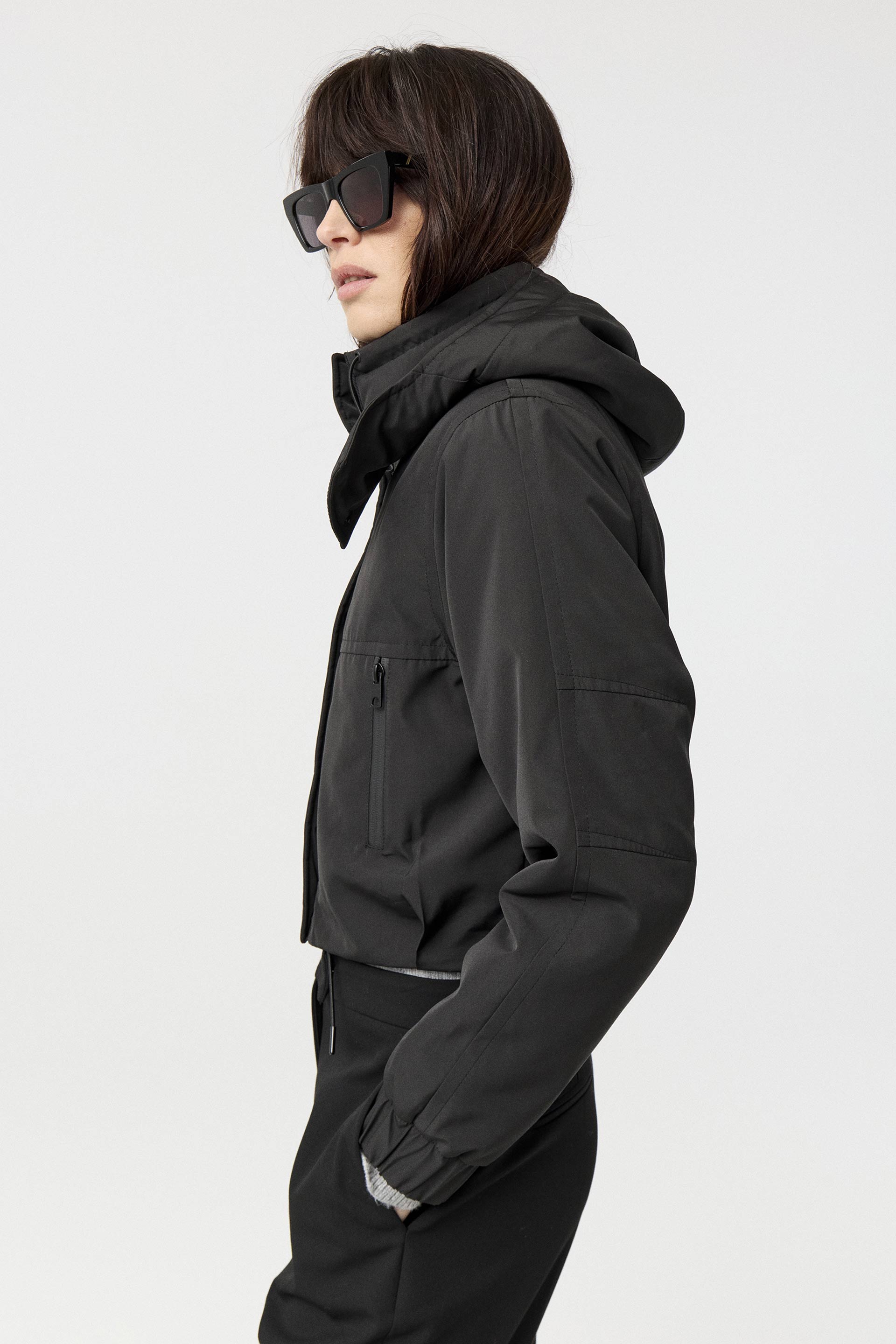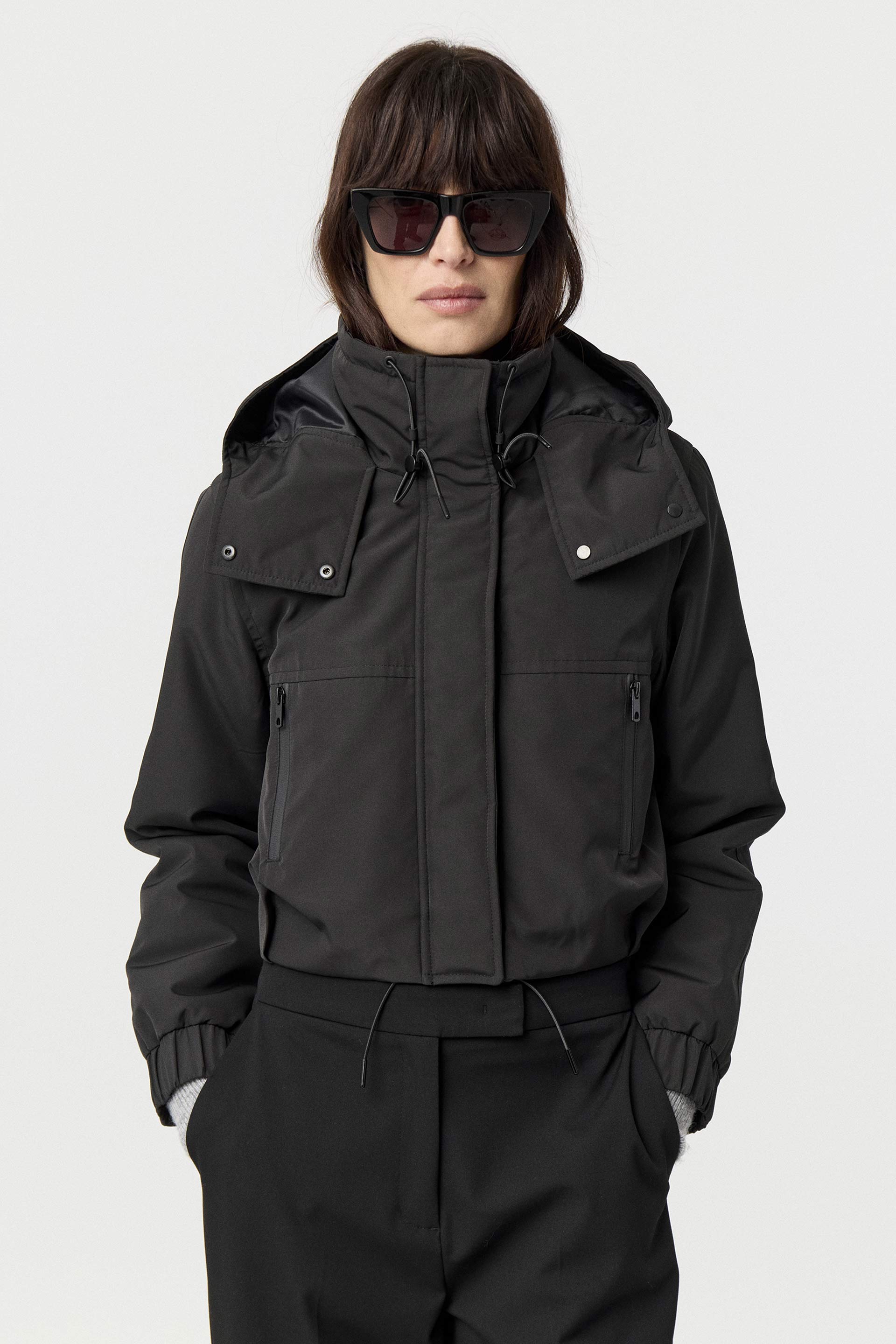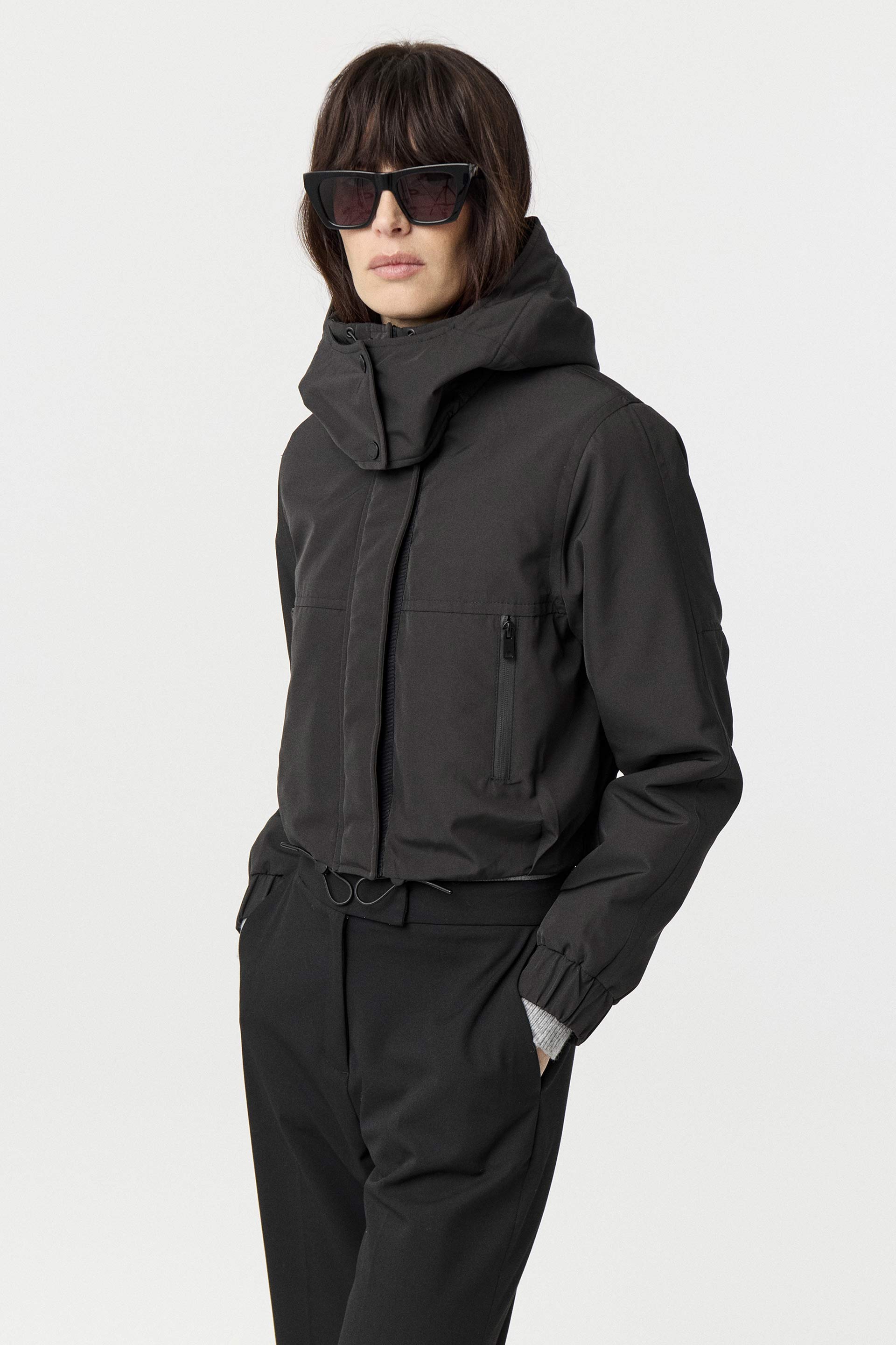 Campera corta de microfibra repelente al agua, con interior matelaseado, silueta relajada y mangas largas. Posee capucha, broches y cierres impermeables. Su largo modular corto, junto con el género y la silueta, la convierten en un ítem canchero y moderno que eleva cualquier look.