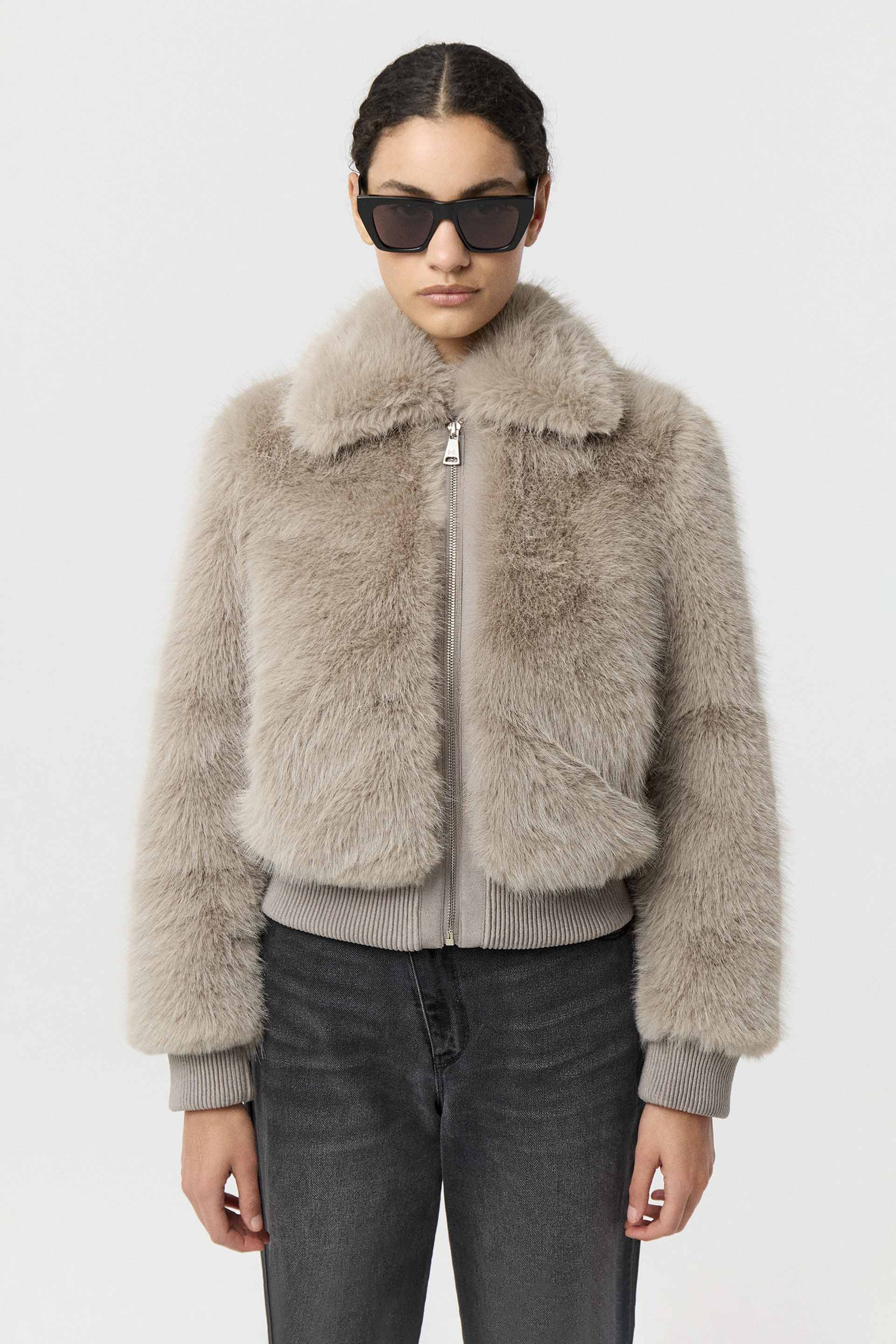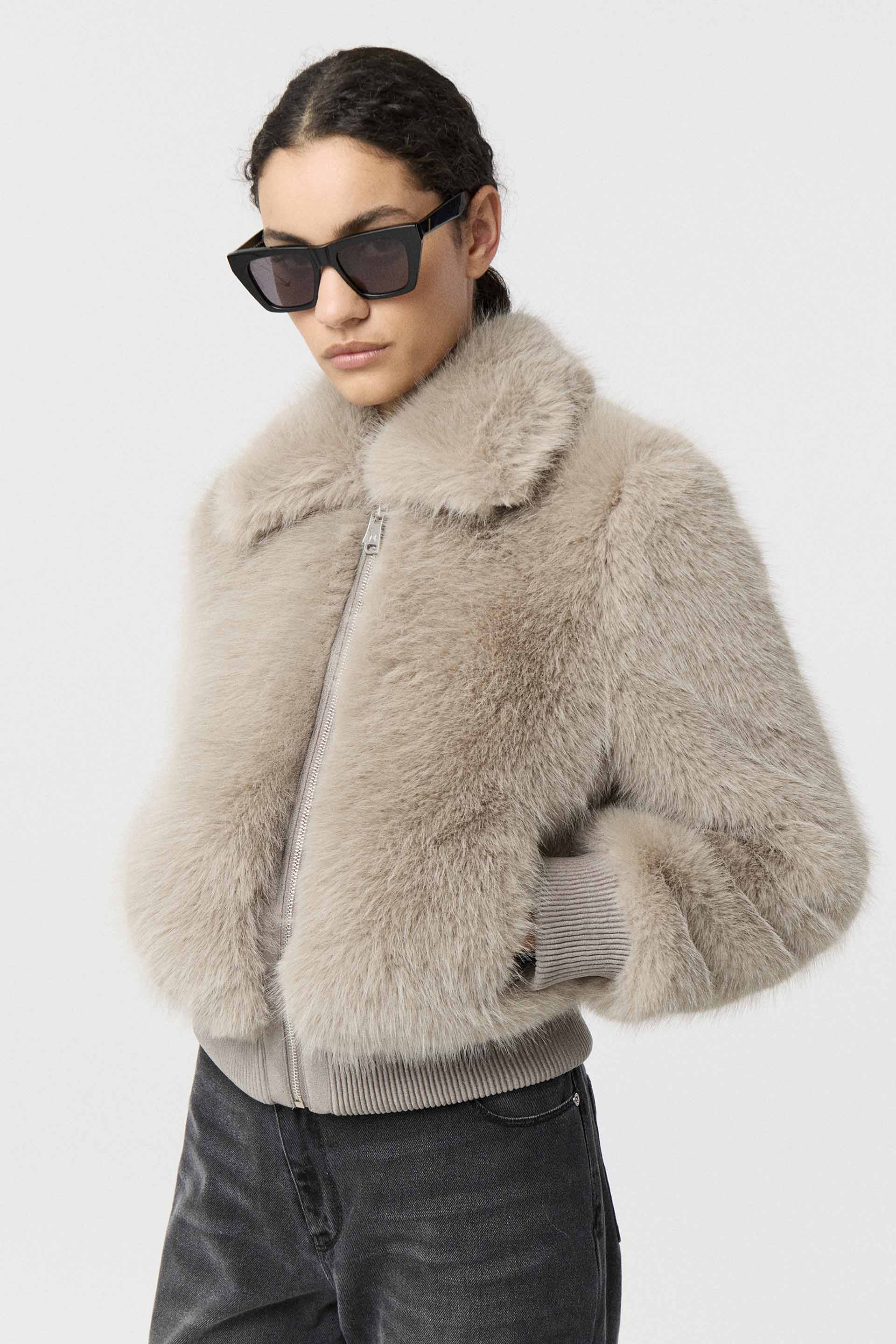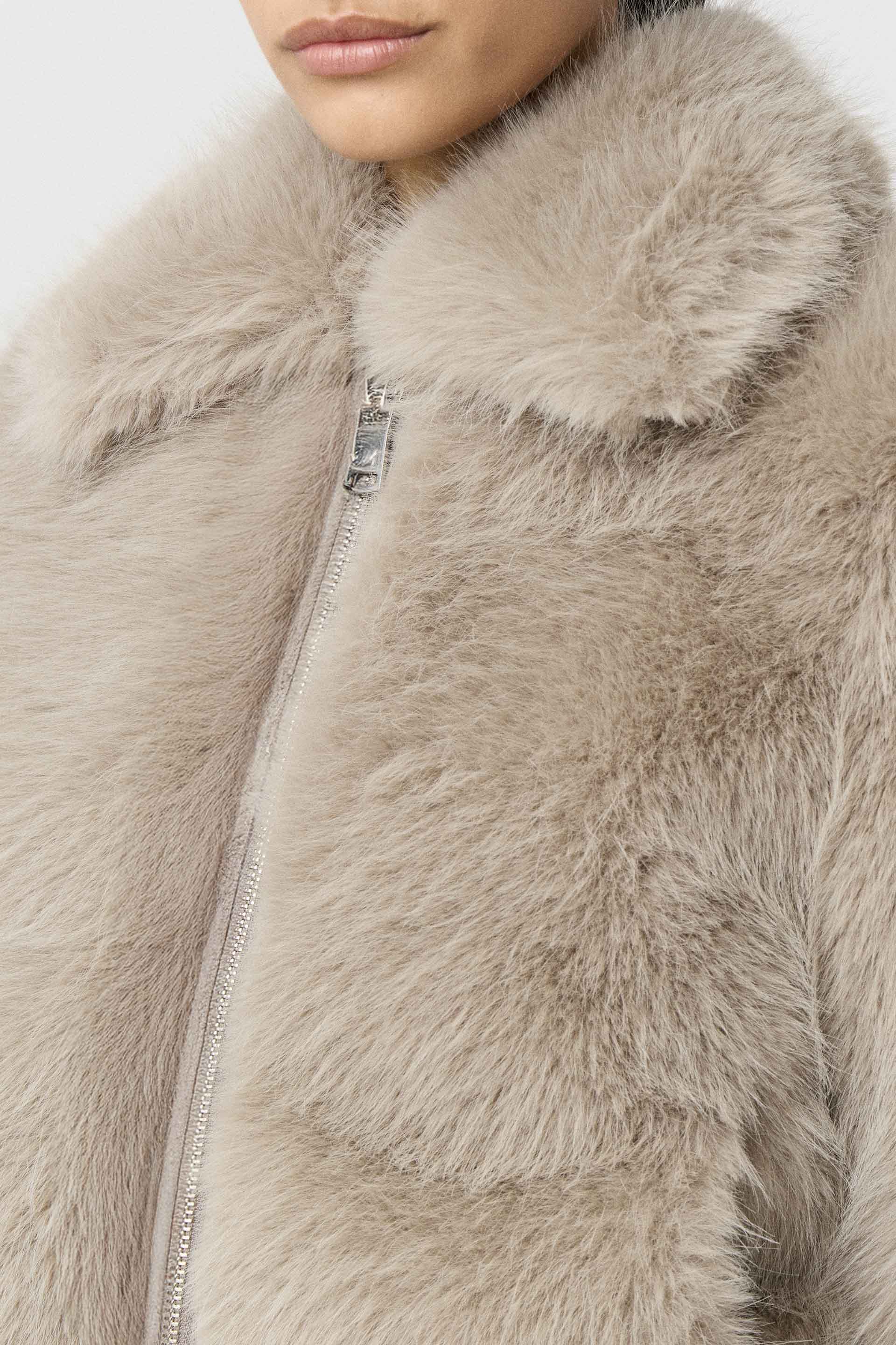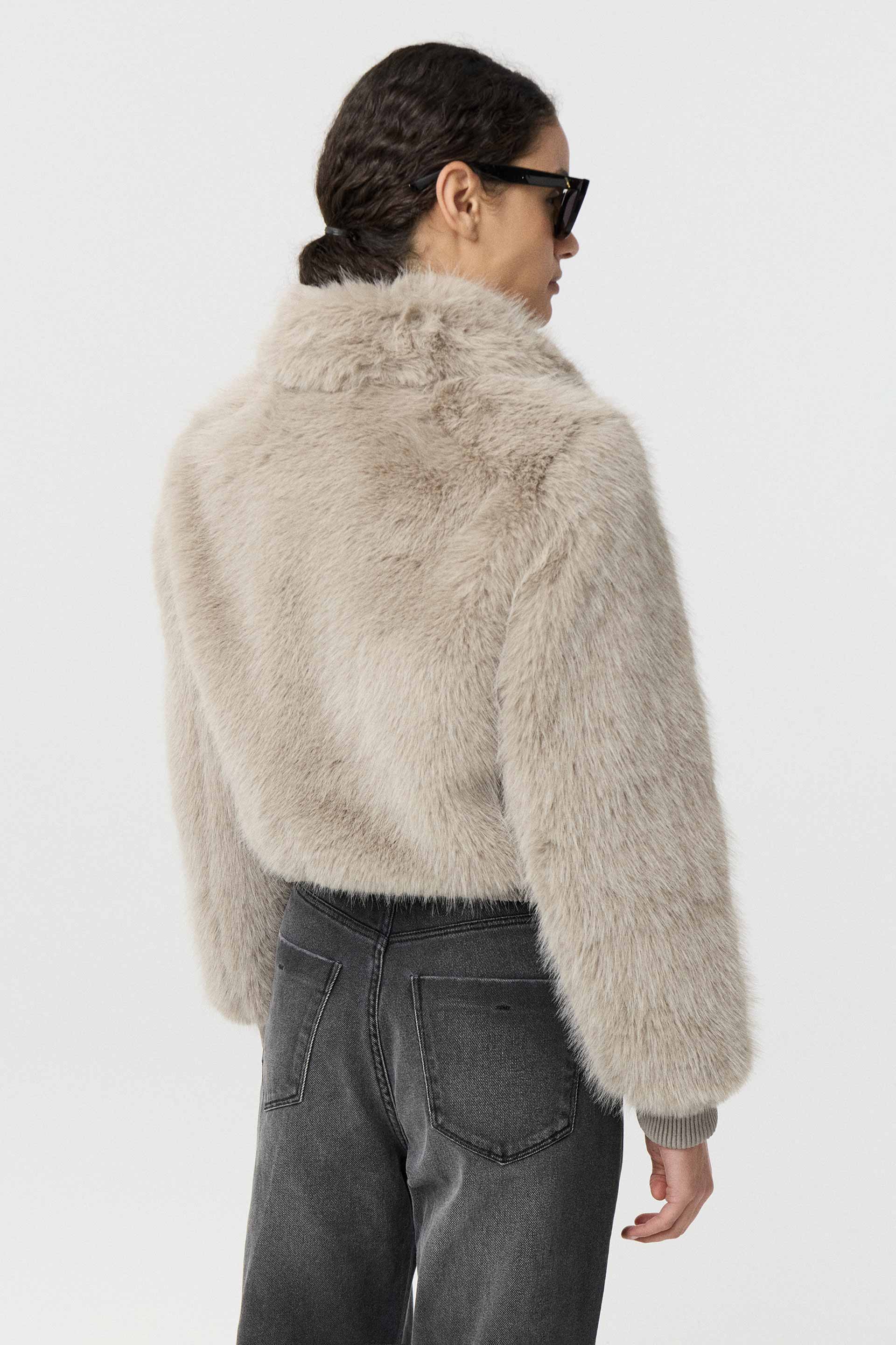 Campera corta efecto piel, de silueta relajada y manga larga. Posee acceso central con cierre metálico MKV, bolsillos laterales y puños en tela combinación gamuza. Su diseño, su género y su silueta la convierten en un ítem de absoluta tendencia. Ideal para una salida de noche.