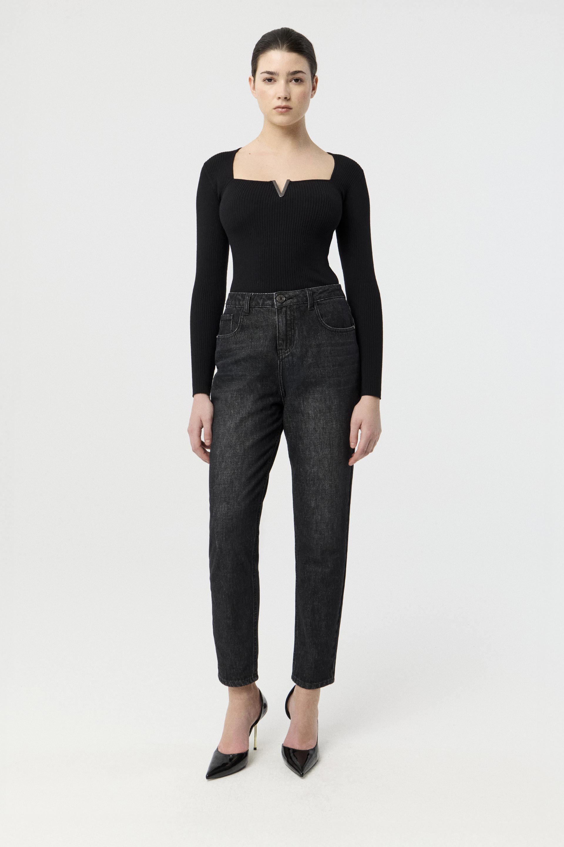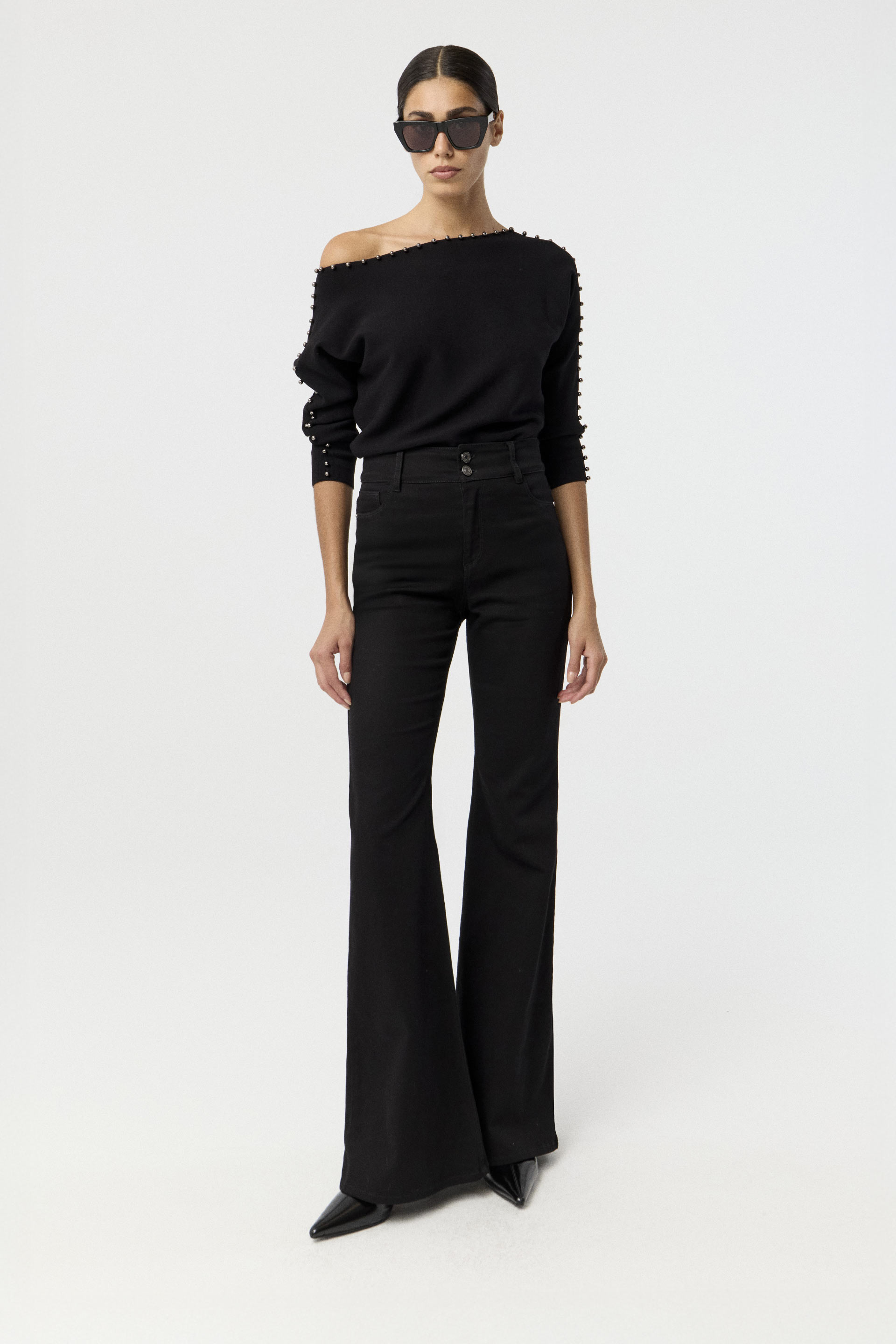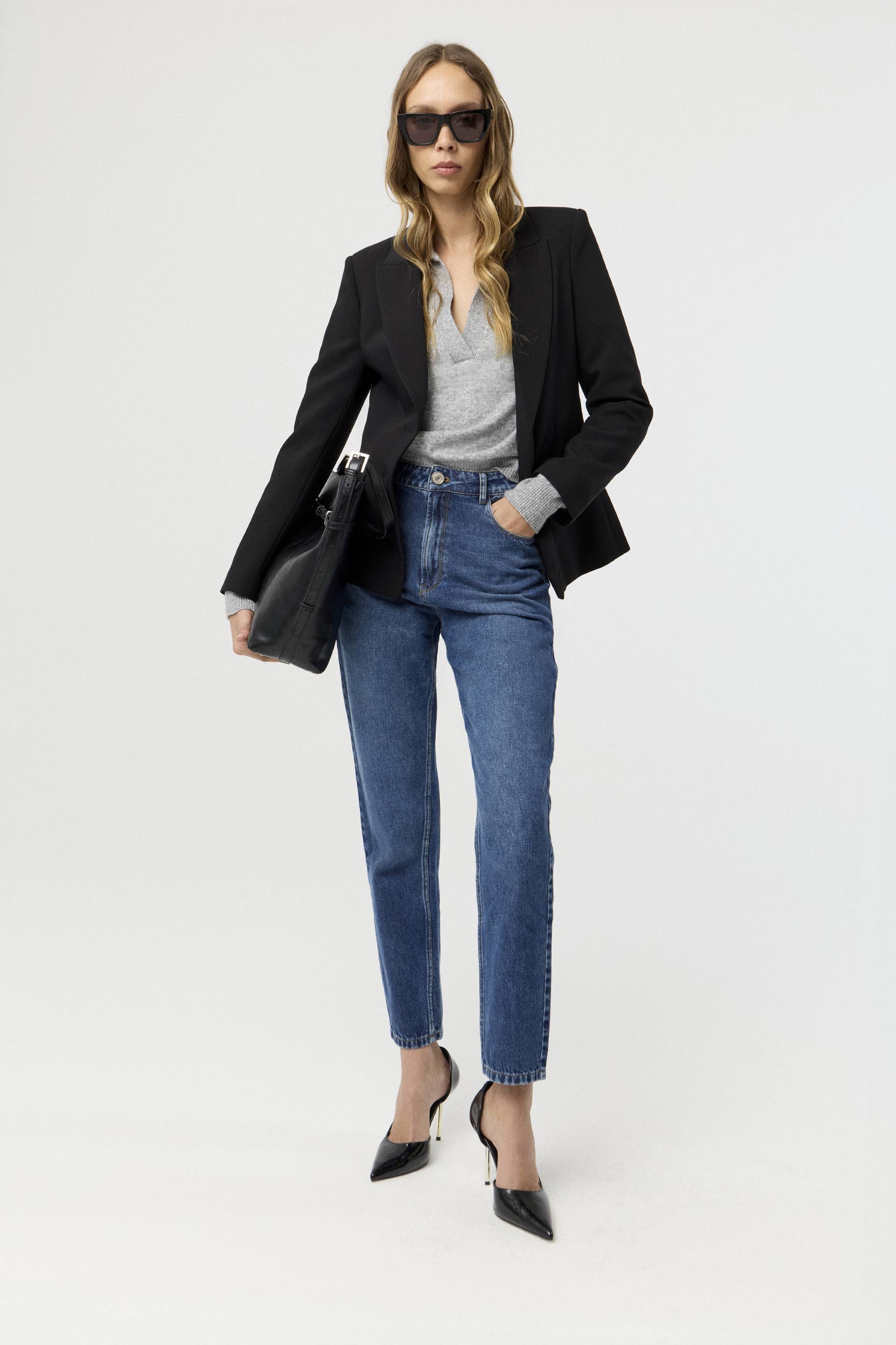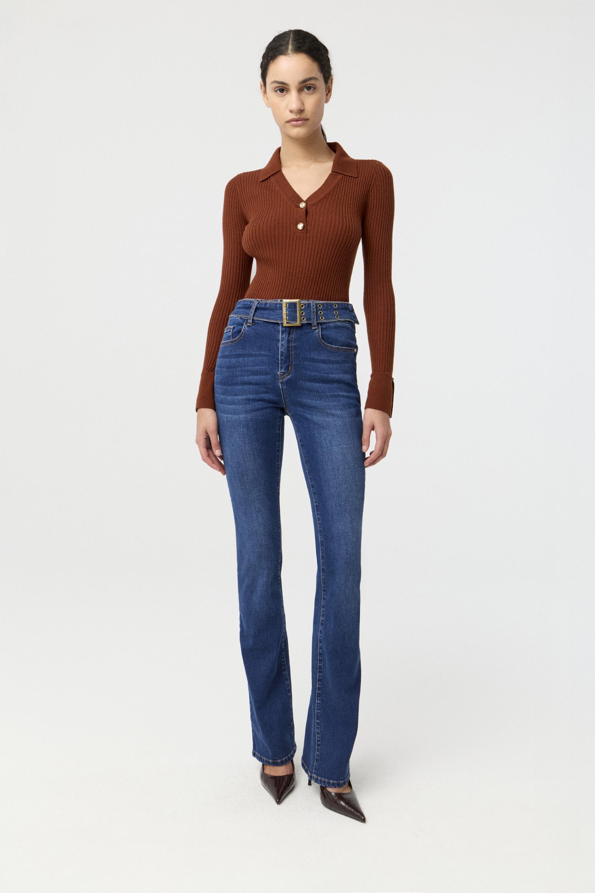 La modelo tiene contorno de busto 85 y usa talle 40.