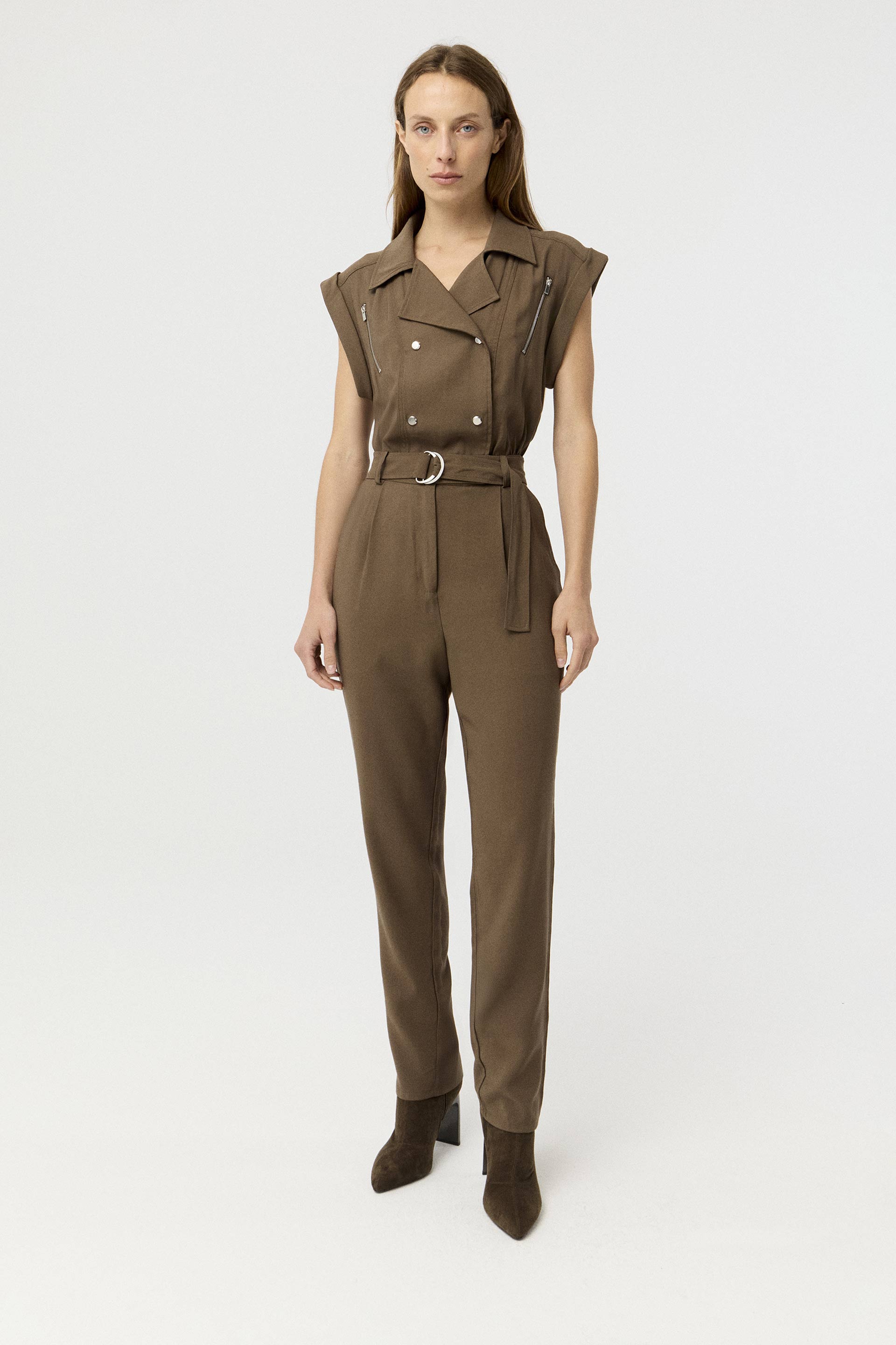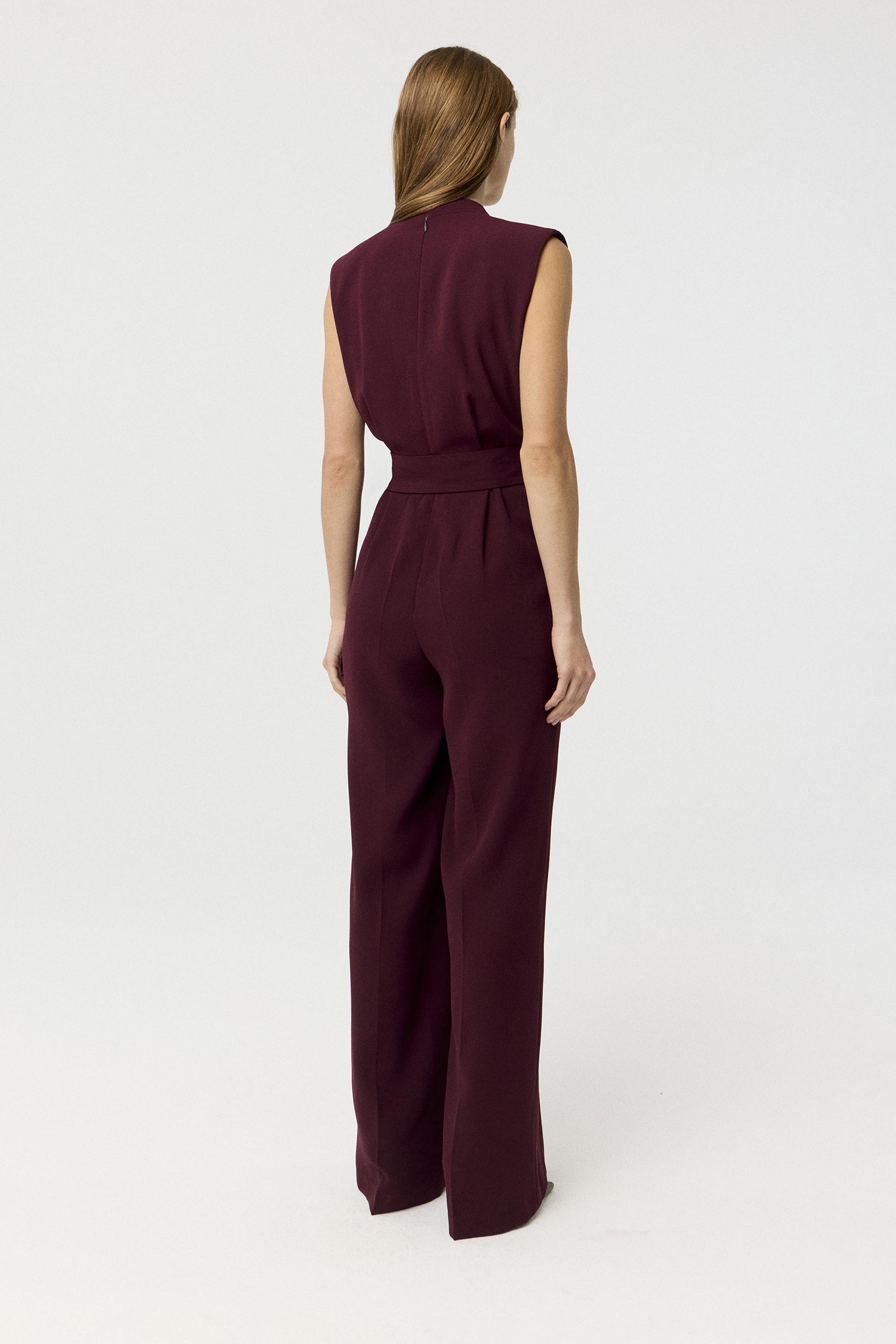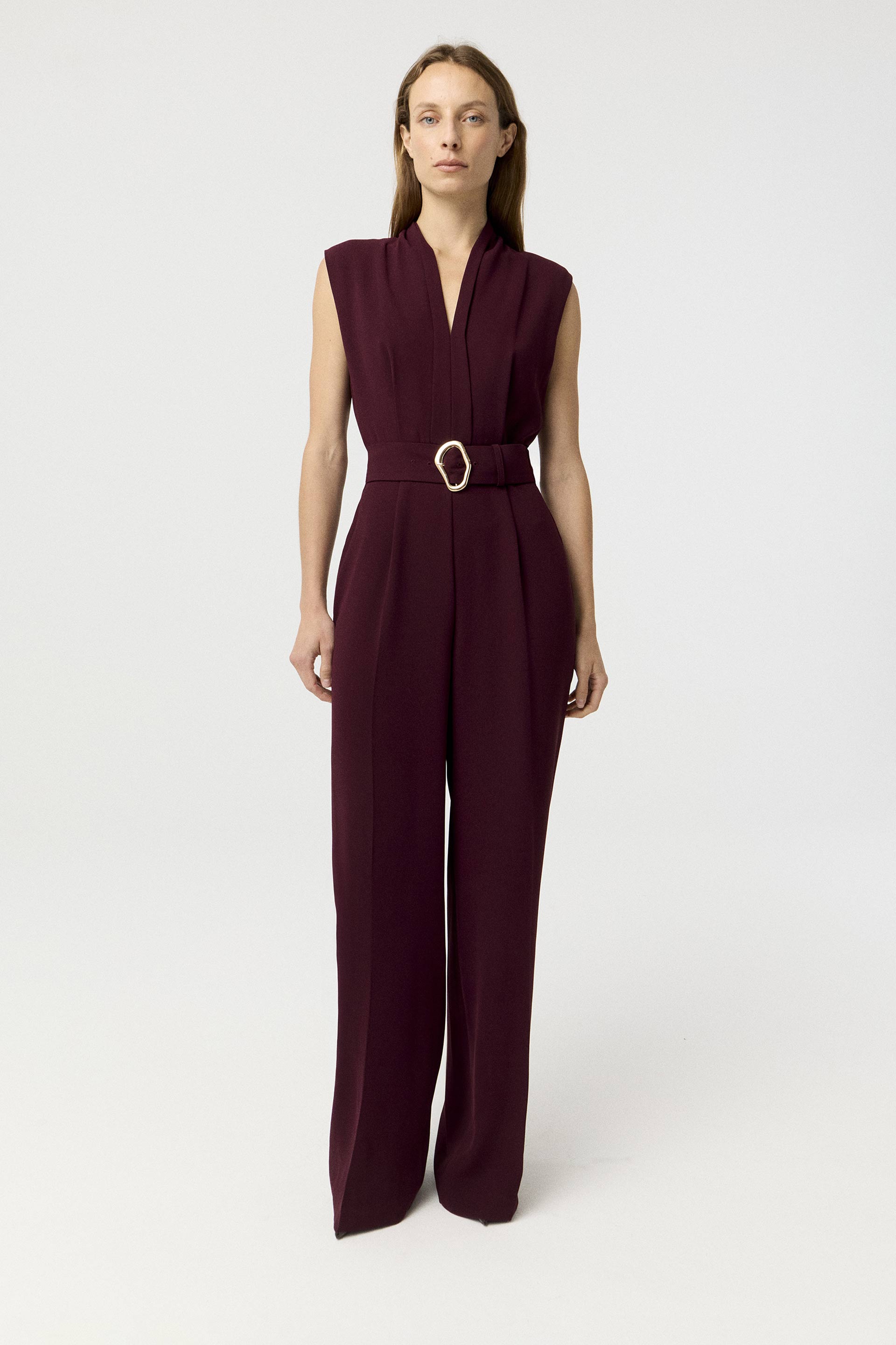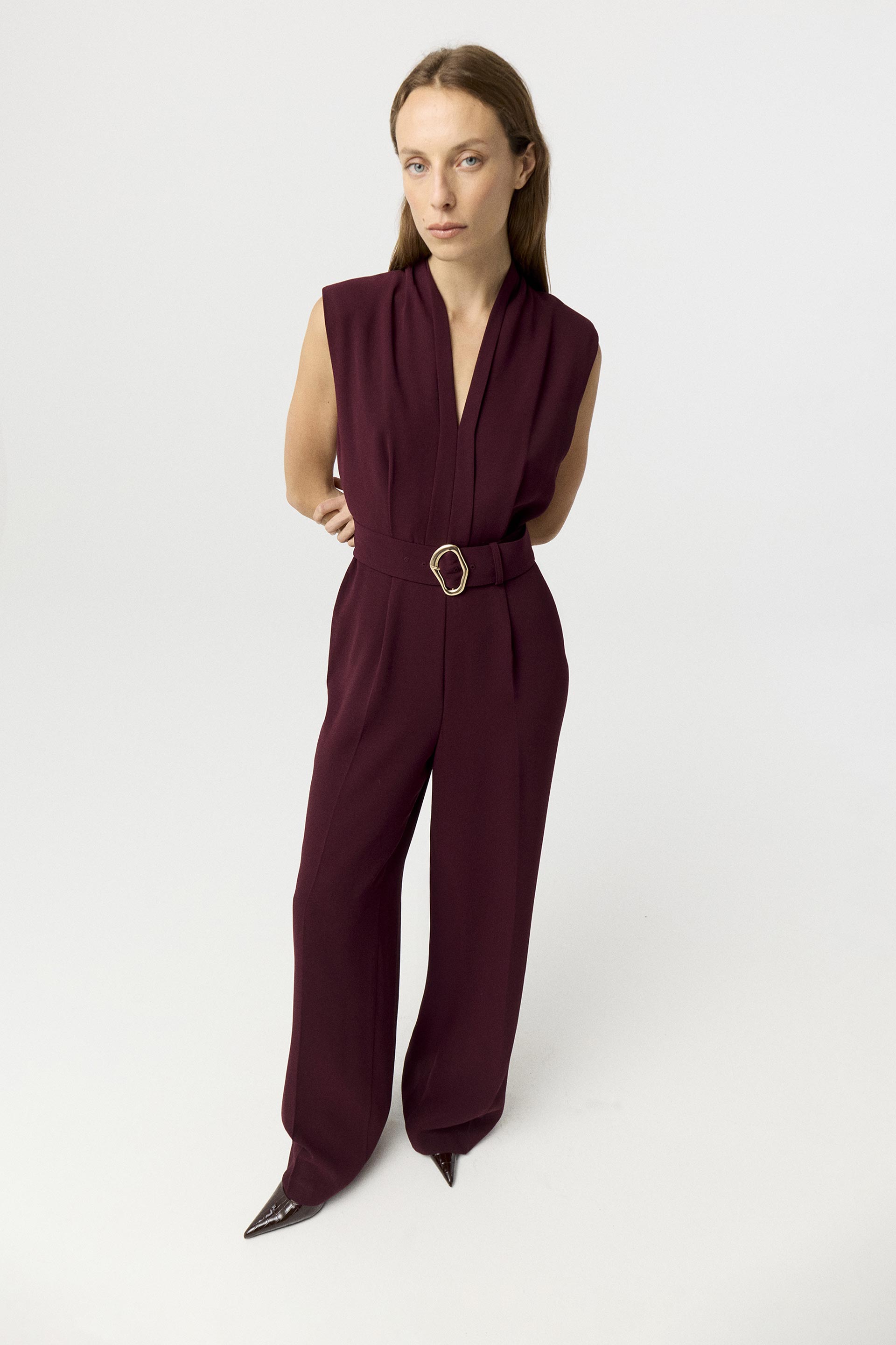 Mono de crepe, de silueta entallada y pierna ancha fluida. Posee escote en V con doble tabla y cinturón con hebilla metálica para un mayor ajuste en cintura. Acceso por espalda con cierre invisible. Un ítem sofisticado y elegante, ideal tanto para la oficina como para un evento.