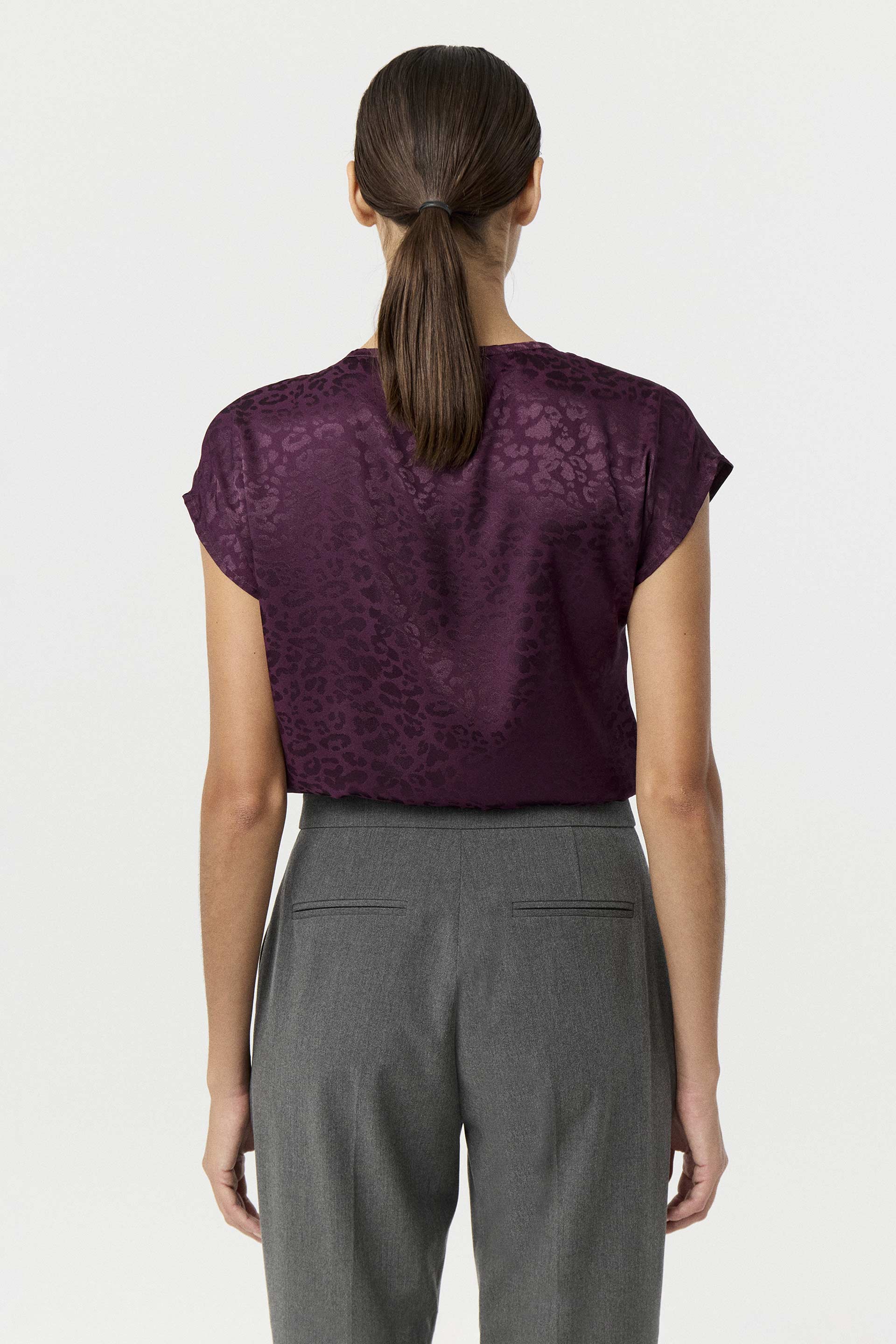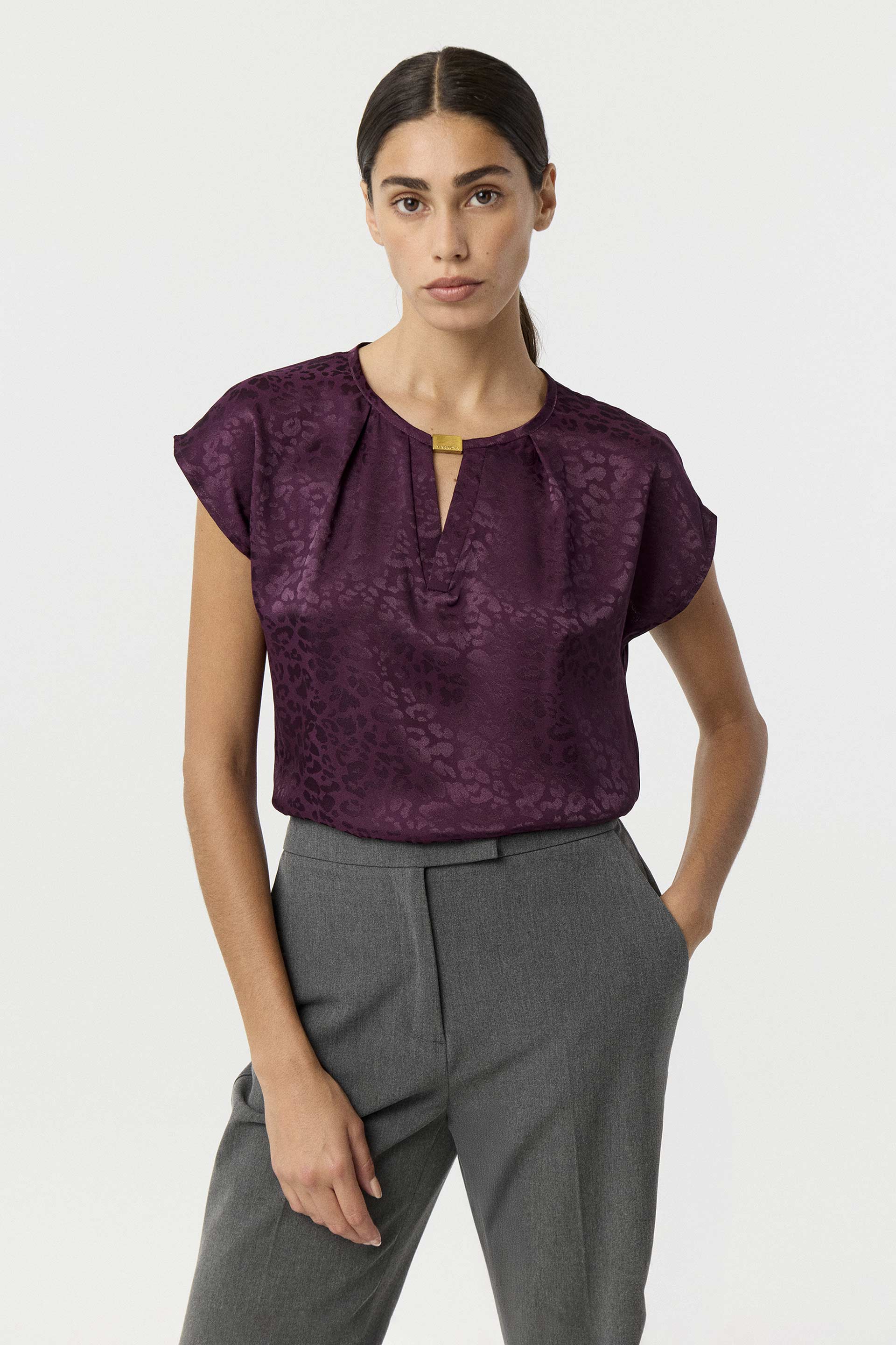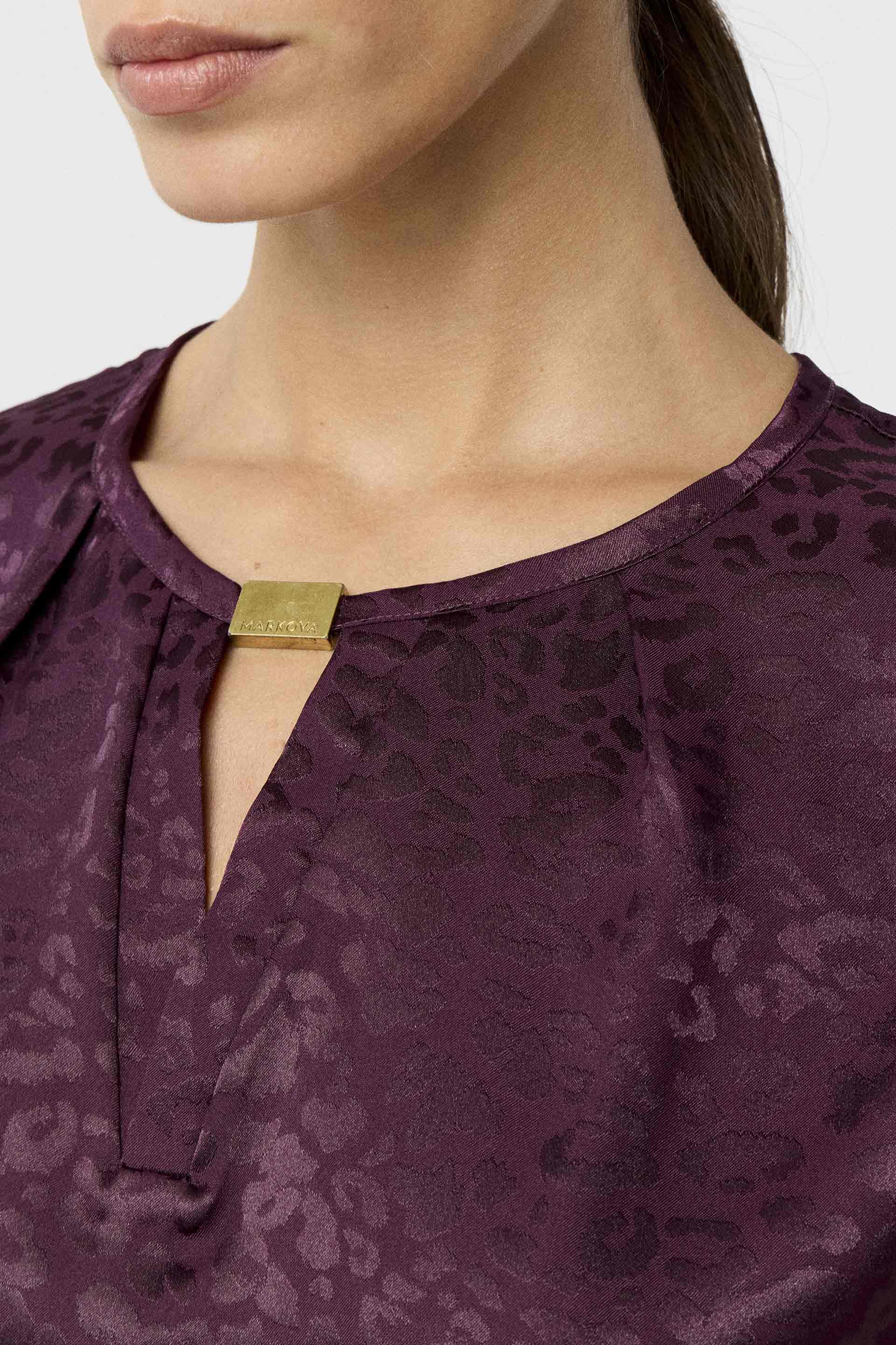 Blusa de jacquard de calce relajado. Hombros caídos, escote a la base con gota y chapón metálico personalizado MKV. Un comodín en un color especial, ideal para tus looks de oficina.