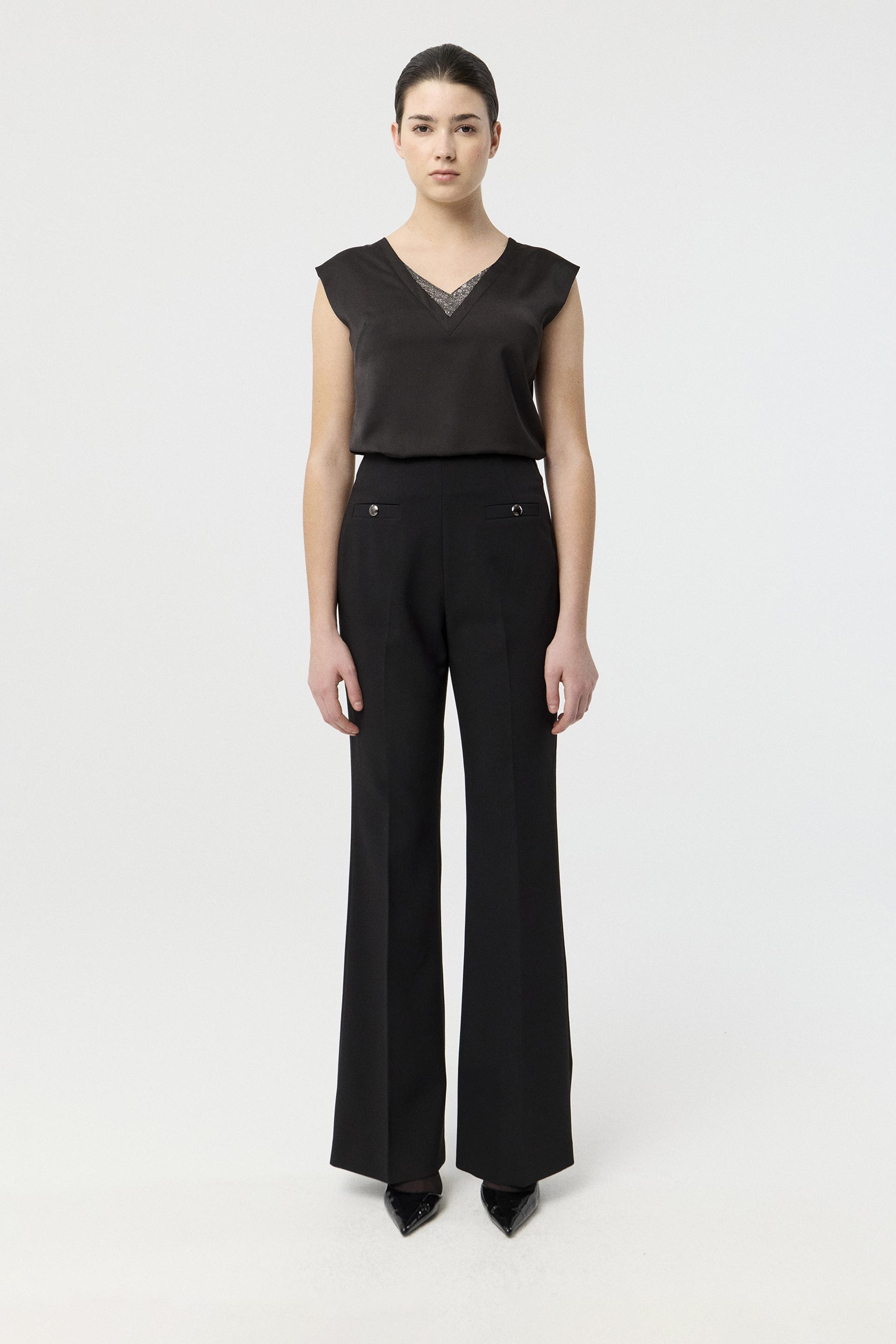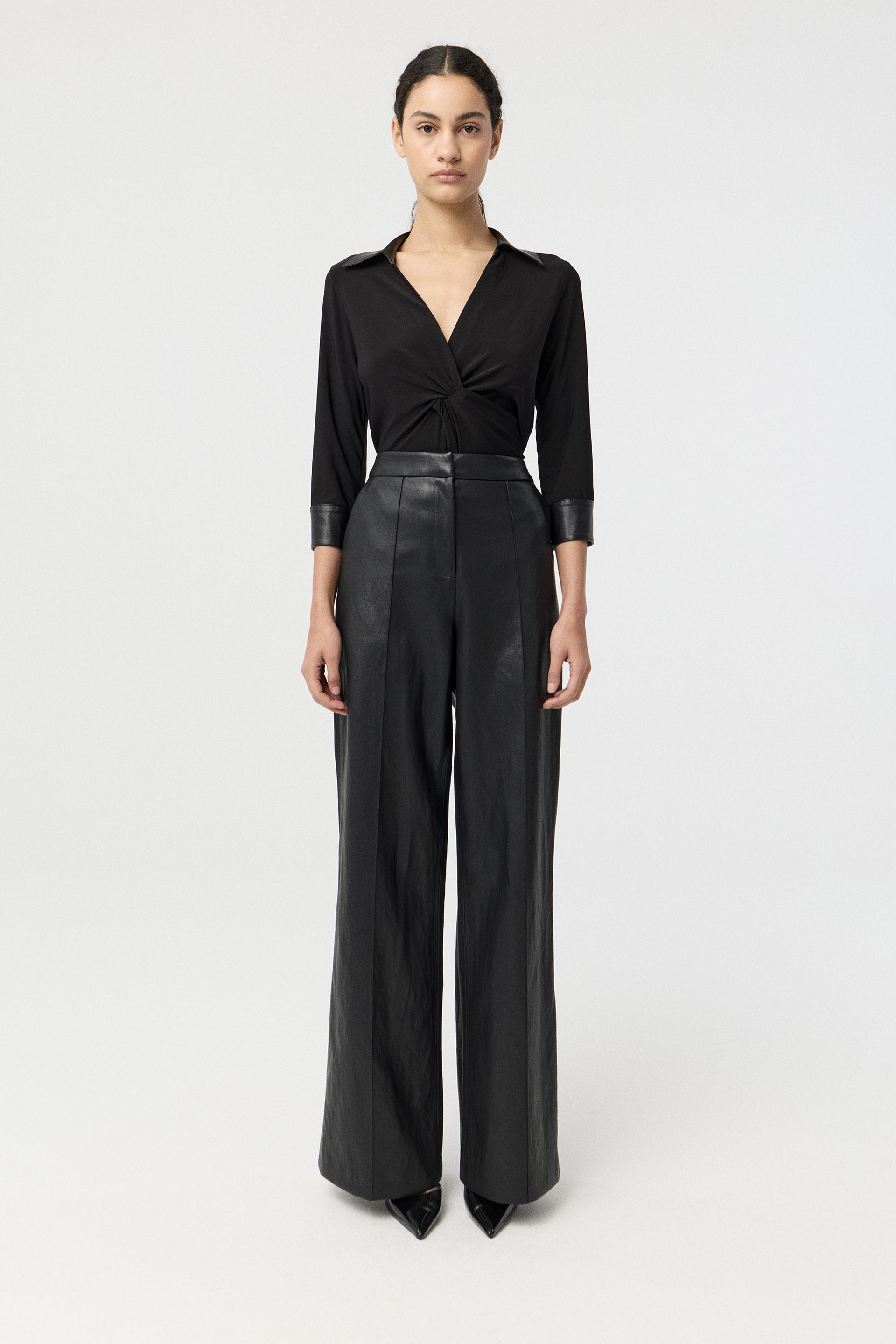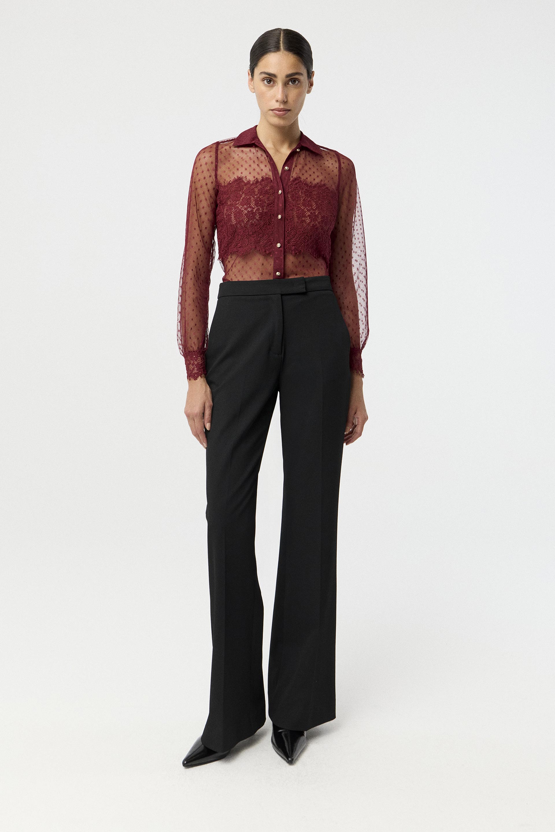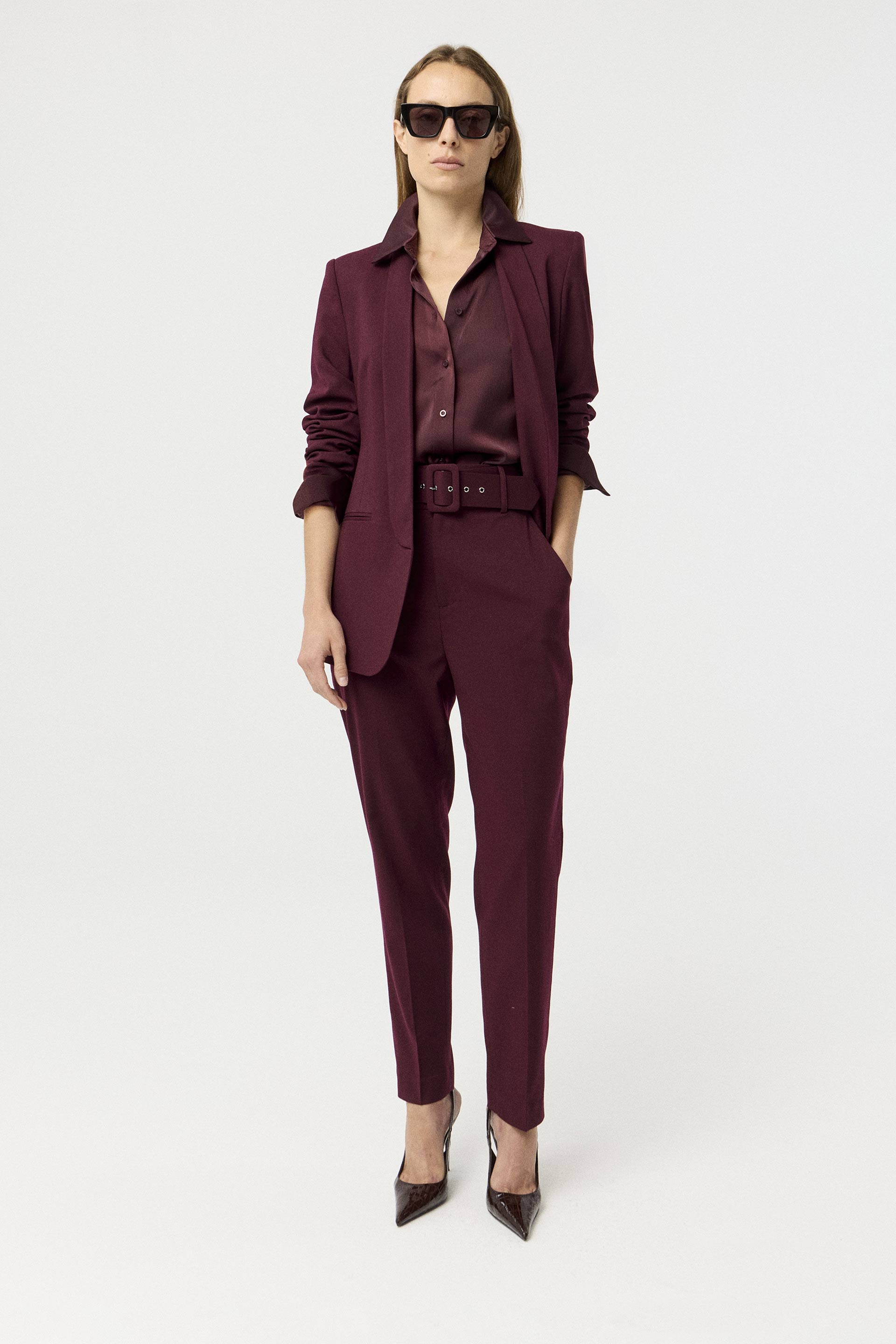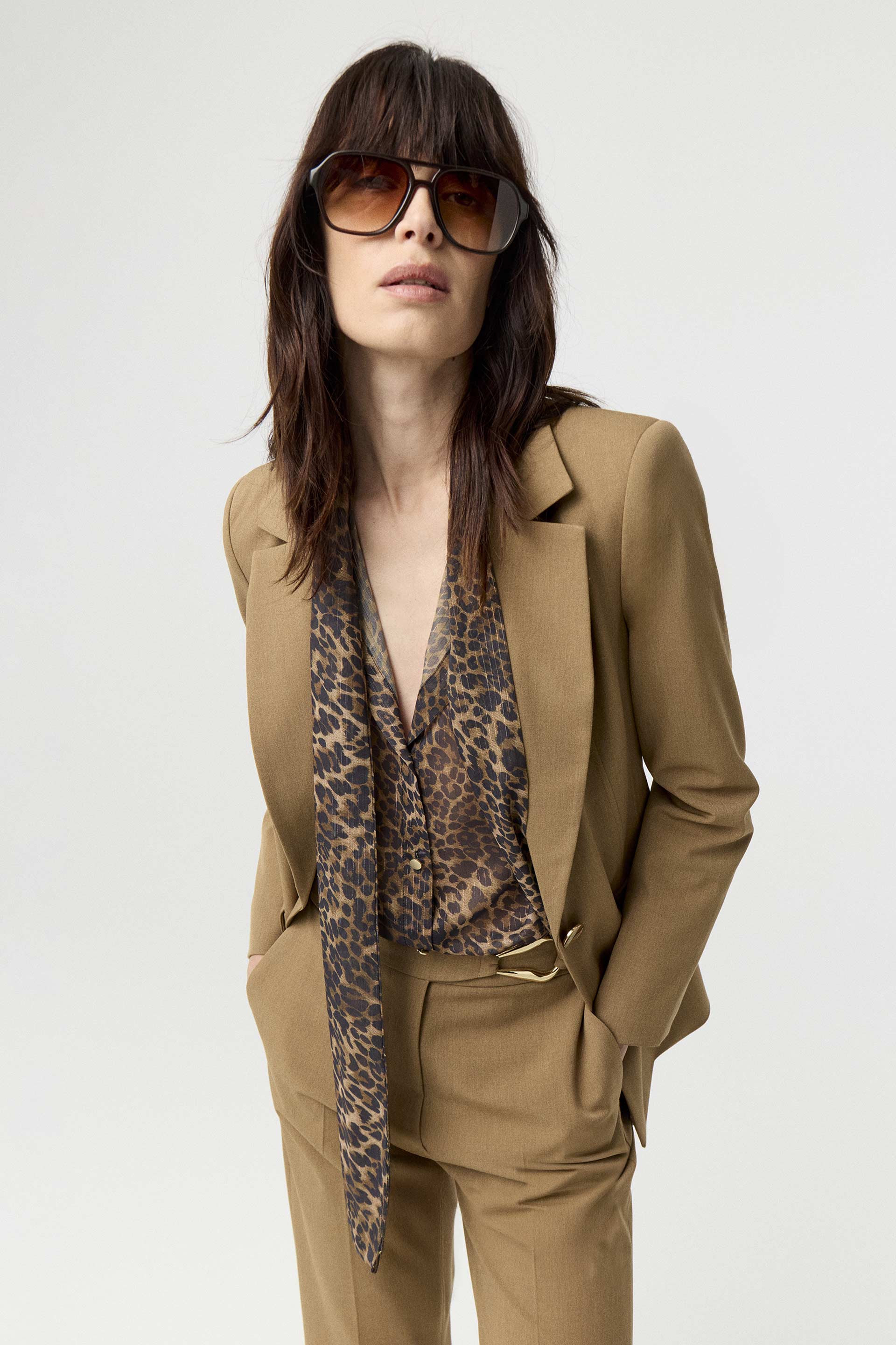 Camisa de satén texturado de calce al cuerpo. Mangas largas con puños altos, cuello camisa clásico y botones a tono. Un básico de calidad infaltable en cualquier guardarropas.