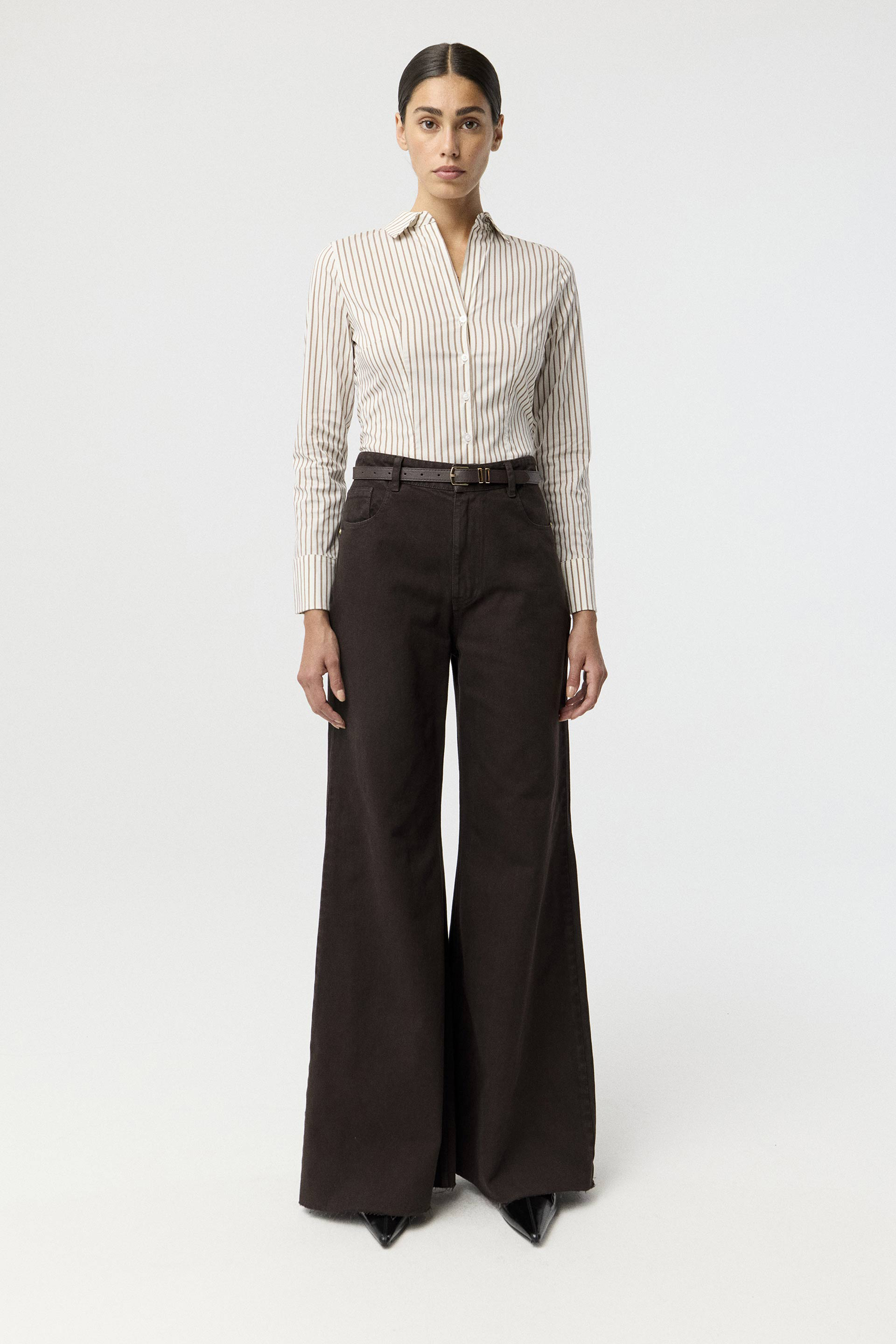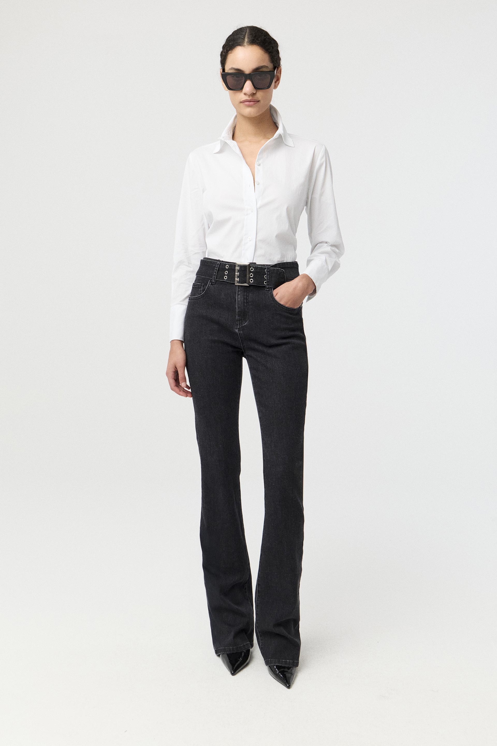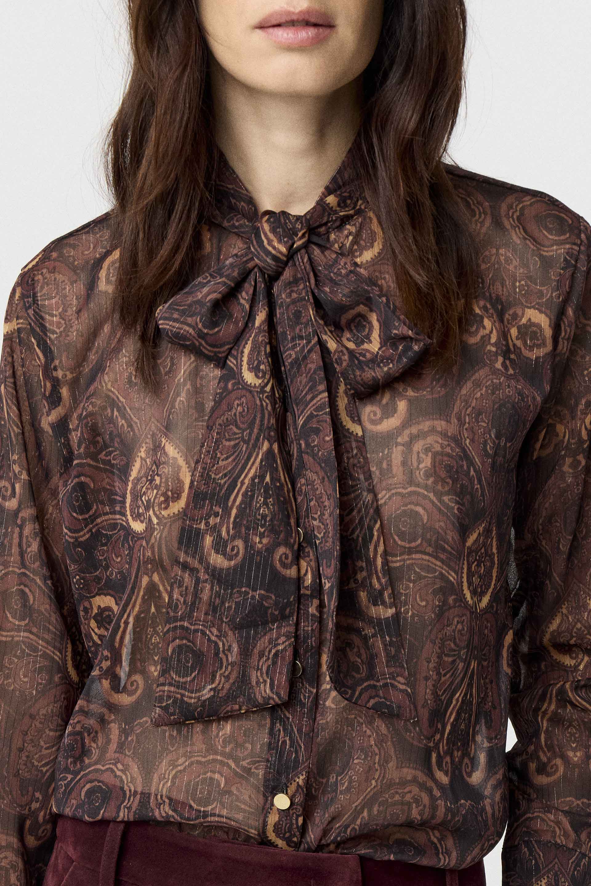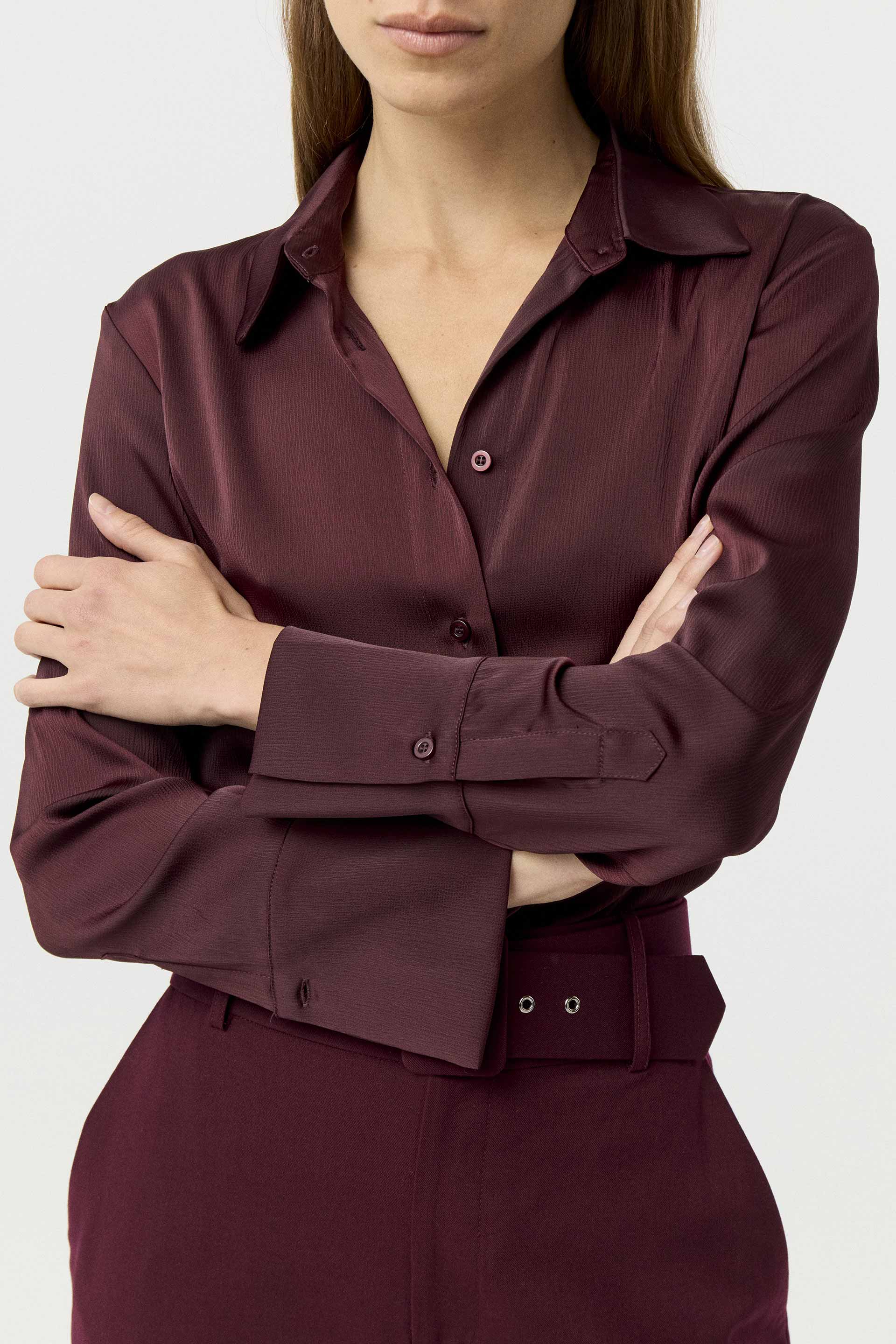 Camisa de satén opaco con estampa central, de calce relajado. Mangas largas, cuello camisa clásico y maxi print con cristales termo fusionados. Un ítem único para quienes buscan un look moderno y descontracturado.