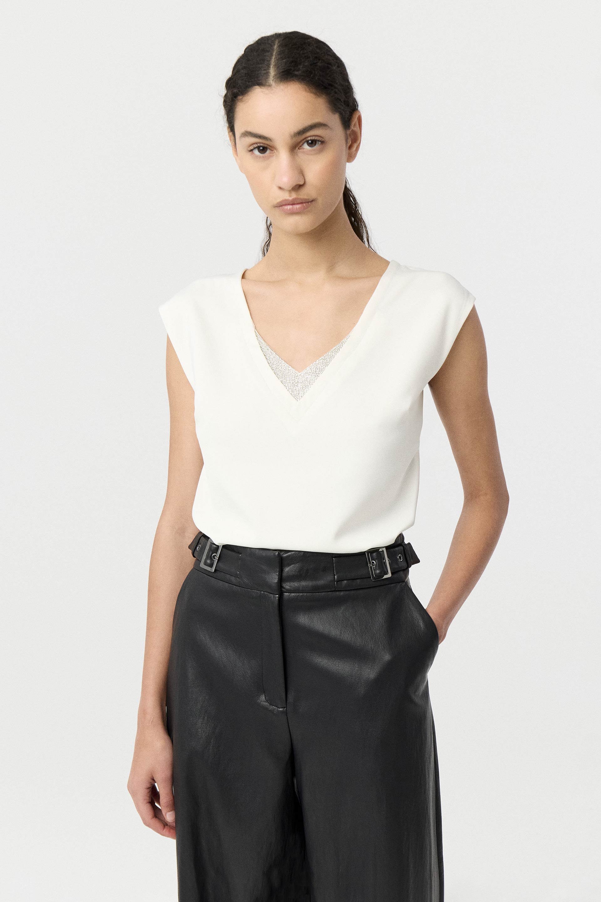 La modelo tiene contorno de busto 82 y usa talle 38.
