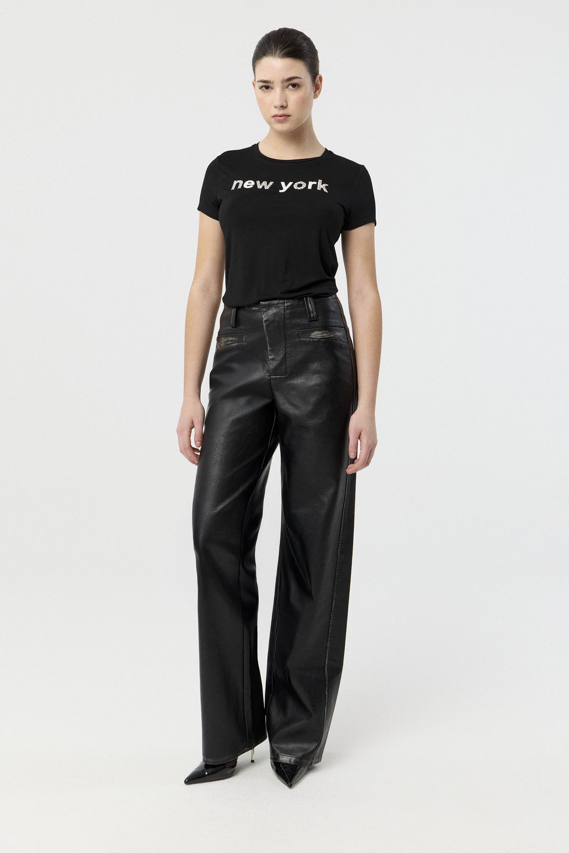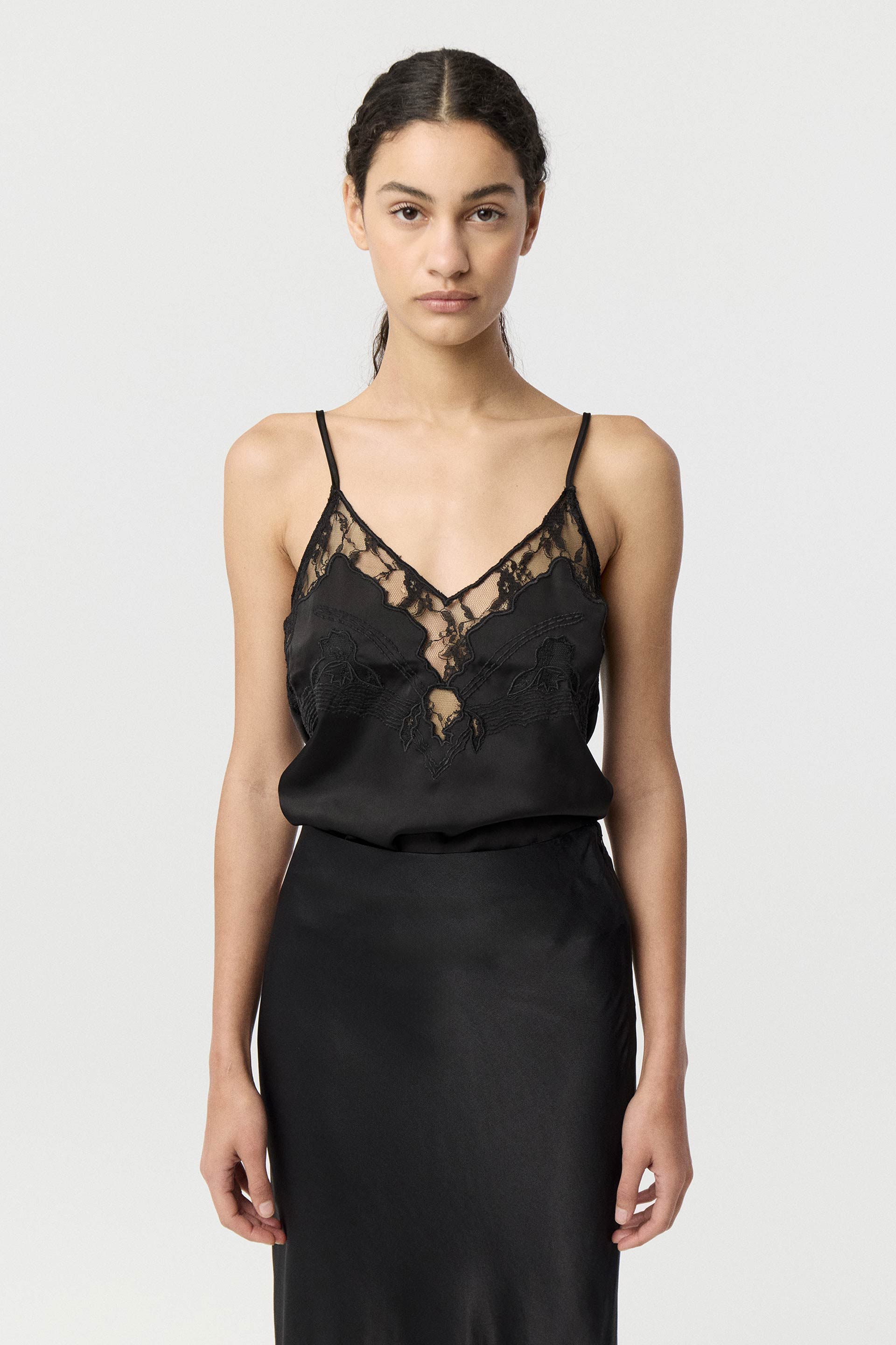 La modelo tiene contorno de busto 85 y usa talle 40.