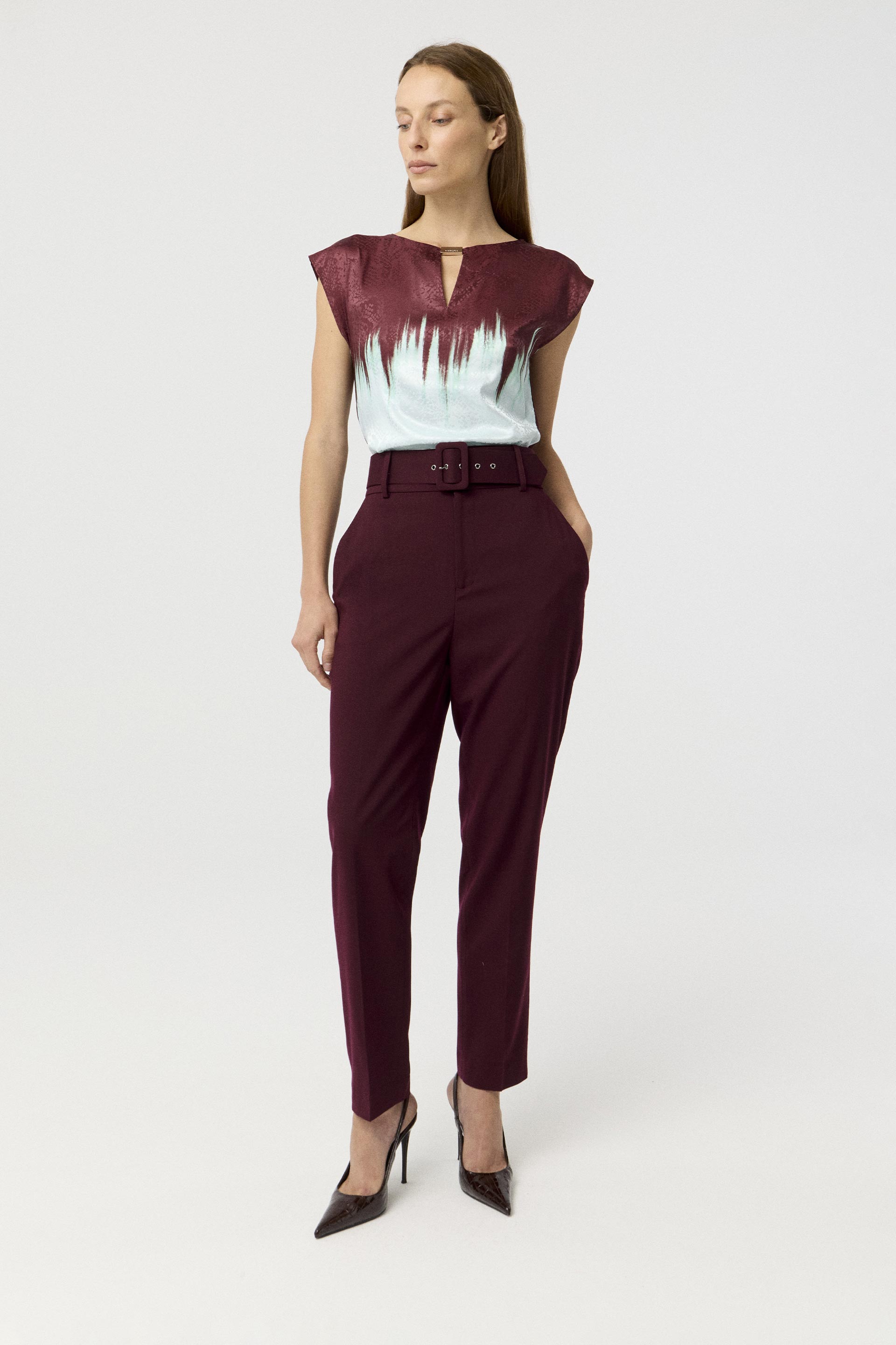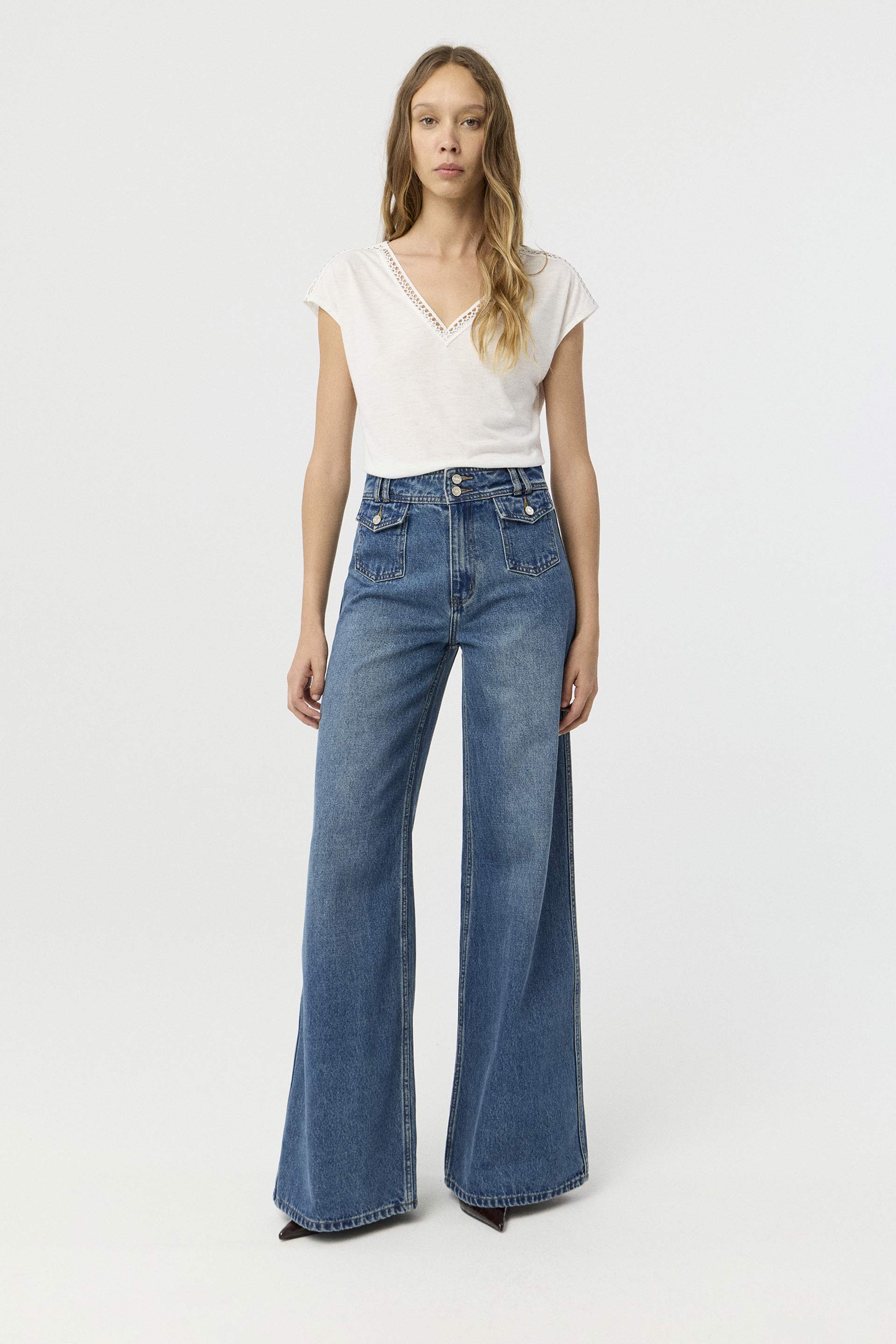 La modelo tiene contorno de busto 82 y usa talle XS.