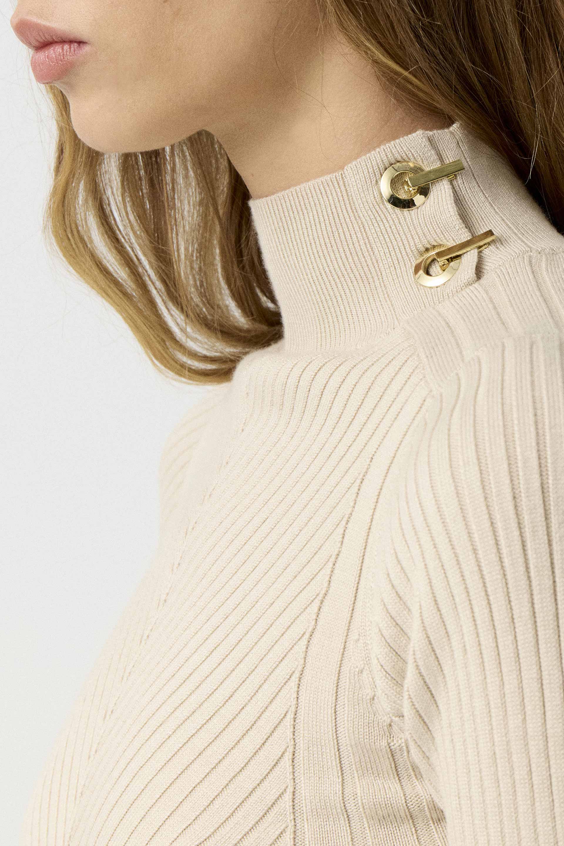 Sweater tejido de calce relajado y mangas largas. Escote en V profundo y detalle de ribb en escote, ruedo y puños de mangas. Este básico es tendencia.