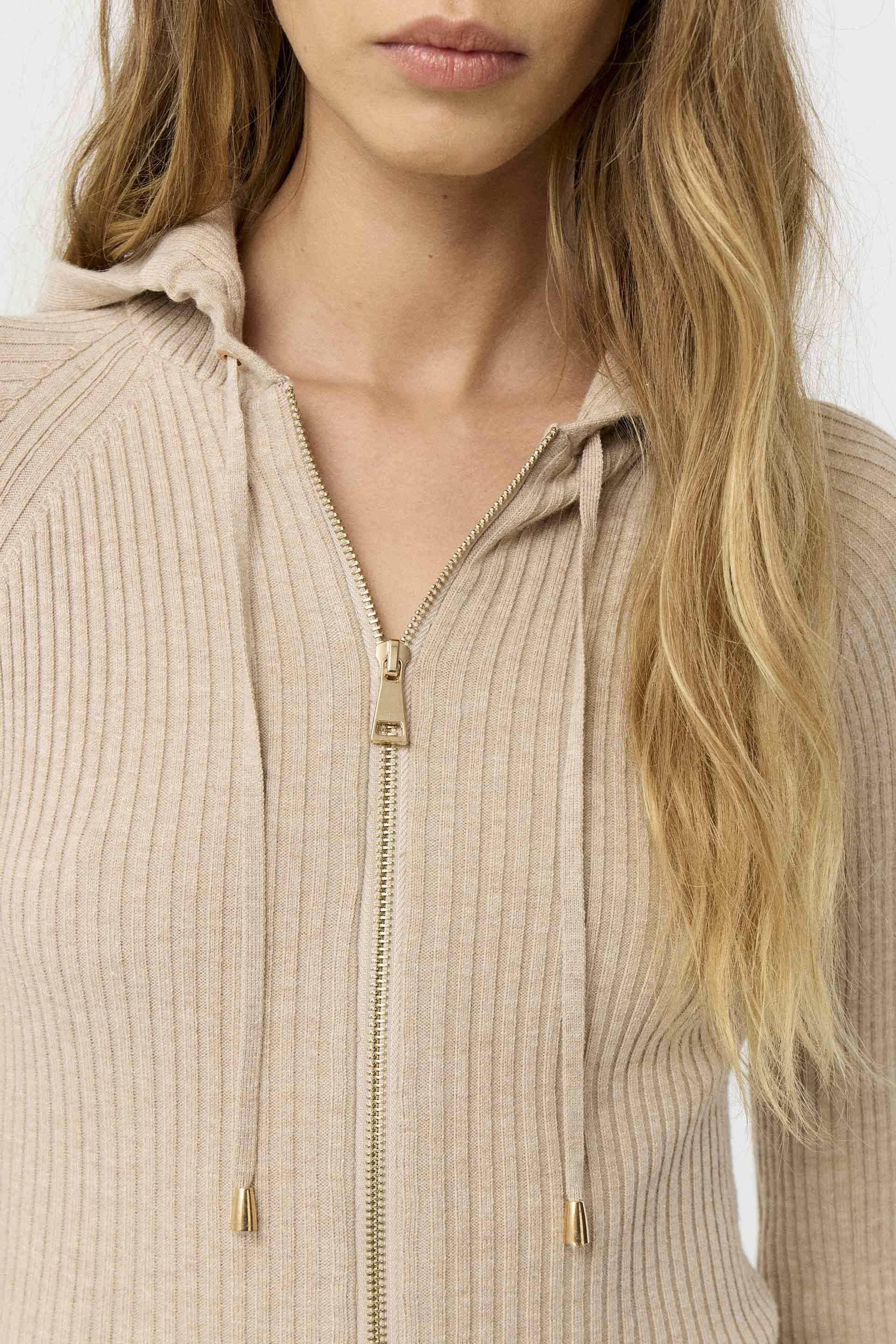 Sweater tejido de punto acanalado y calce anatómico. Diseño tipo campera, con mangas largas, capucha y cierre metálico central. Usalo con el pantalón tejido Corso y llevá un conjunto cómodo, moderno y perfecto para el día a día.