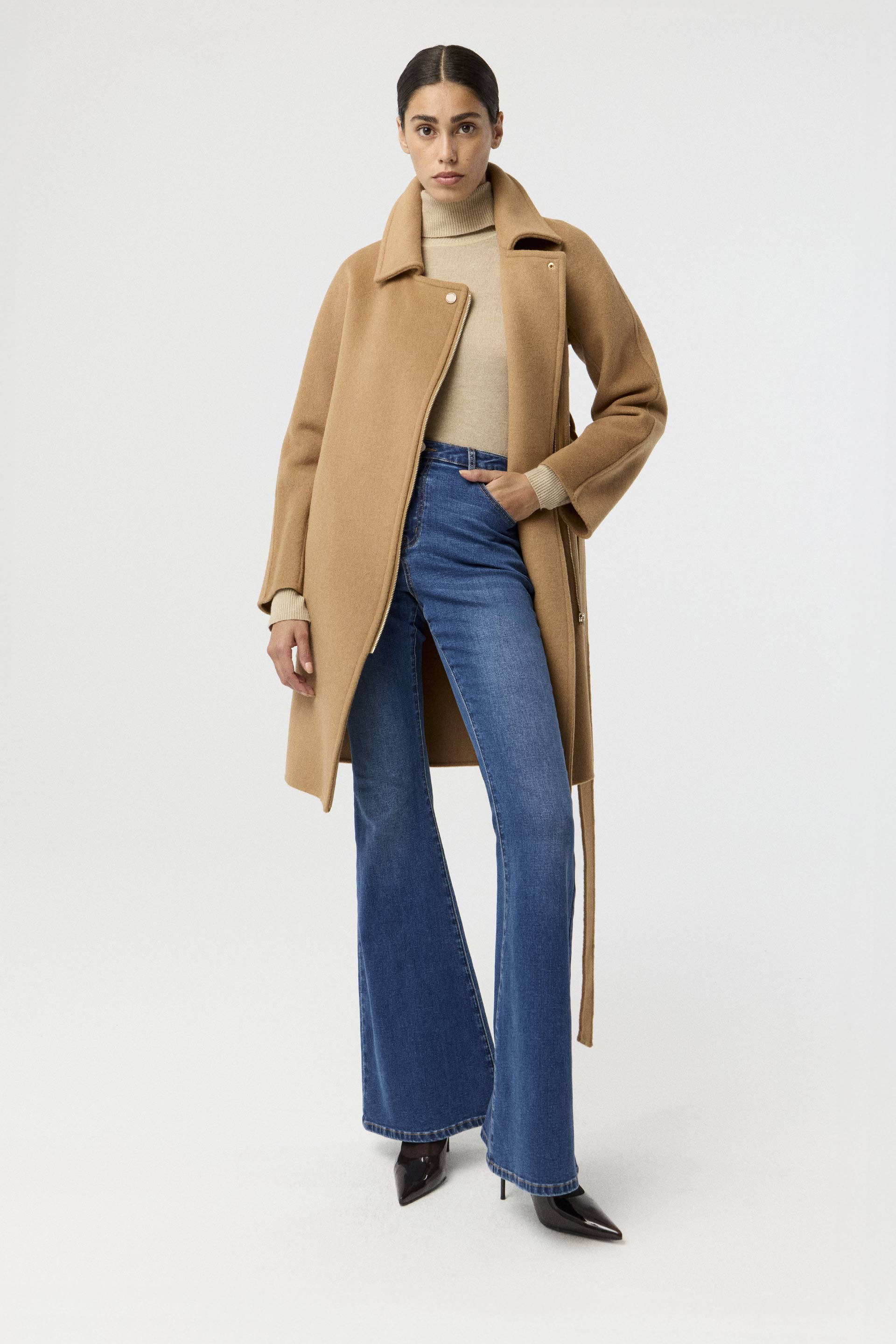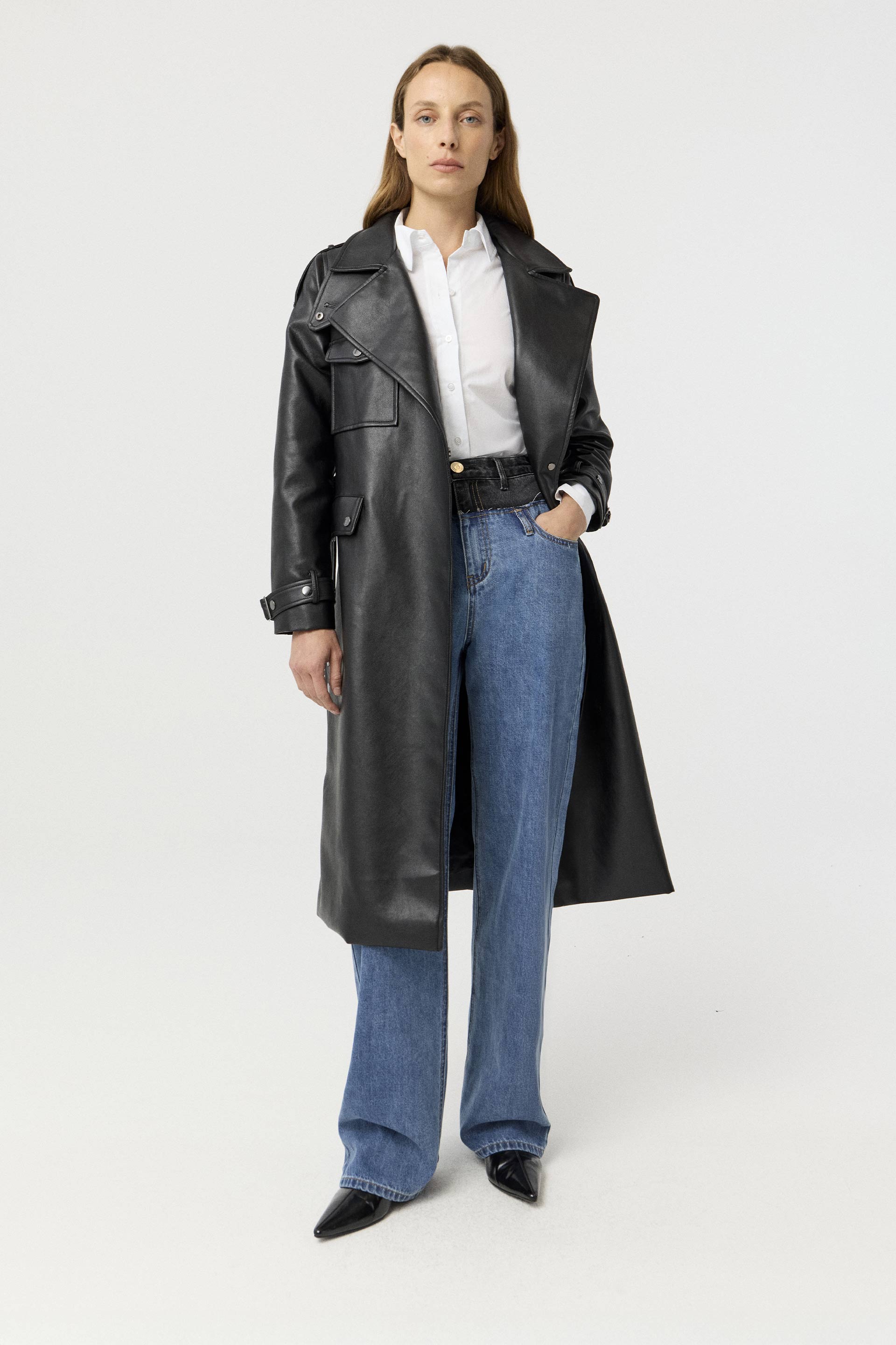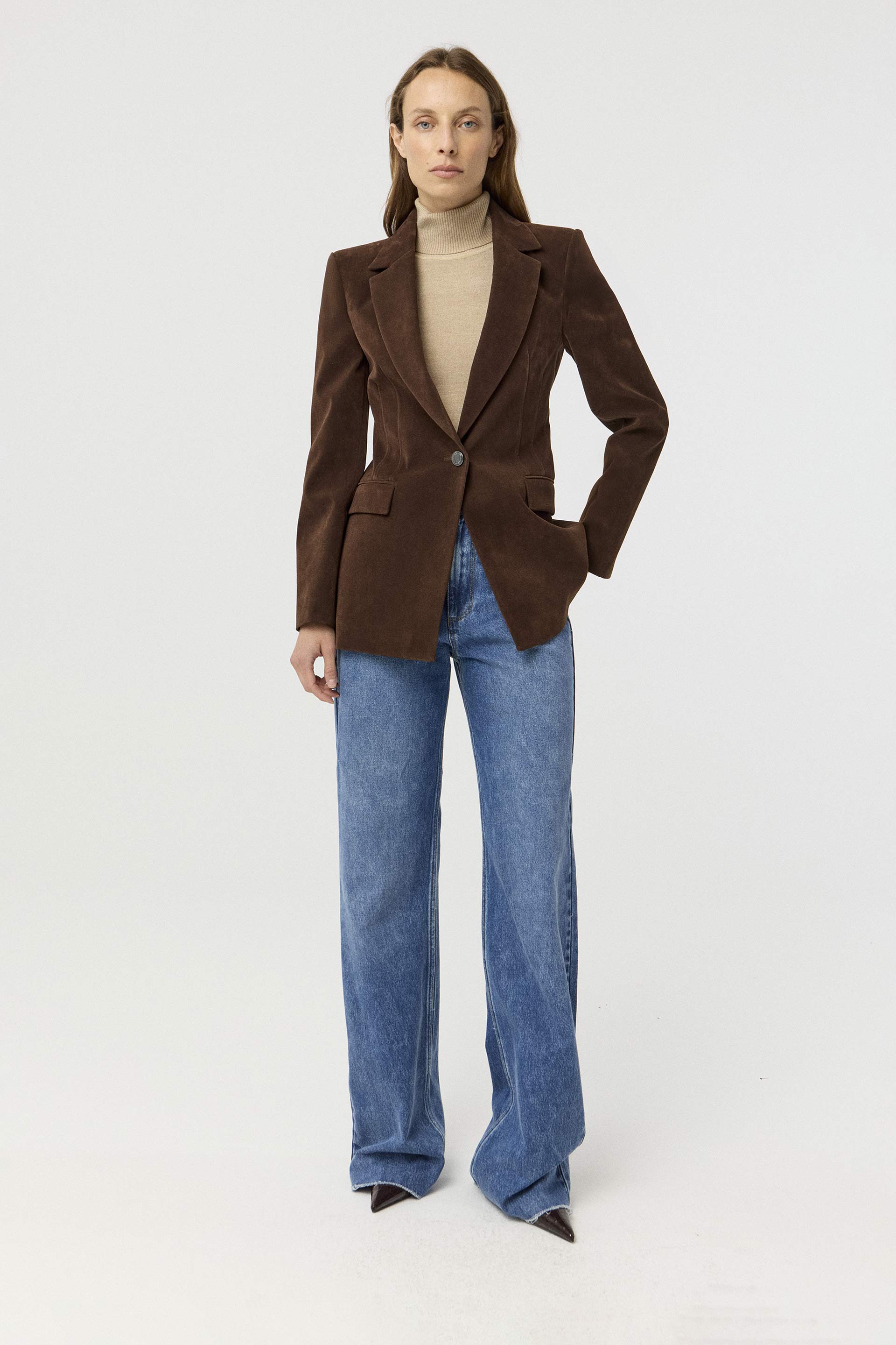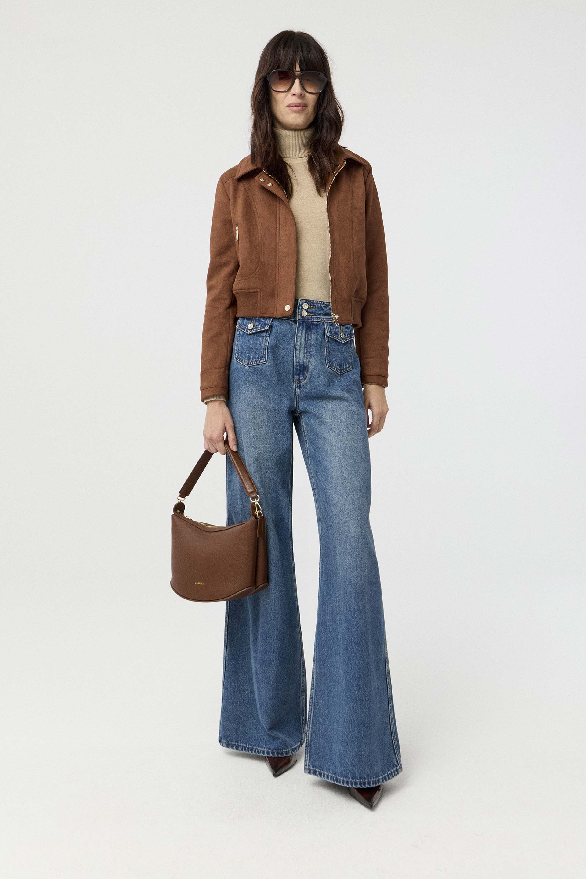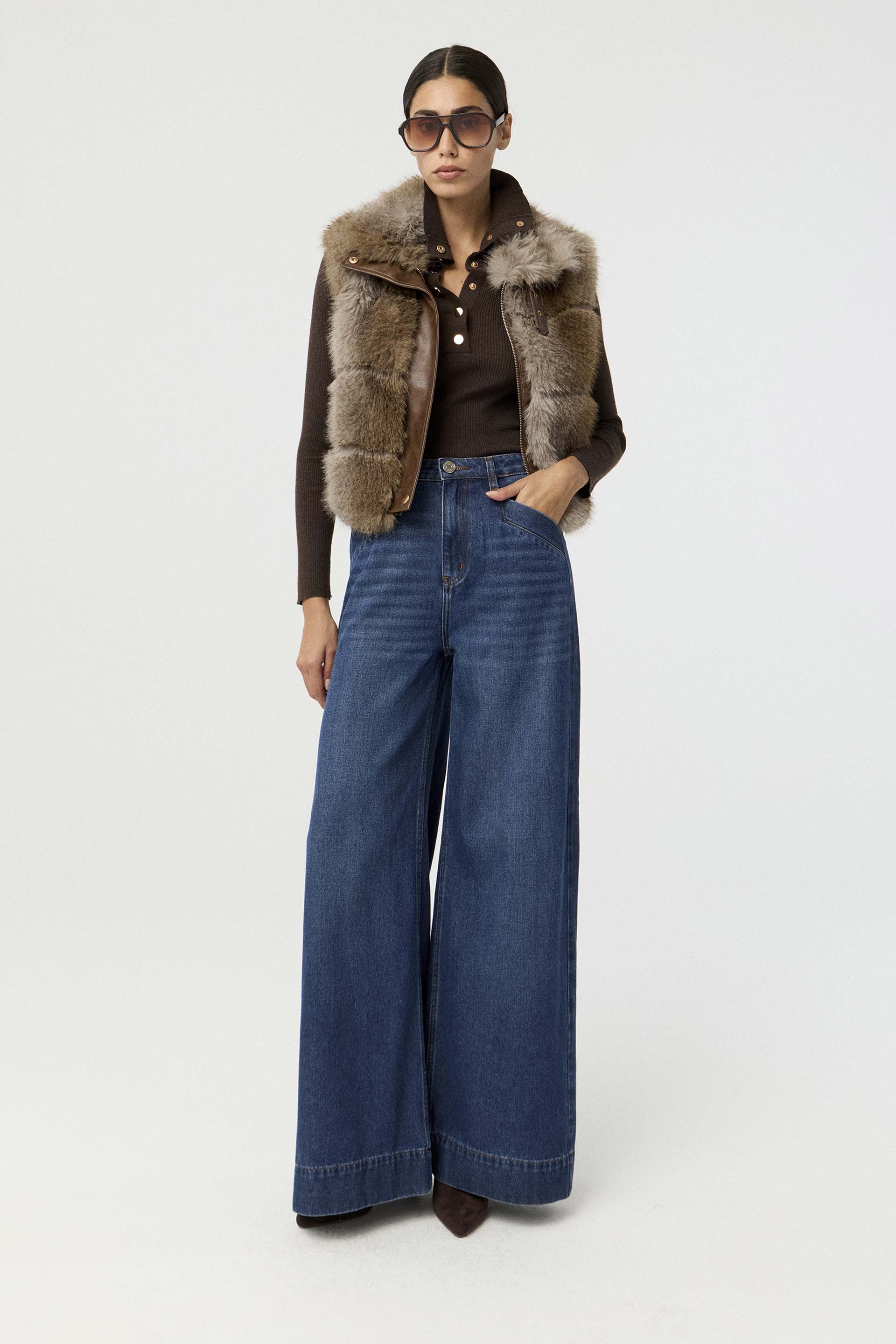 Jean rígido de tiro alto, con pierna ancha y calce relajado. Posee botón personalizado MKV y bolsillos diagonales con vivo ancho en el delantero. Su lavado azul y su diseño lo convierten en un jean clásico, pero su pierna palazzo le da un twist moderno. Usalo tanto para la oficina como para looks más urbanos.