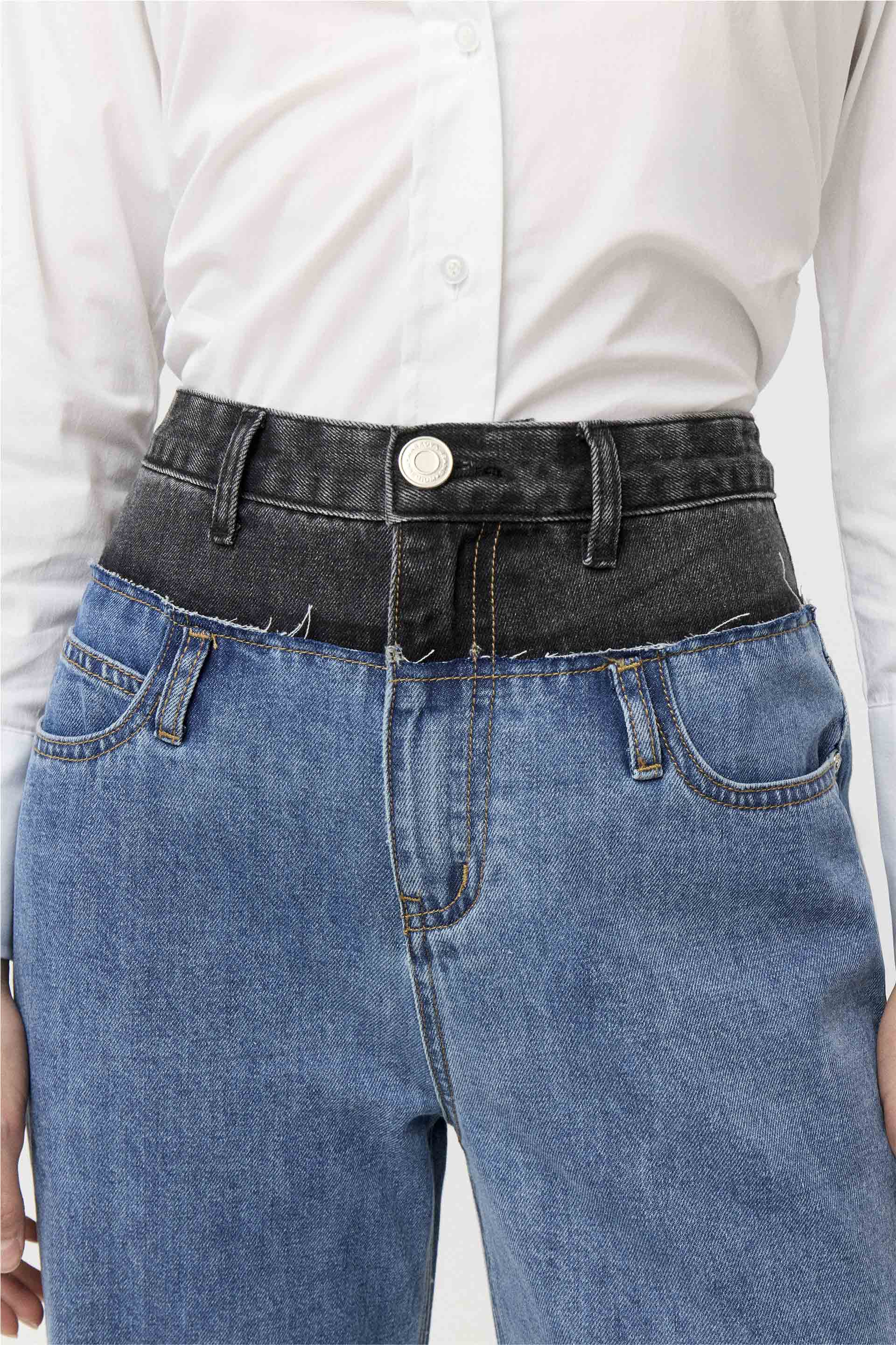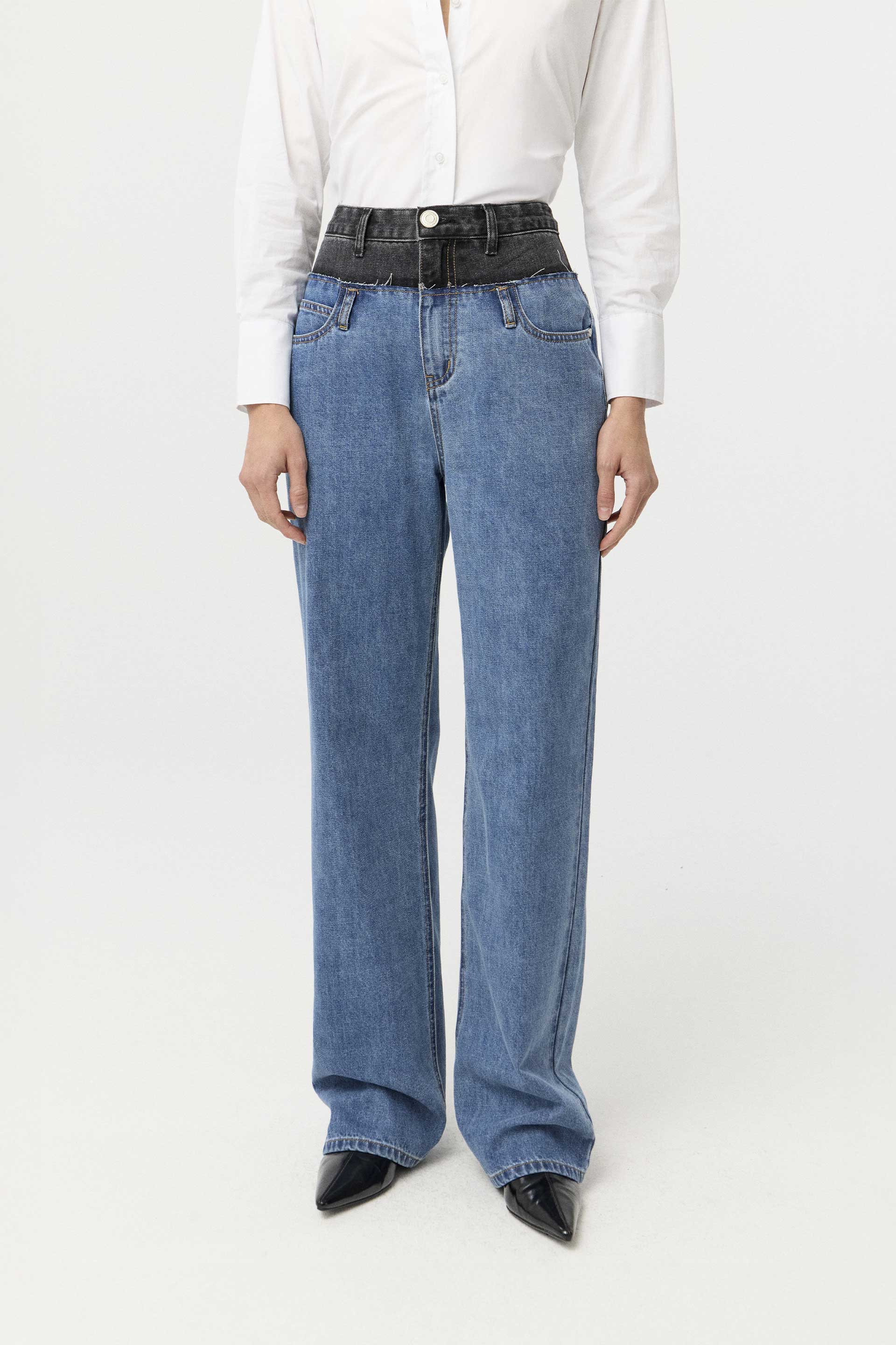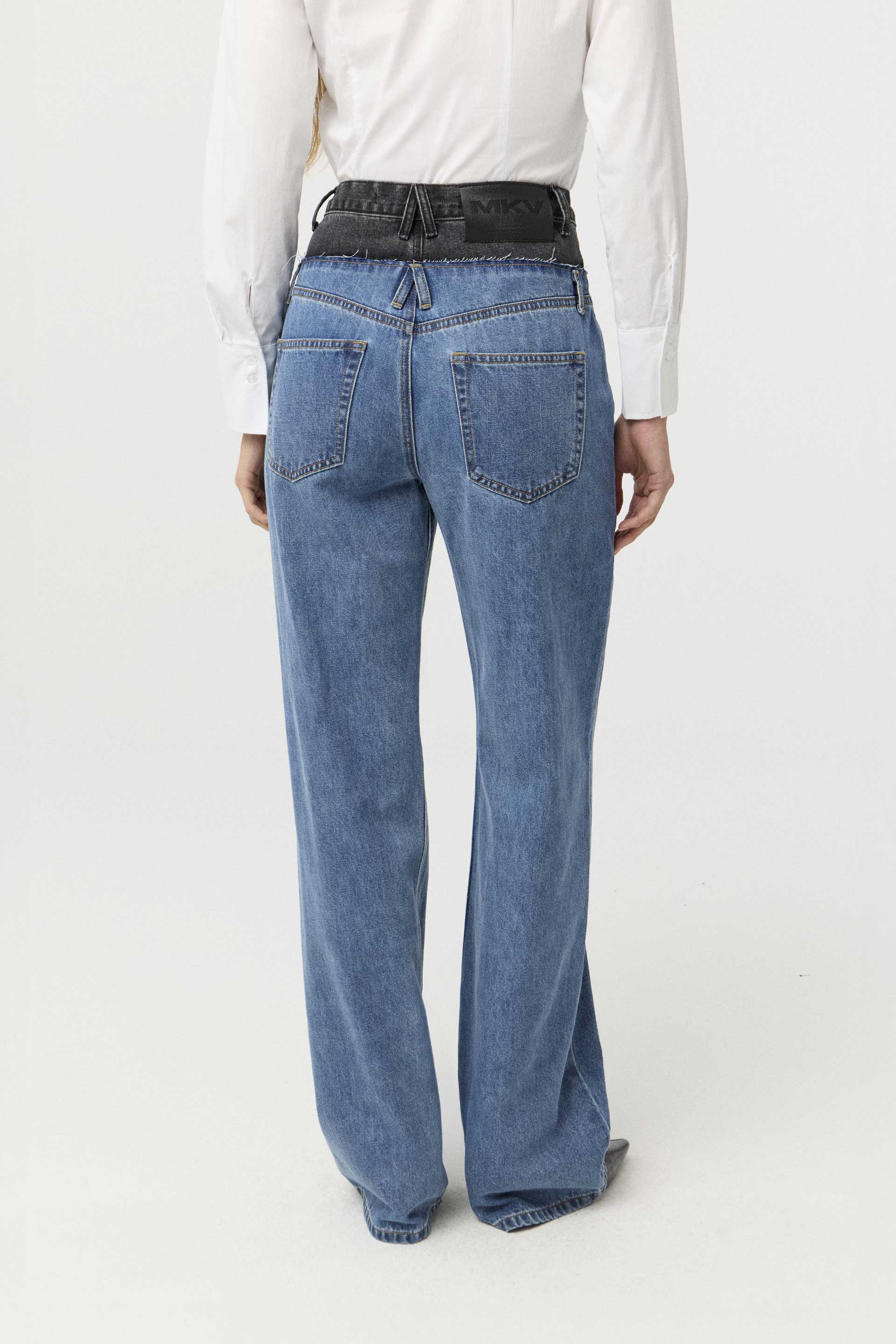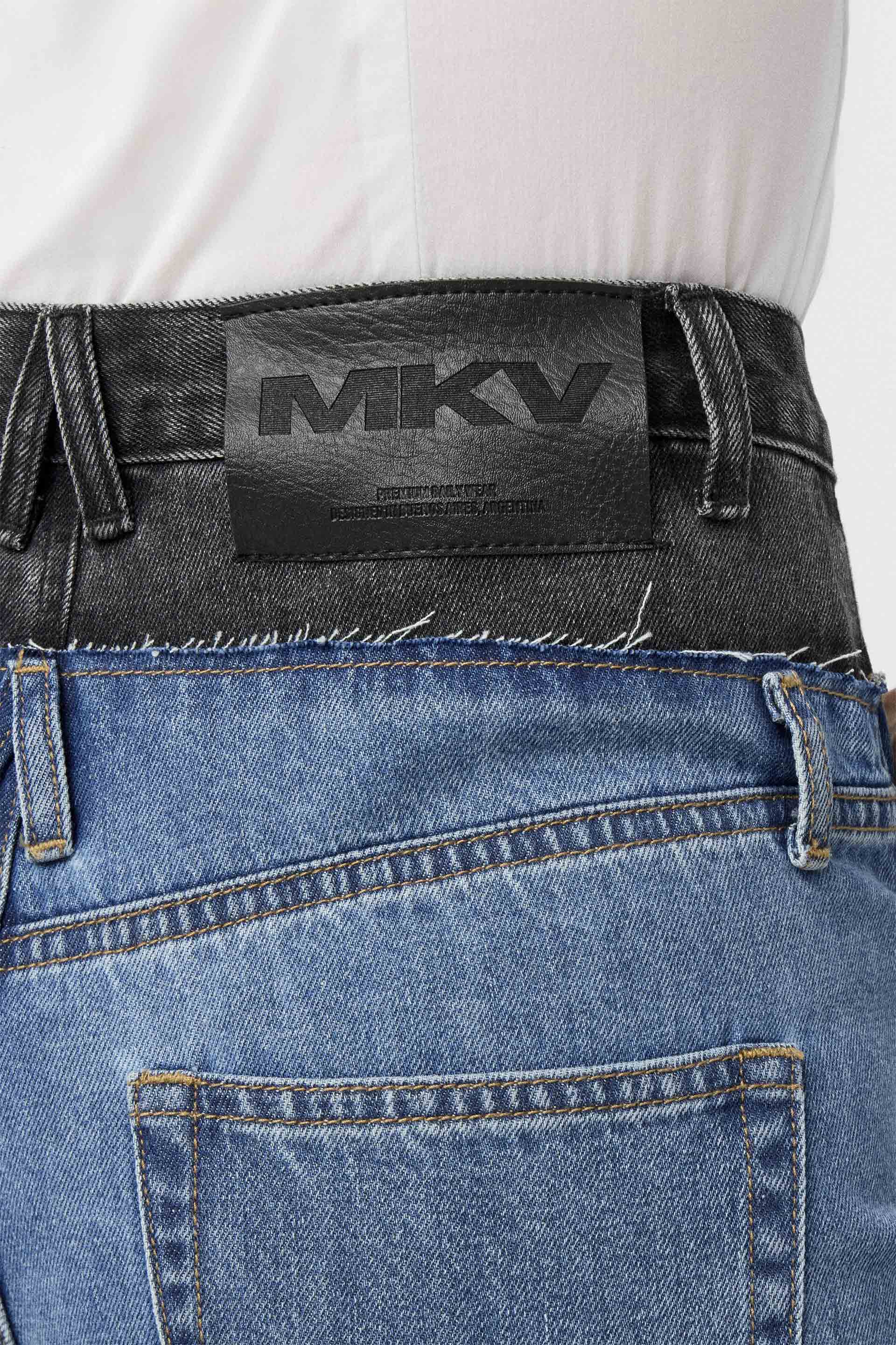 Jean rígido de tiro alto y pierna ancha, de calce relajado, con efecto de dos pantalones superpuestos. Con cintura en tela combinada en denim color negro. Cuenta con badana, botón y remaches metálicos MKV. Su calce amplio y diseño moderno lo convierten en un jean de tendencia, ideal para crear looks descontracturados.