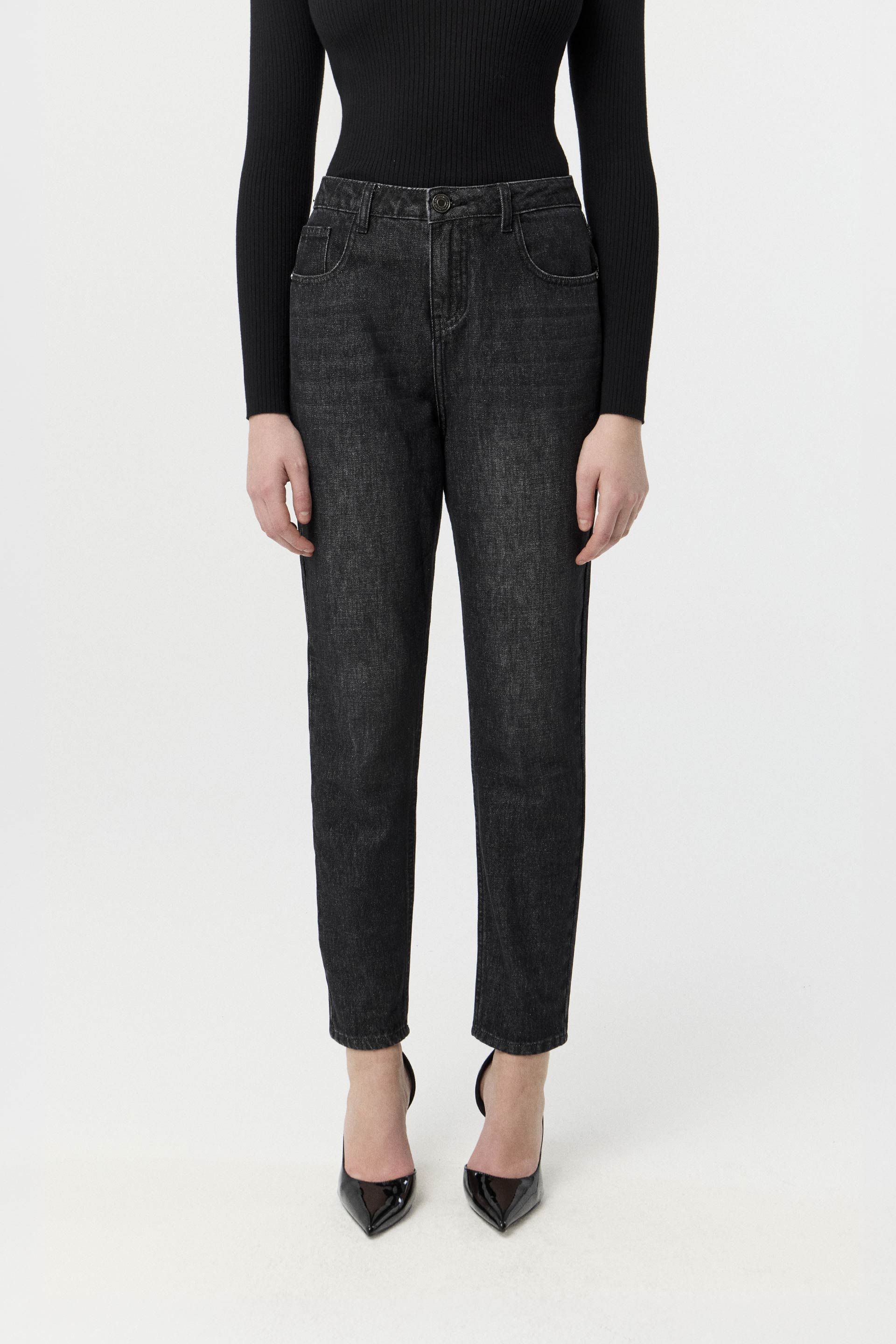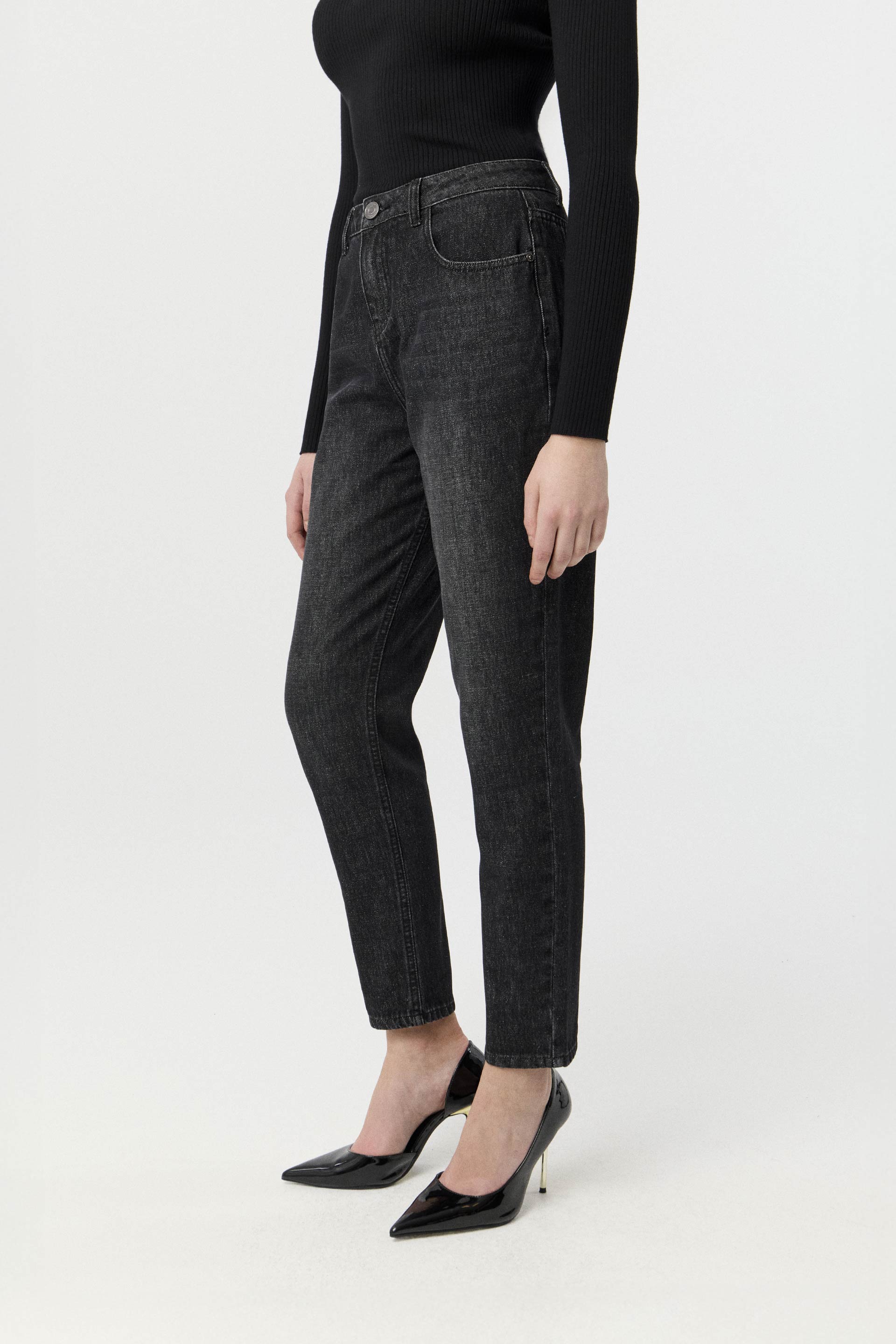 Jean rígido de tiro alto, con pierna recta slim y calce relajado. Diseño de 5 bolsillos con badana, botón y remaches metálicos MKV. Un jean clásico y moderno, fácil de combinar, que no puede faltarte en tu guardarropa este invierno. Su lavado con un leve gastado lo convierte en una prenda versátil, ideal tanto para la oficina como para una salida.