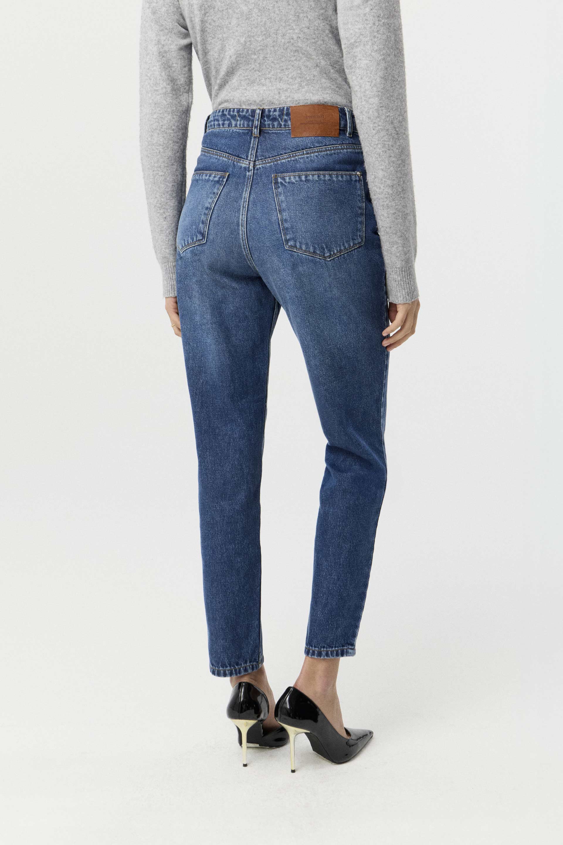Jean rígido de tiro alto, con pierna recta slim y calce relajado. Diseño de 5 bolsillos con badana, botón y remaches metálicos MKV. Se le aplicó un lavado con bajada de color y un suave localizado. Su calce relajado y su diseño lo convierten en un pantalón clásico y fácil de combinar, que no puede faltarte en tu guardarropa.